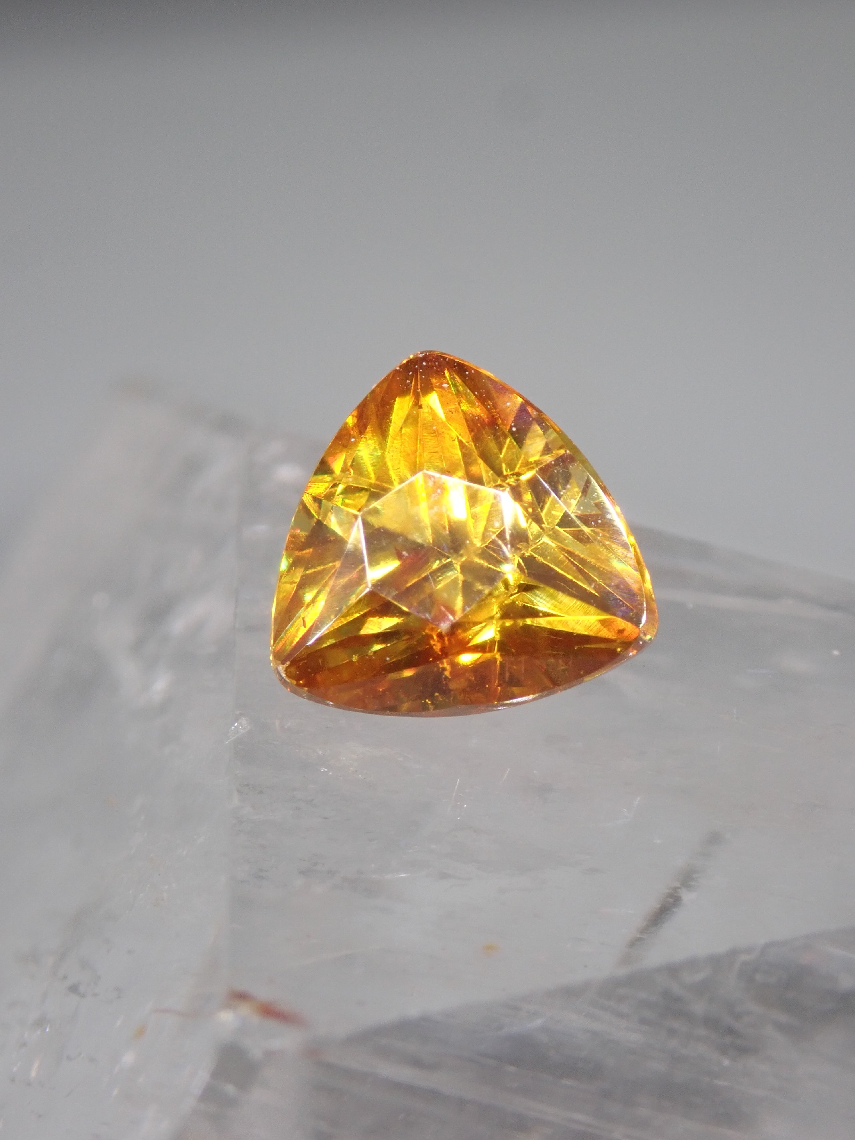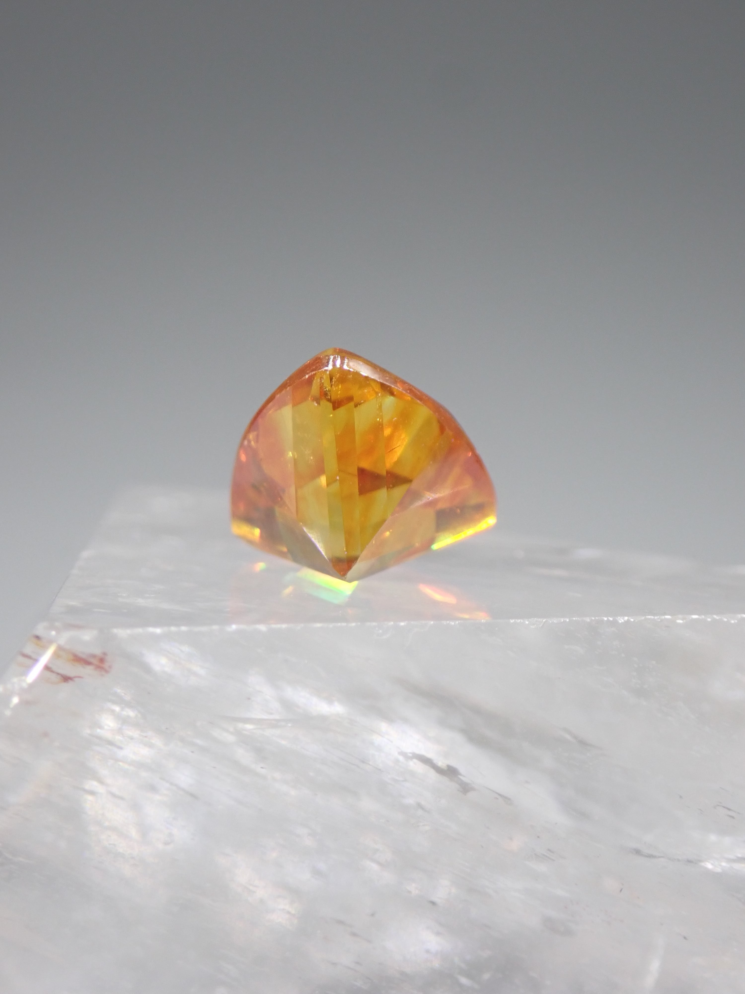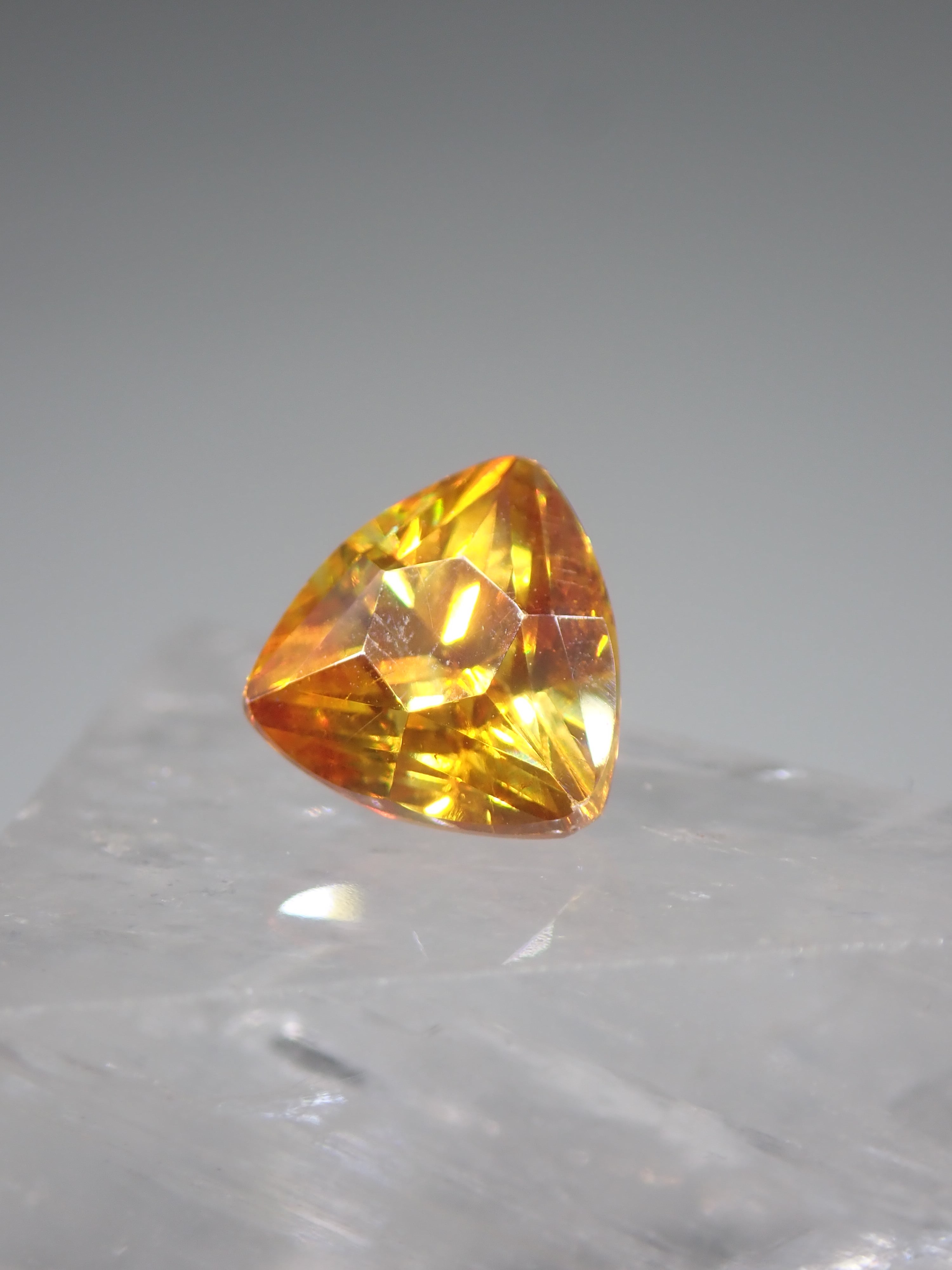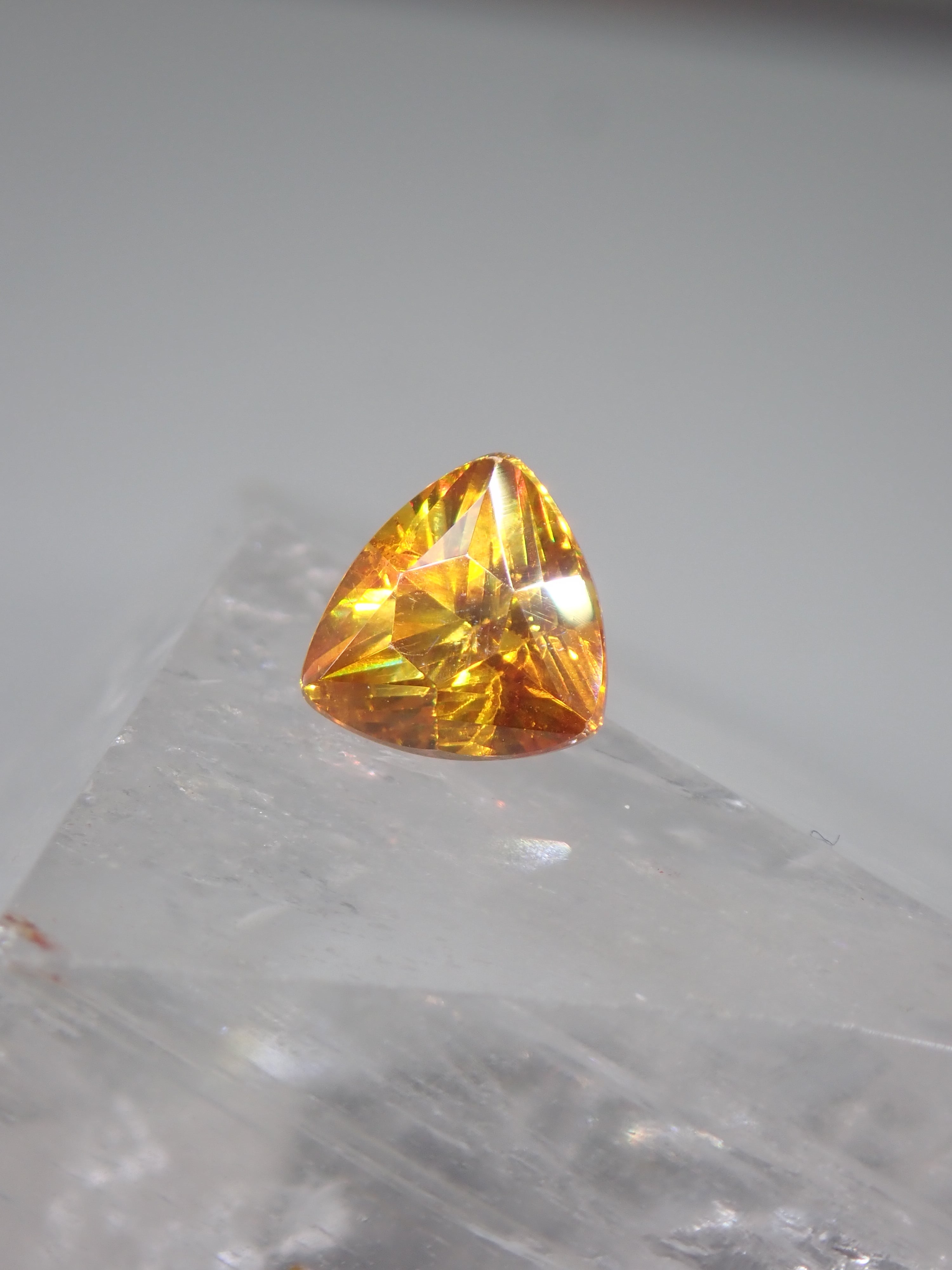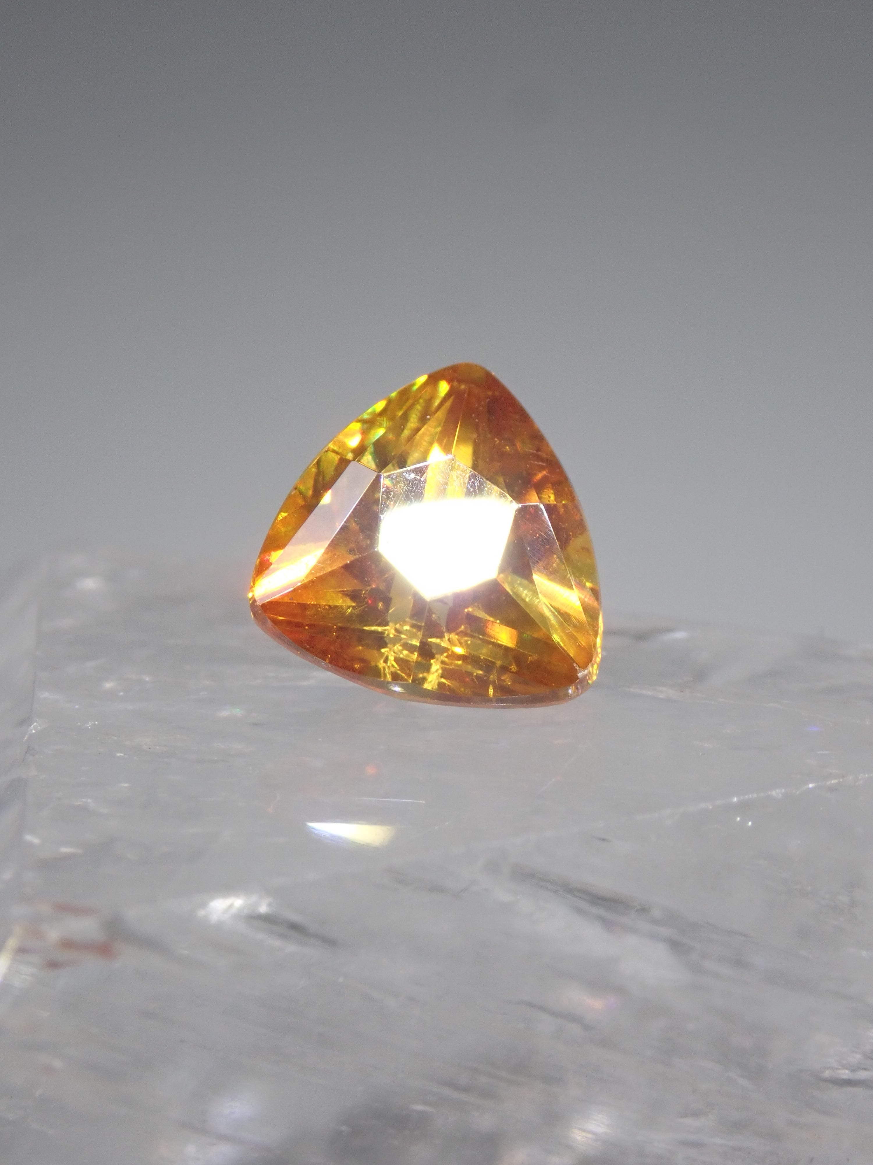 スファレライトらしく、とても強い輝きを放ちます。ファイアが鮮烈で明るいイエローやオレンジ、ライトグリーンを観察できます。