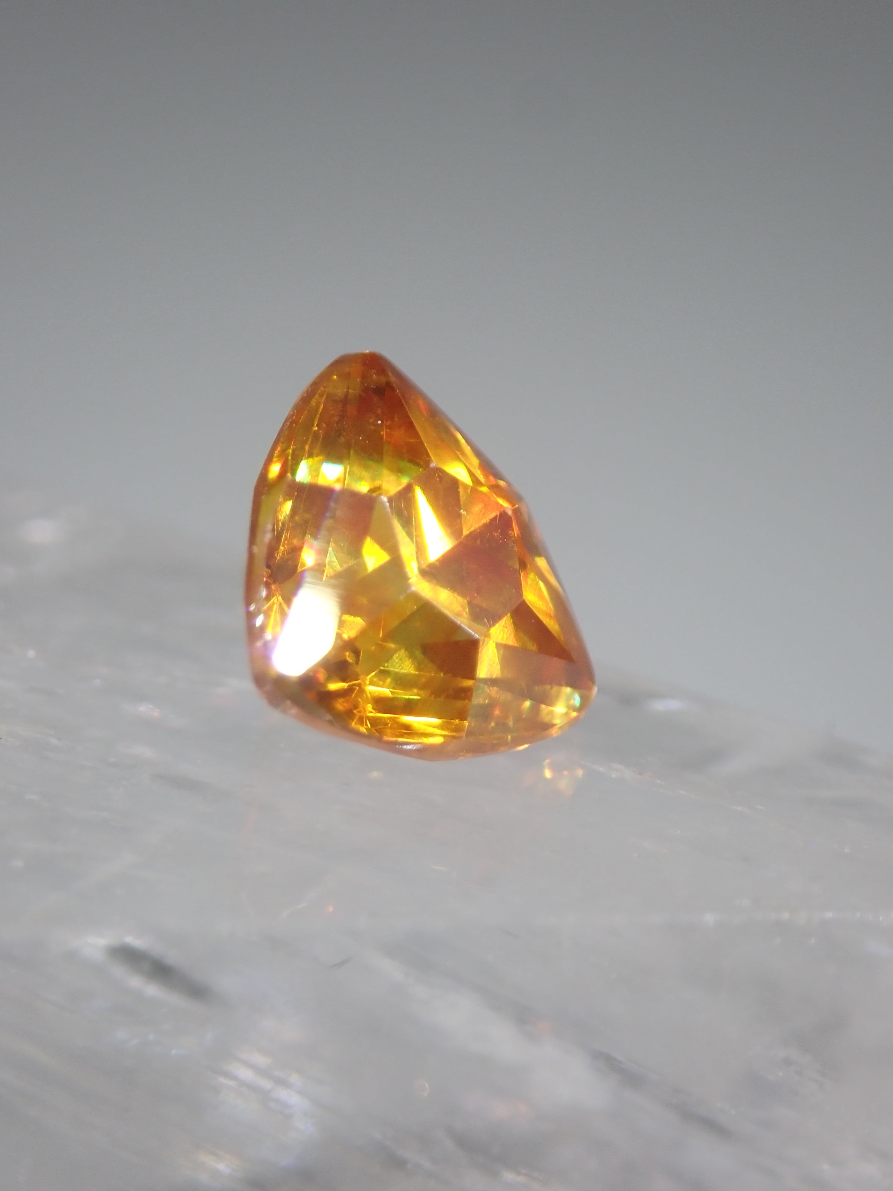 こちらのルースはダブリングの幅がとても広く、ルーペで覗き込むと背面の稜線がブレて鏡の迷路に迷い込んだかのように見えることと思います。