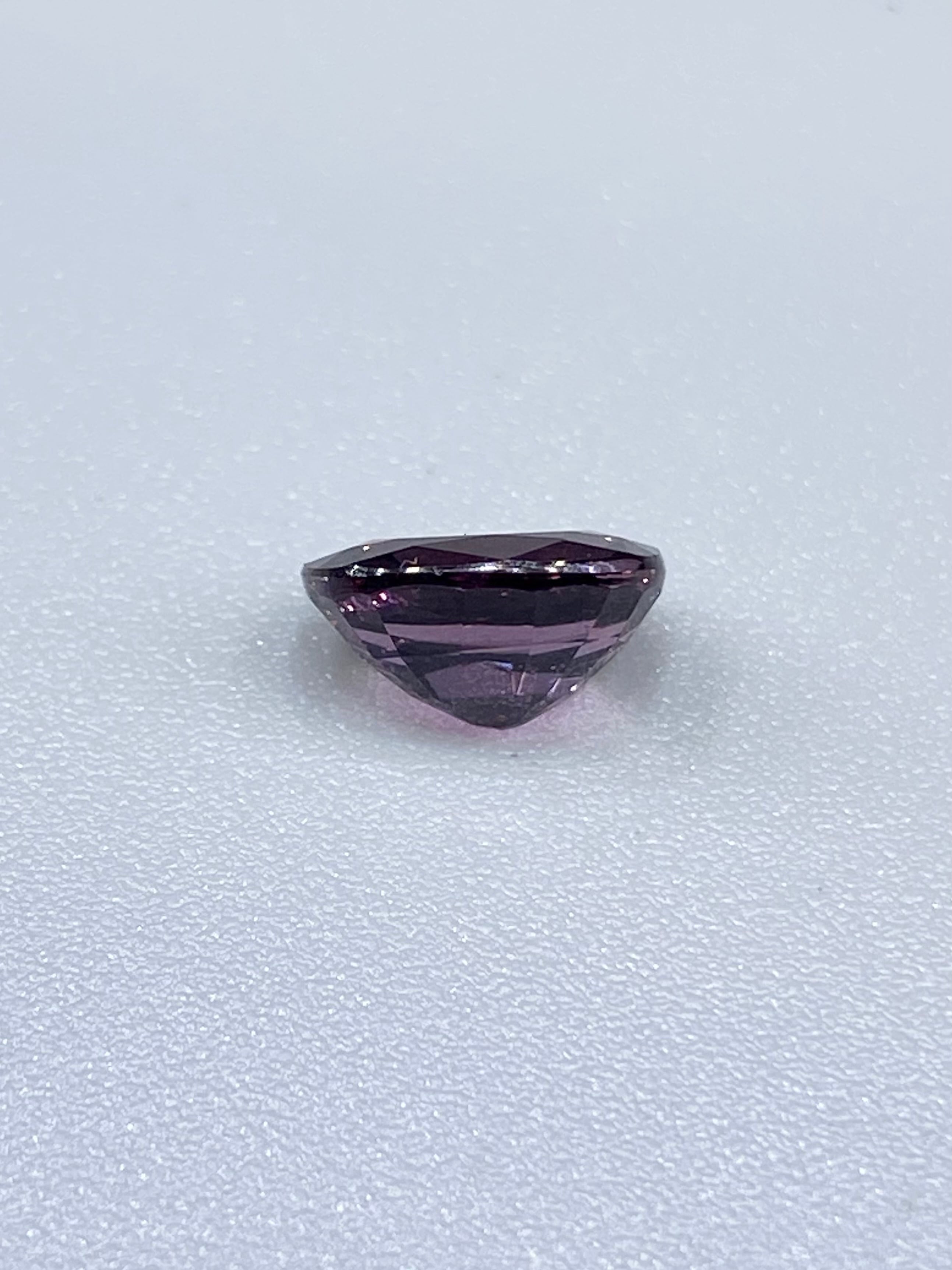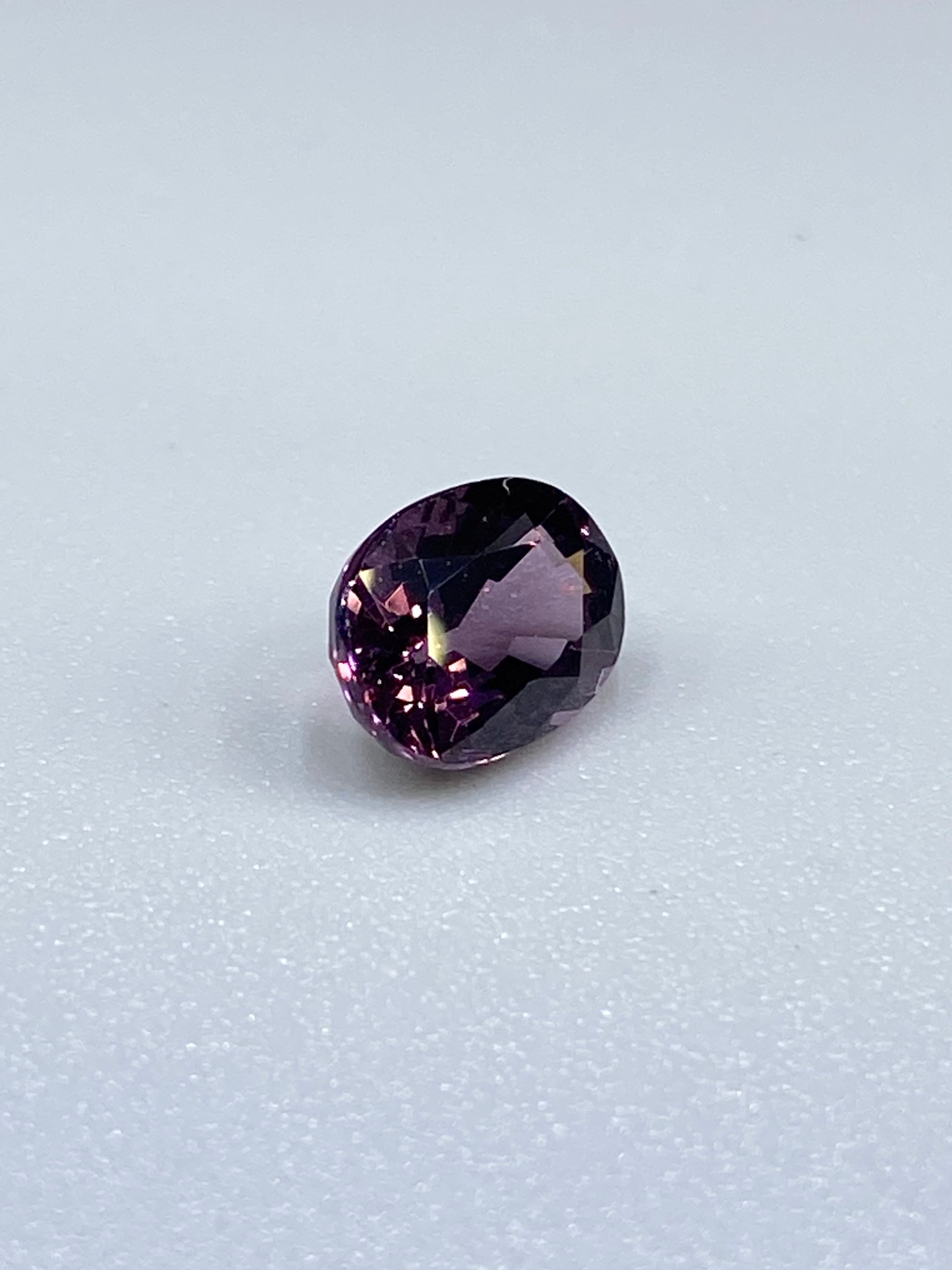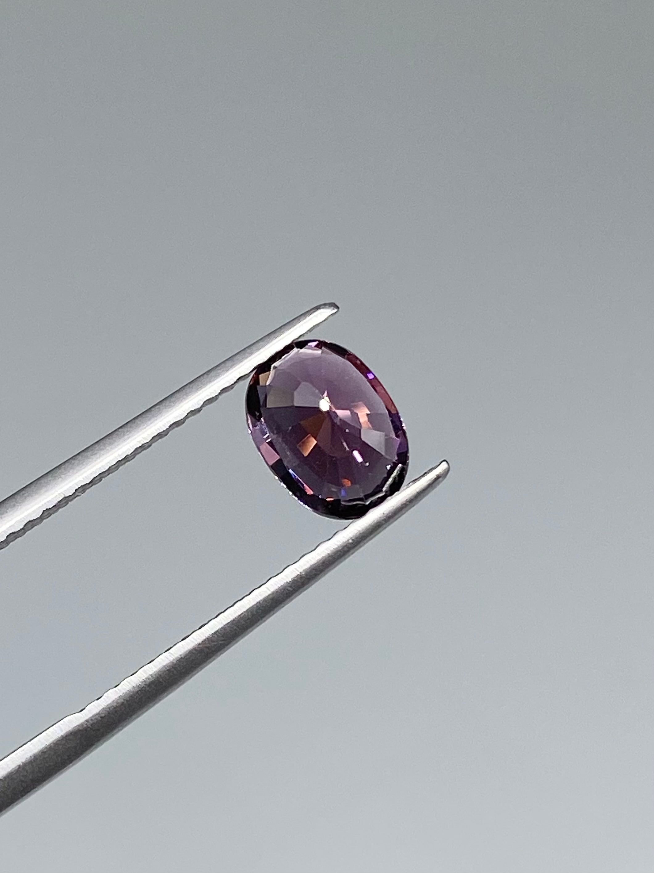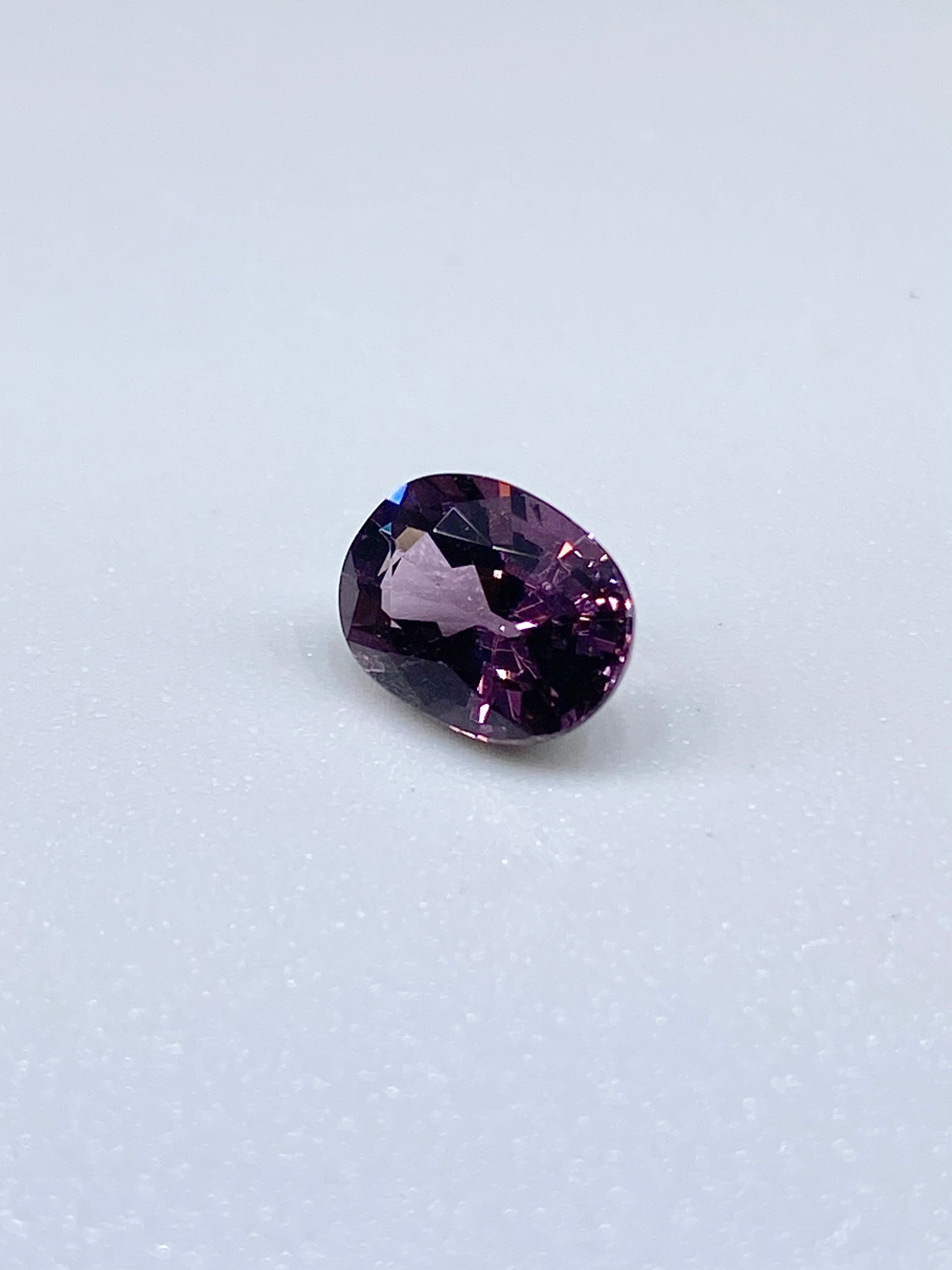 ダークカラーの地色に青みがかった藤色の輝きや赤みのある紫、そして濃い目の紫色もあり、かつ同系色のスピネルの中ではシックで大人な印象です。どこか秋の雰囲気を感じられます。