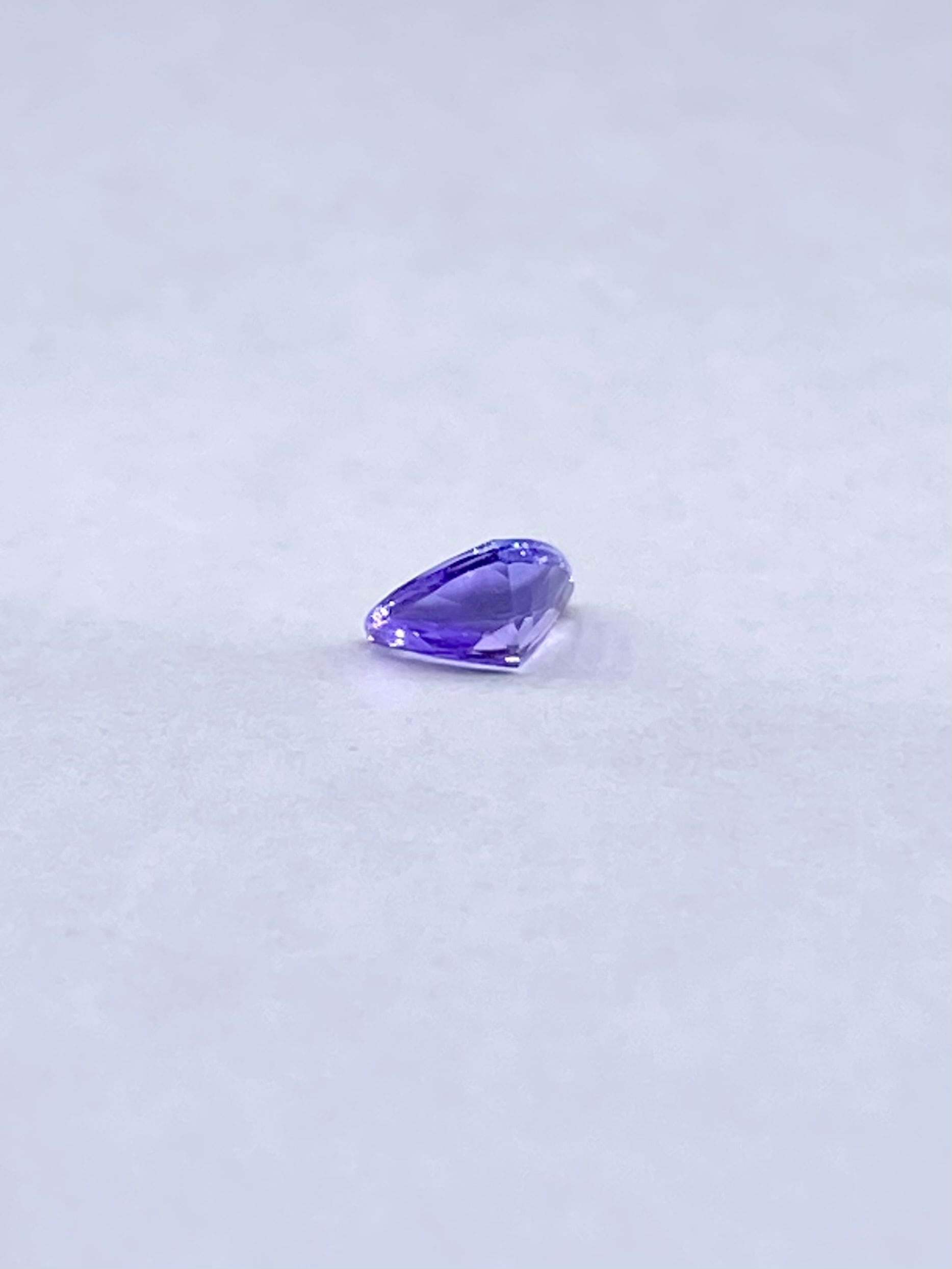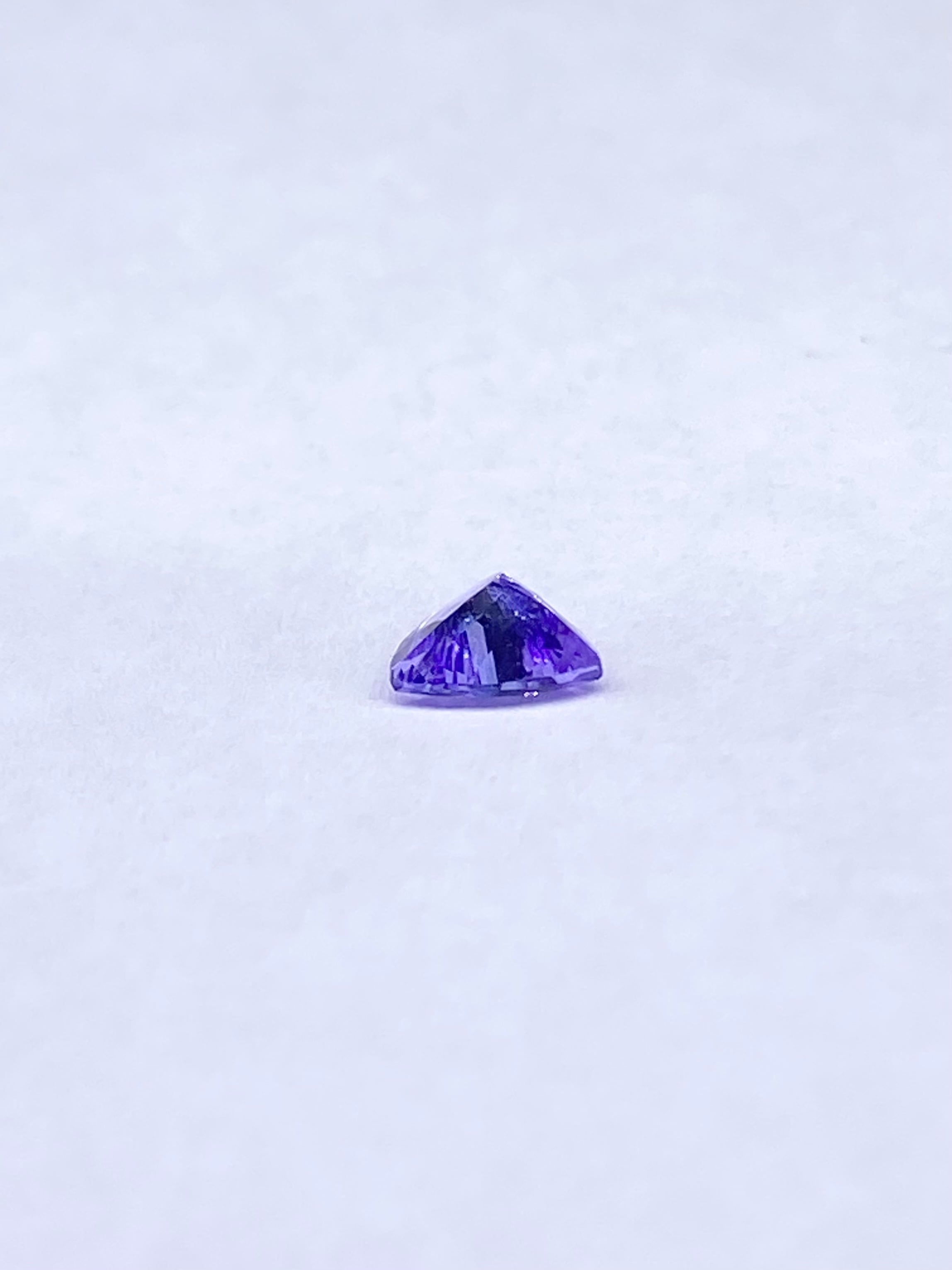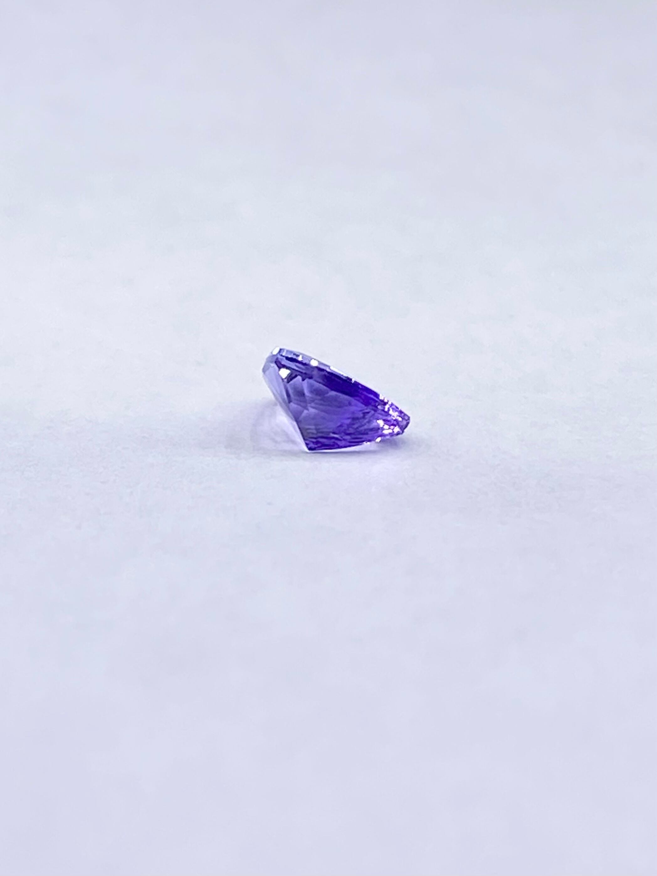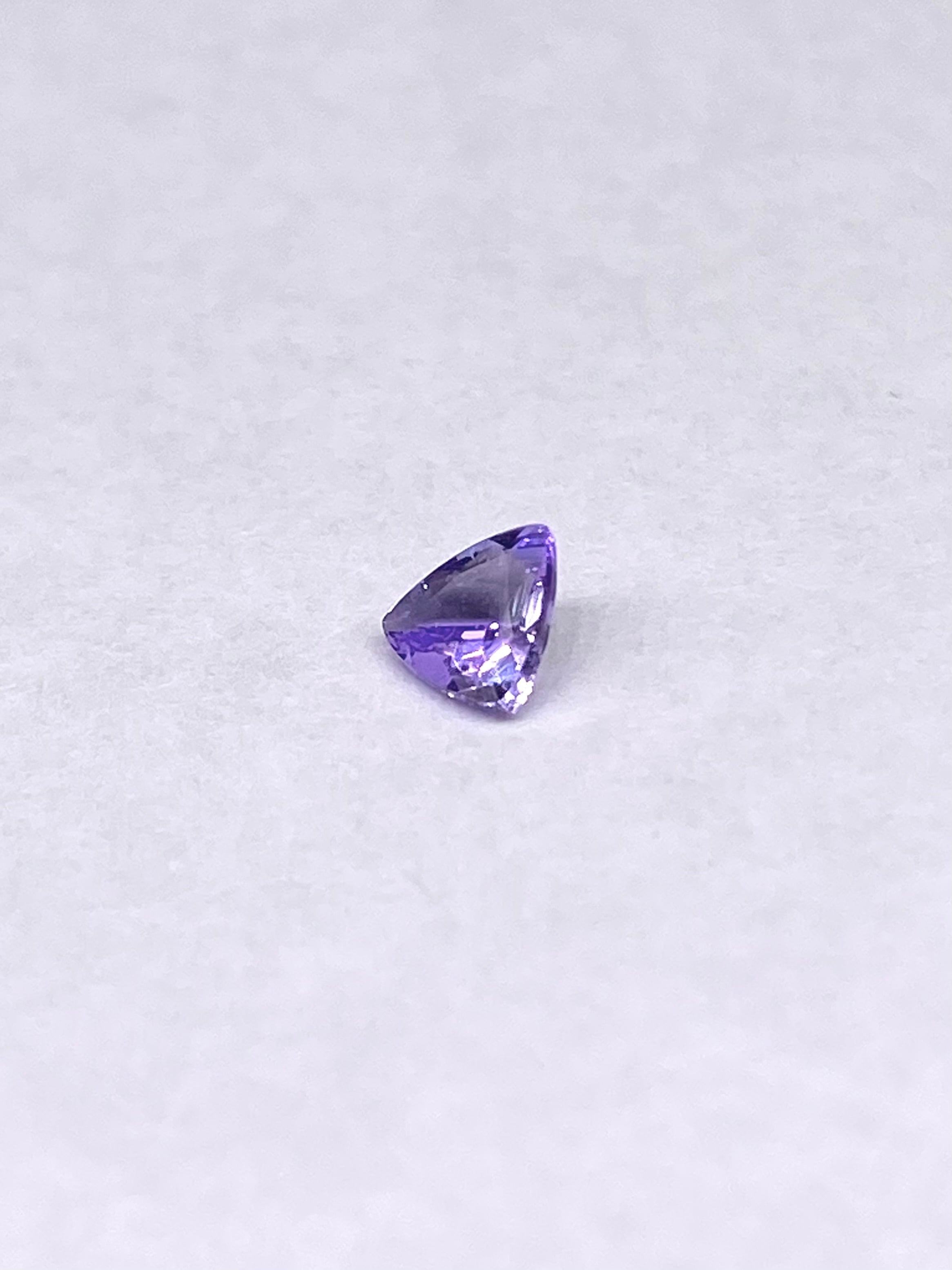 正面からみて濃いラベンダーカラー。全体的には明るい紫色ですが、多色性により角度によっては若干ピンクがかって見えたり(画像2枚目)、部分的に青みが強まって見えたり(画像3枚目)します。