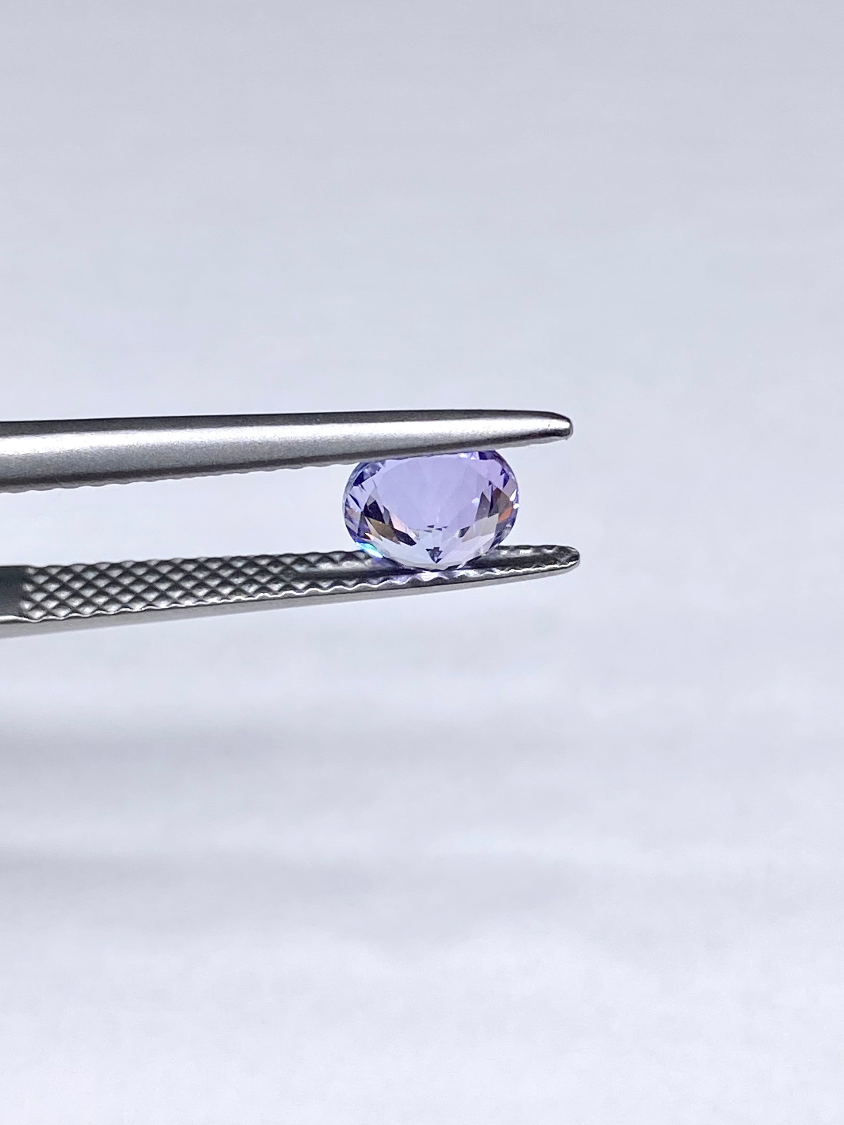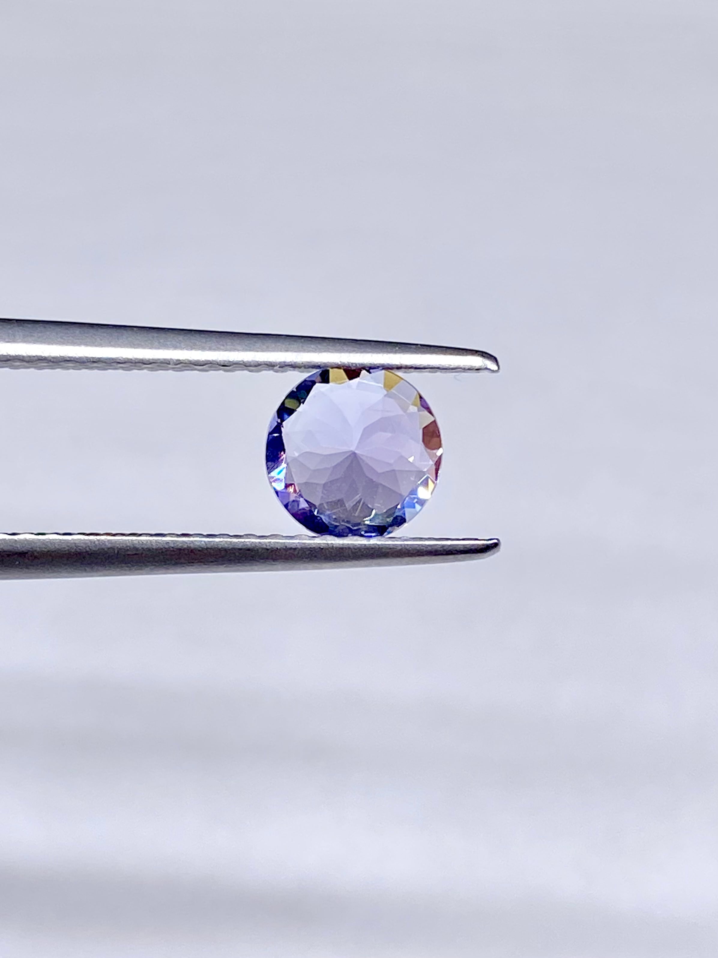 インクルージョンは肉眼で目立つ物はございません。また、10倍拡大下ではテーブルファセットそばに1本内部のフラクチャーが確認できますが、小さいうえにほぼ完全に透明なためにルーペでも目立たない程度のものです。