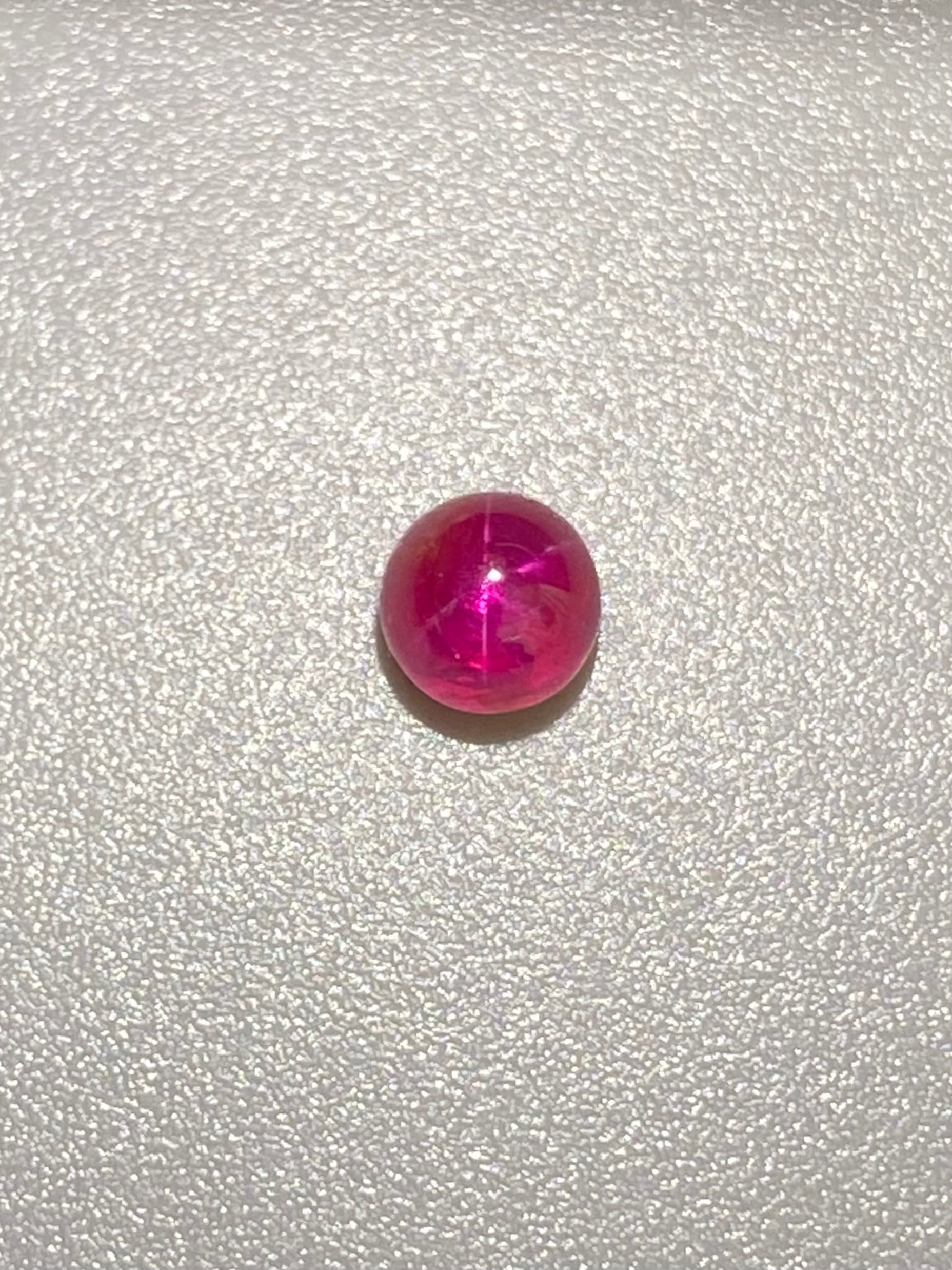 透明度の高さからスターは弱め、かつ内部にはある程度のキズが見られますが、スタールビーとしては色乗りの良い一石かと思います。