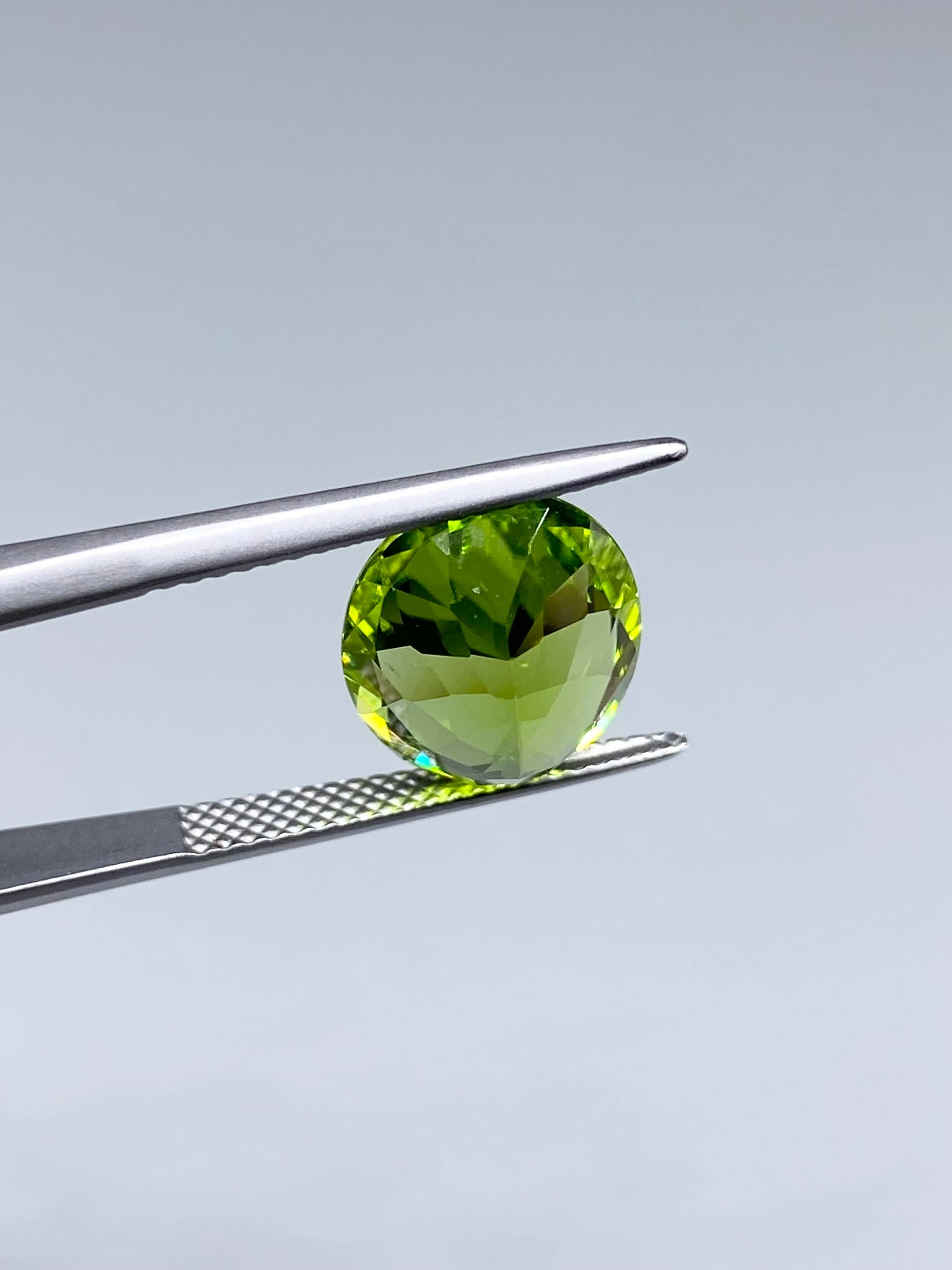 こちらのペリドットは、5ctを超える大粒。非常にメジャーな宝石の一つであるペリドットですが、このように大粒で発色が鮮やか、目立った内包物がなく輝きが良いものはなかなかお目にかかれるものではありません。