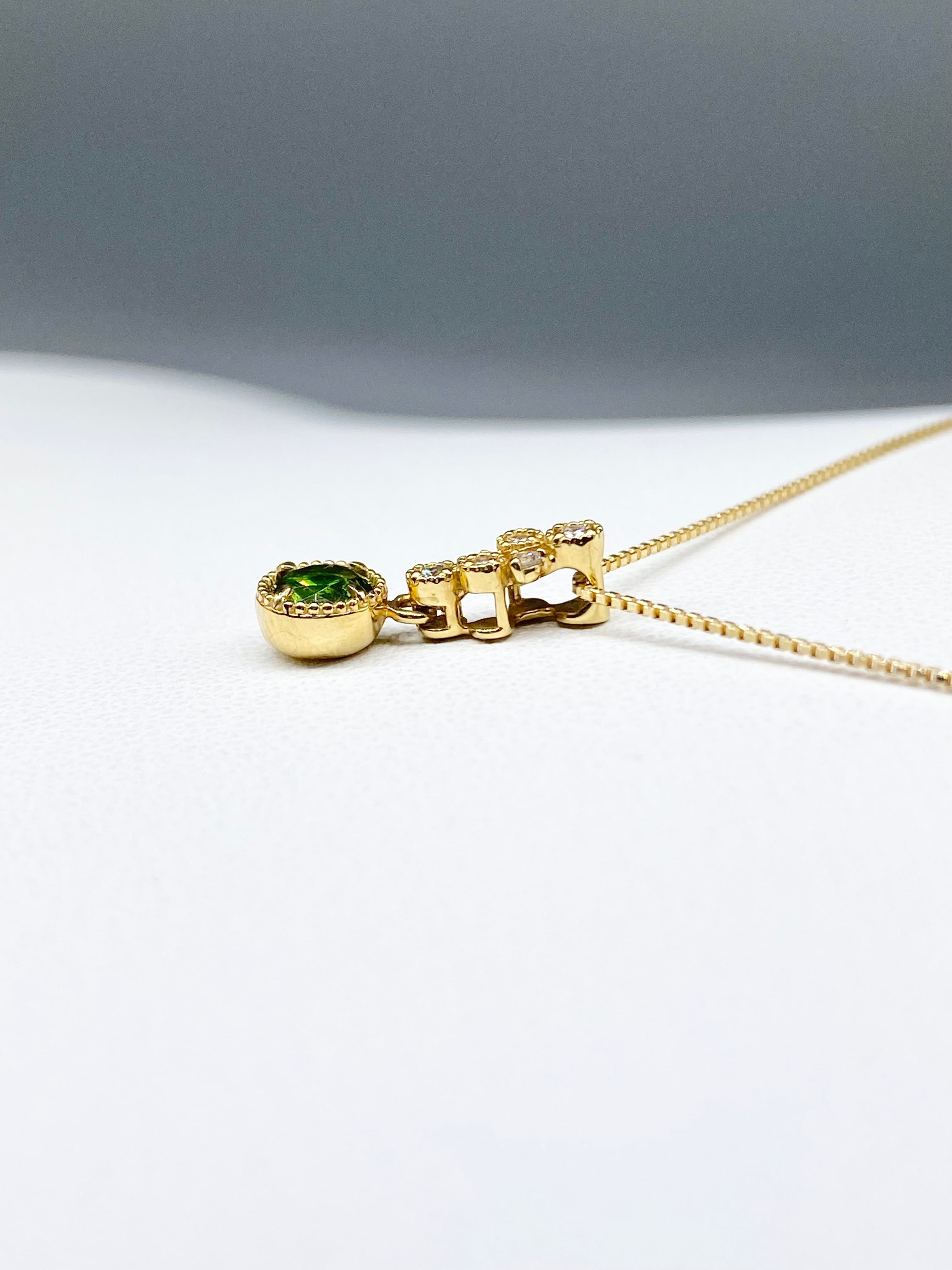 デマントイドガーネットとダイヤモンドの18金ネックレスのご紹介です。