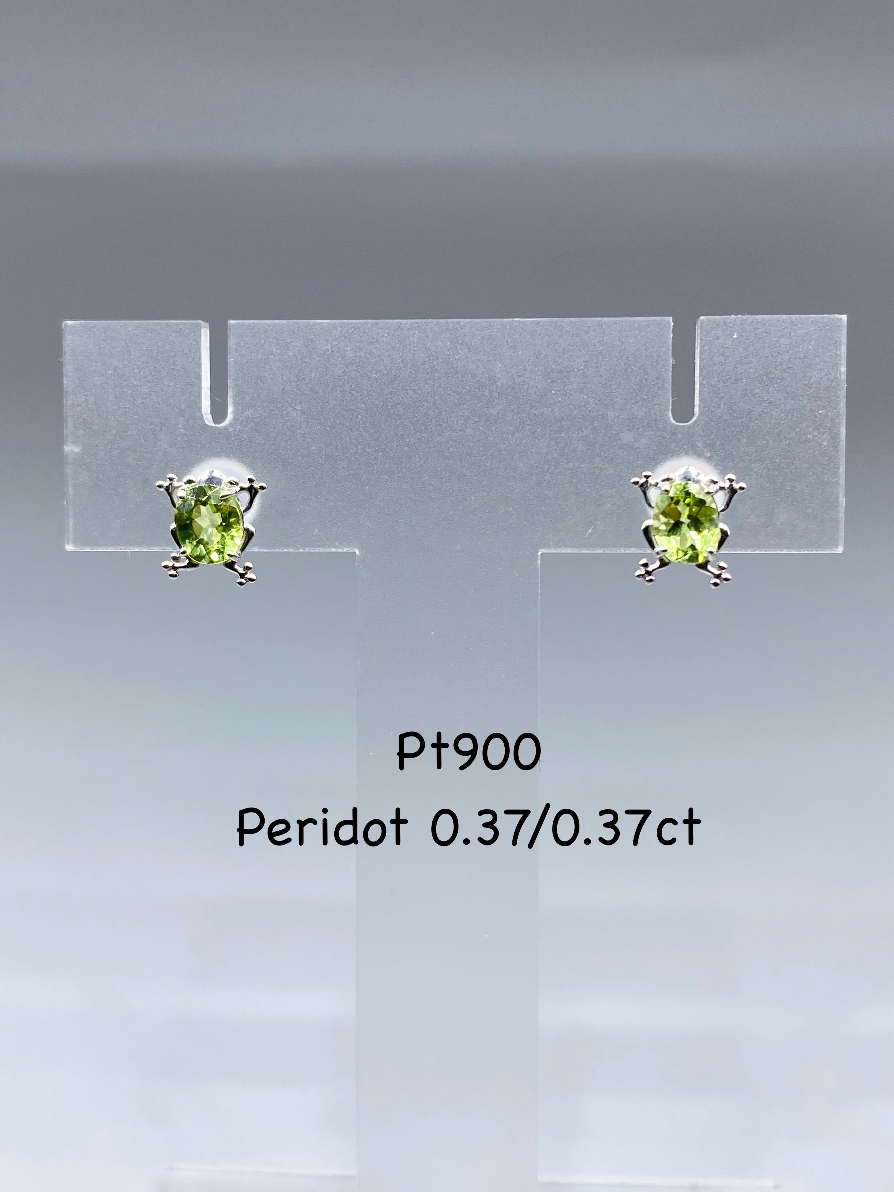 ペリドットのプラチナ900のピアスのご紹介です。こちらは新品となります。