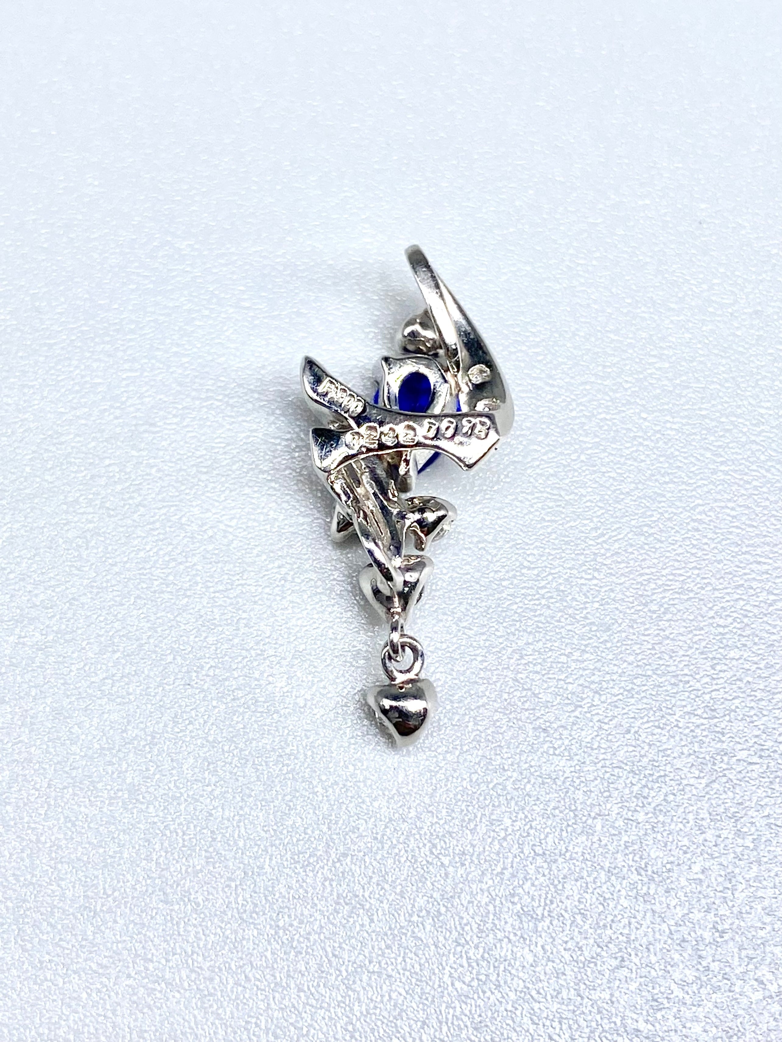 決して大ぶりなトップではありませんが、躍動感のある形状で、またこのアウイナイトの鮮烈なブルーとゆらめくダイヤモンドにより、十分に存在感のある一品に仕上がっております。