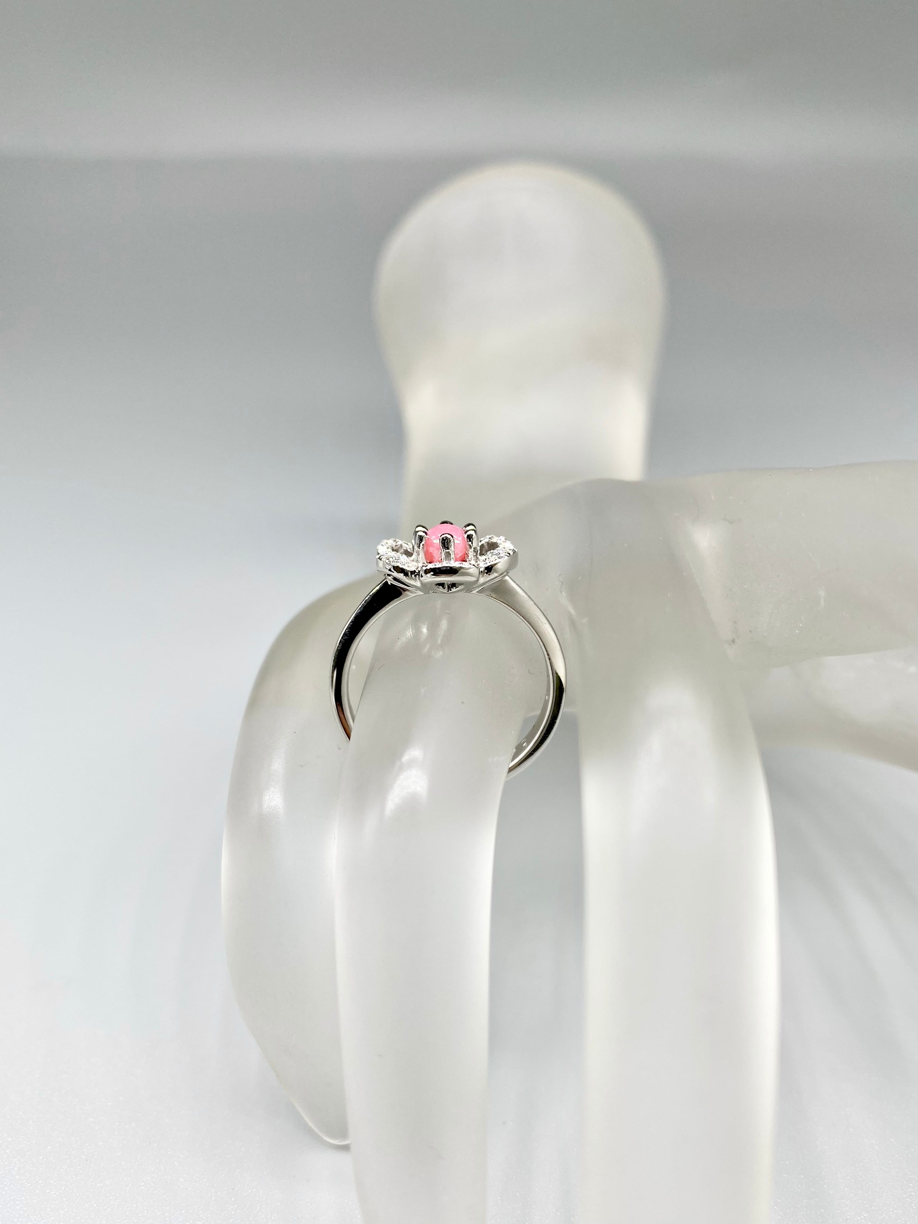 腕部分はシンプルで身に着けるとパッと可愛らしい花が咲いたように見えるリング。