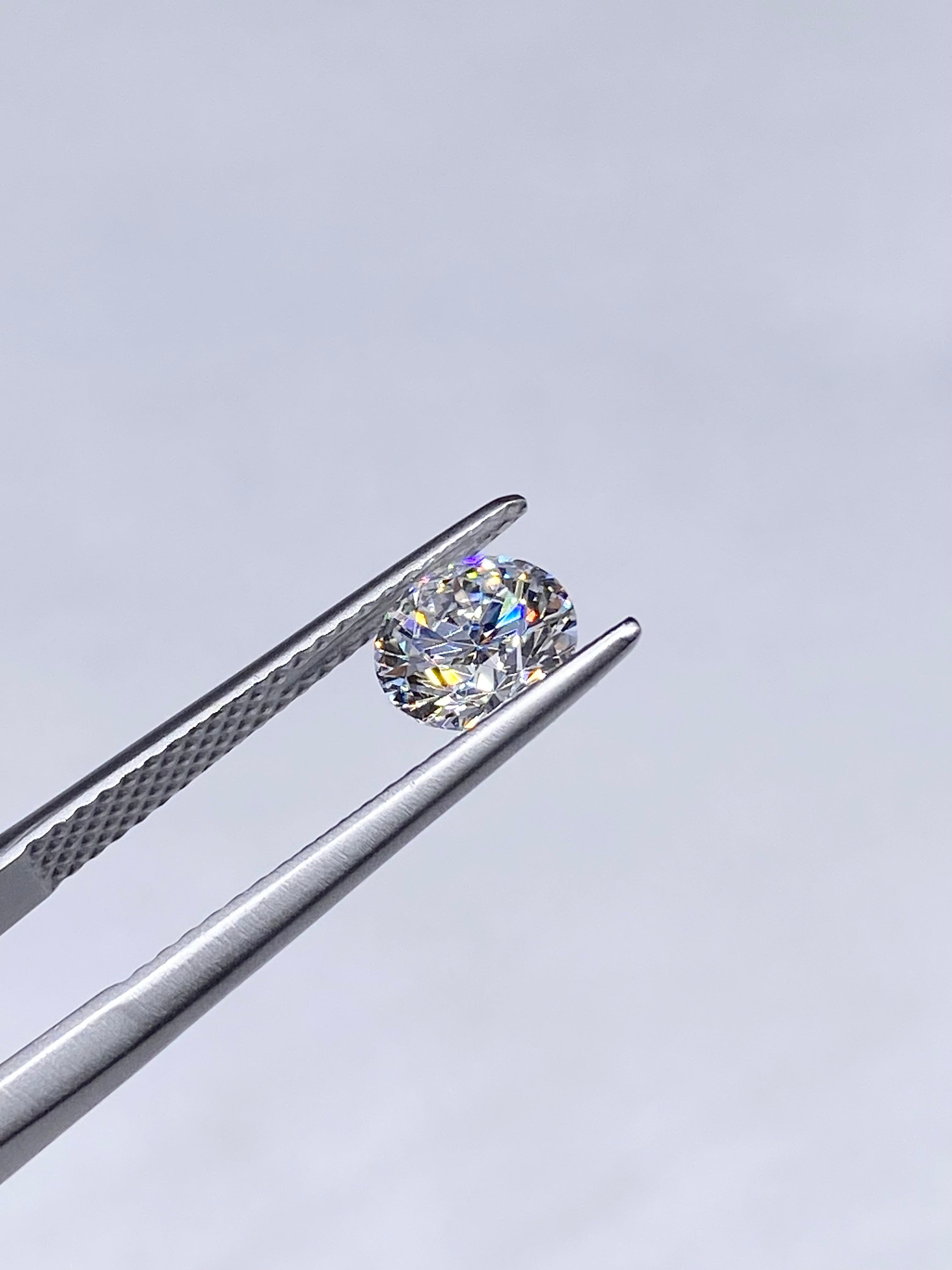 こちらのピースは重さも1カラットちょうど、最高の無色グレードを示すDカラーで、色も感じられず輝きも大変強め。同程度のグレードの天然ダイヤモンドと比べると価格も大幅に低いため、天然にこだわらず大きさ、輝きを楽しみたいという方にはお勧めしたい一品です。
