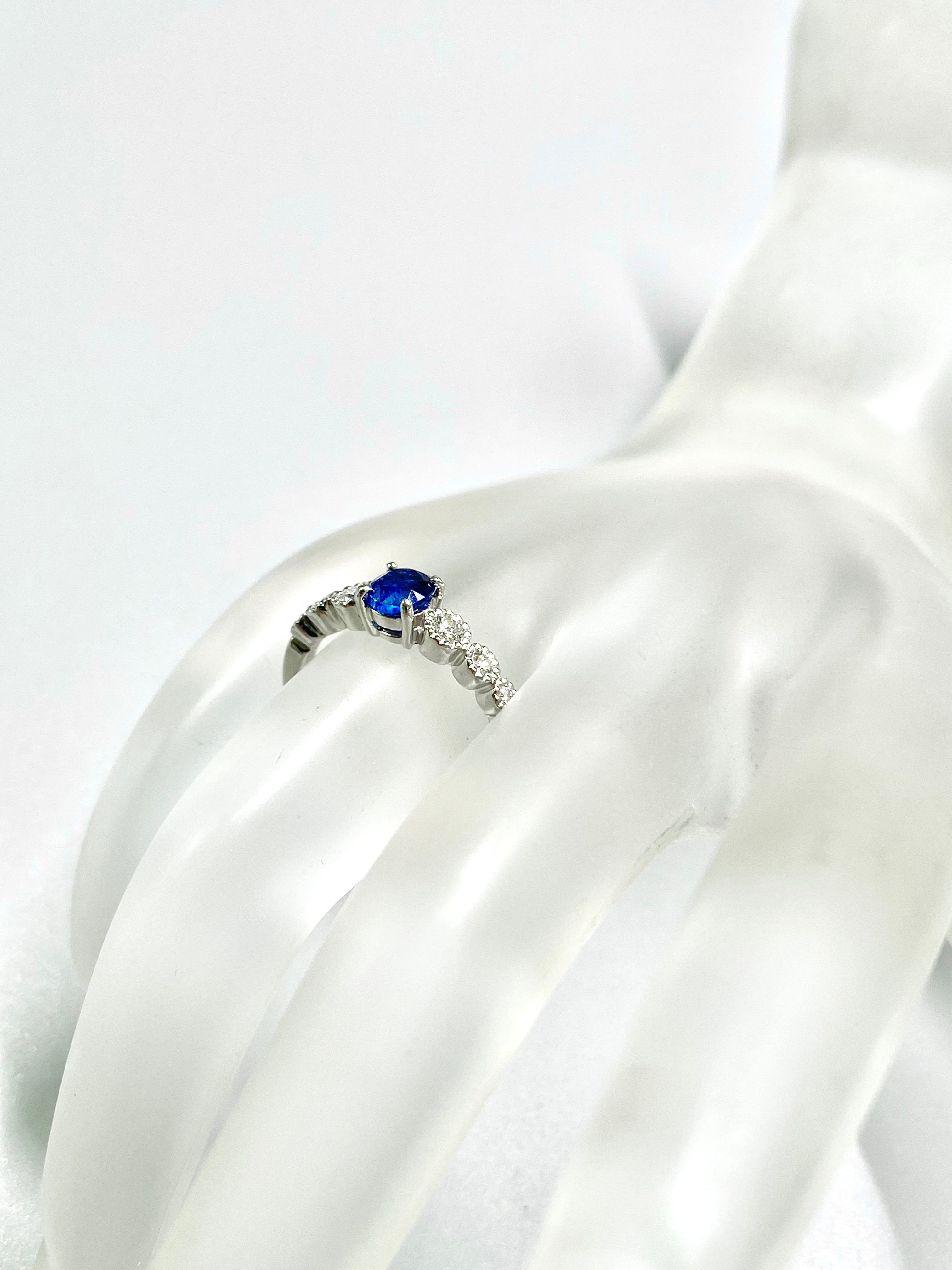 全体の形状自体はシンプルめで身に着けやすく、様々なシーンで使いやすい一品かと思います。コバルトスピネルのジュエリーは数が少なめなこともありますので、お探しの方はこちらのリング、ぜひお迎えをご検討下さい。