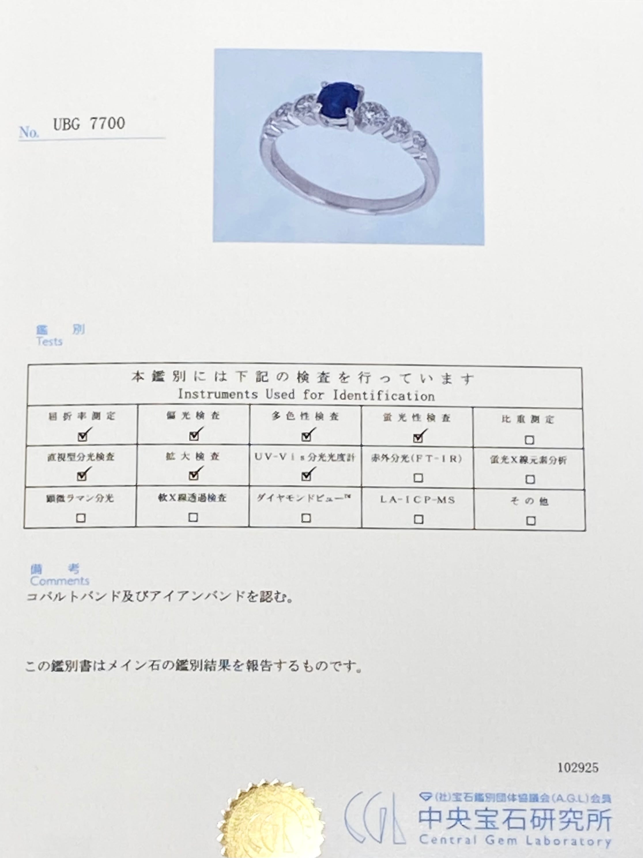 コバルトスピネル 0.472ct / ダイヤモンド 計0.18ct Pt900 リング 11.5号【リフレッシュメント(新品仕上げ・補修・洗浄等済)】【3日以内返品可(※カード/キャリア決済の場合)】【動画リンク Twitter/X】あり
