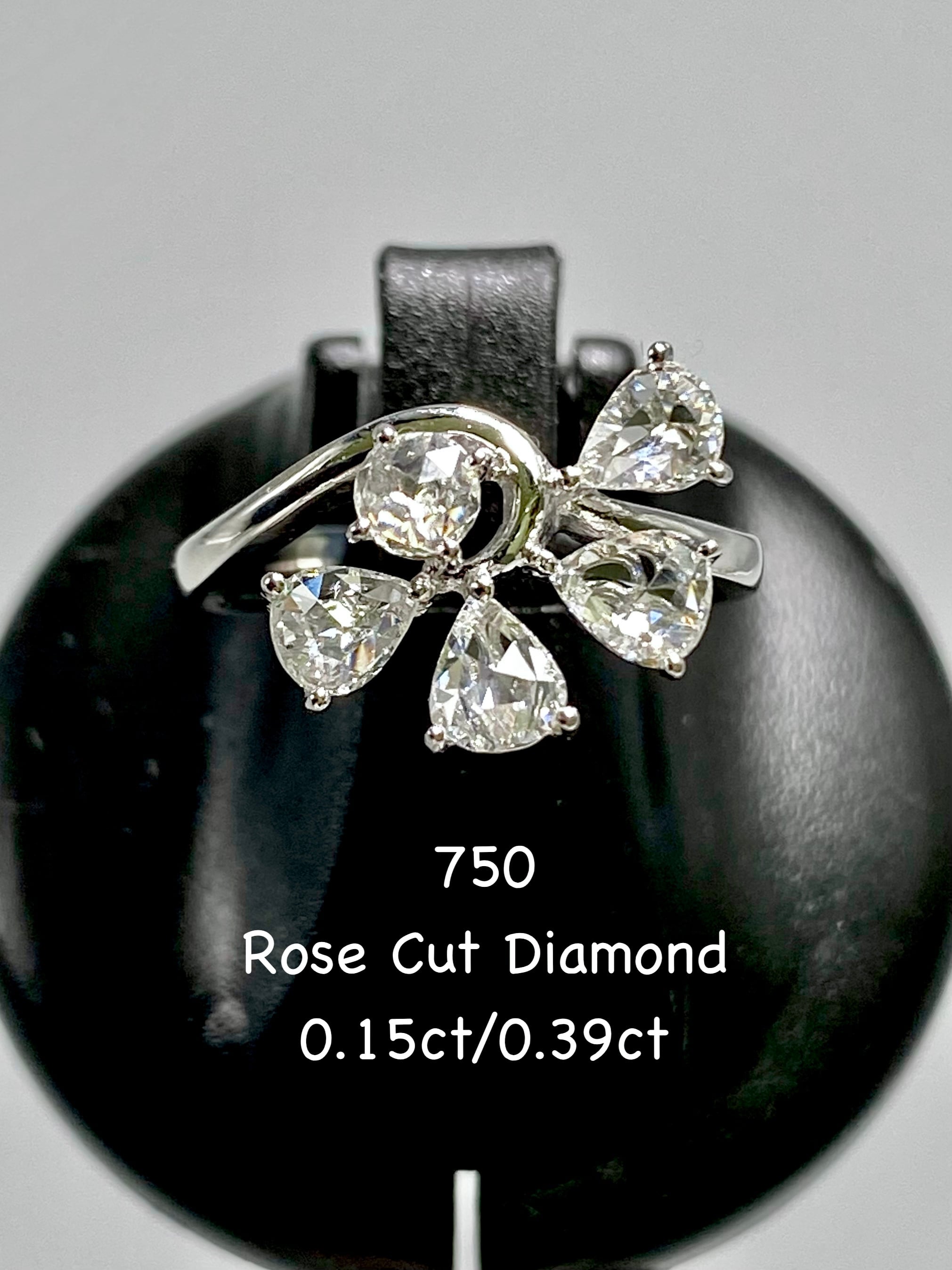 ローズカットダイヤモンド 0.15ct (ラウンド) / ローズカットダイヤモンド (ペアシェイプ) 計0.39ct 750(18金) リング 10号【リフレッシュメント(新品仕上げ・補修・洗浄等済)】【3日以内返品可(※カード/キャリア決済の場合)】