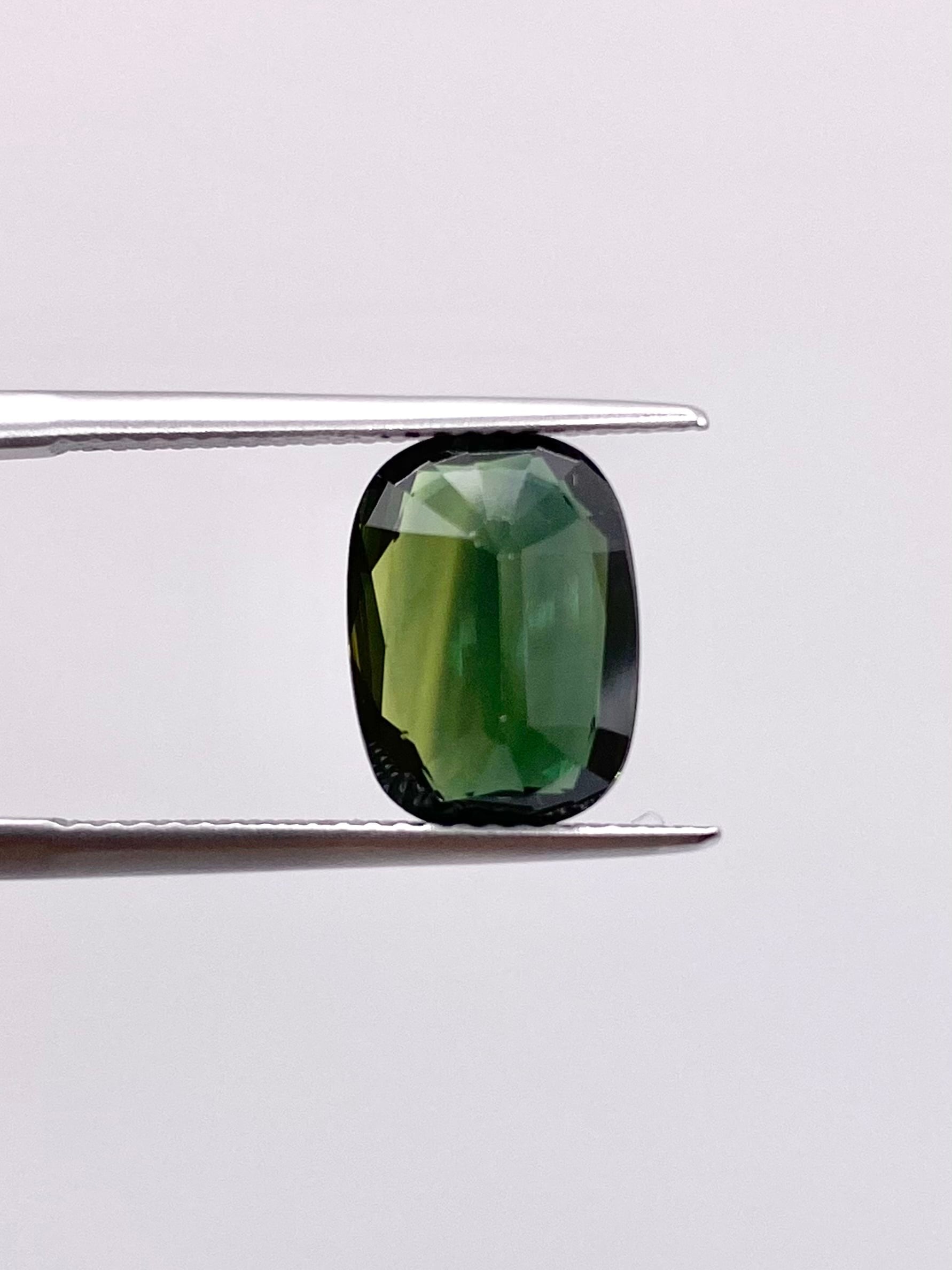 やや黒みのある落ち着いたグリーンで、一見するとグリーントルマリンにも見えます。
