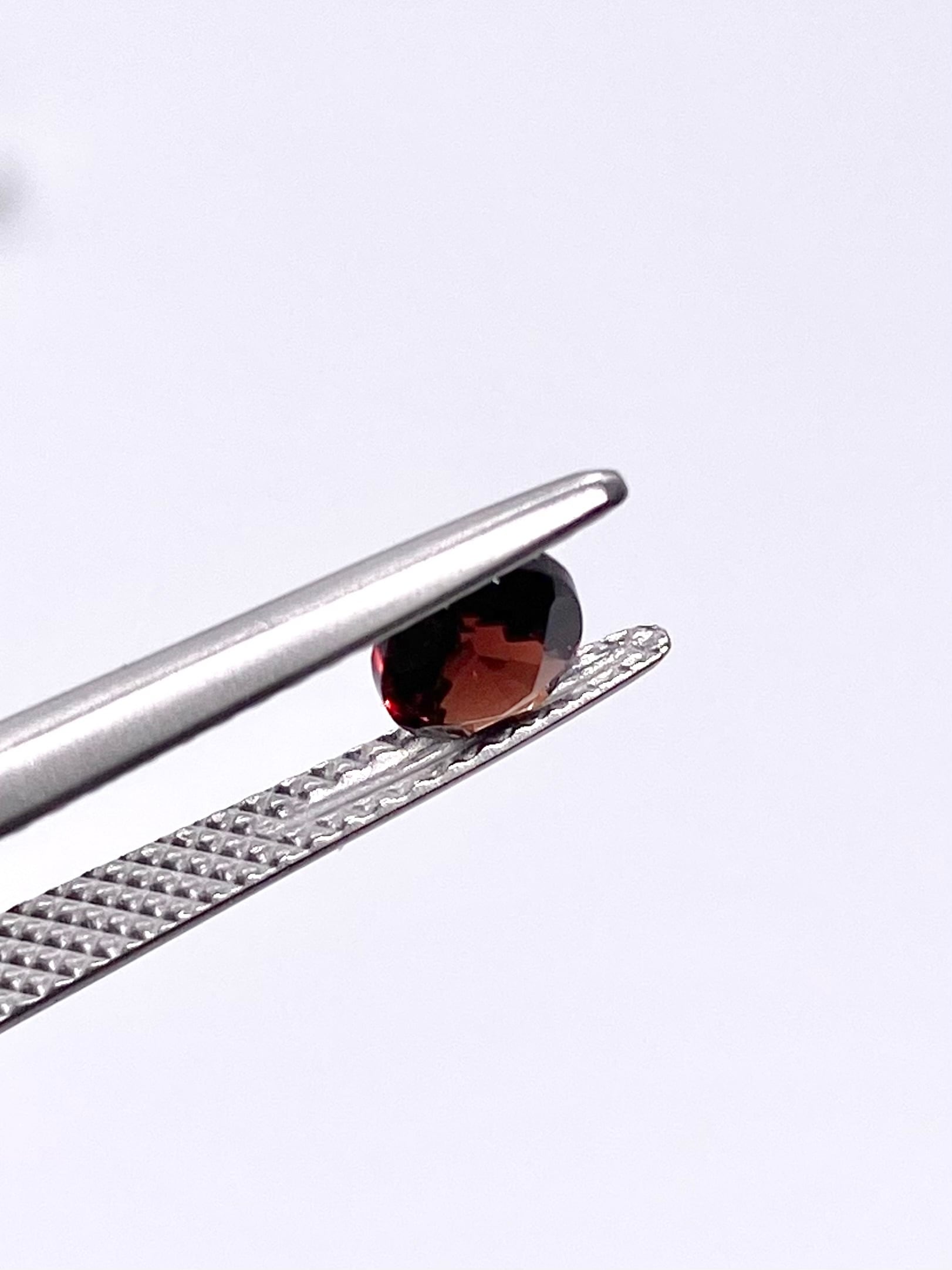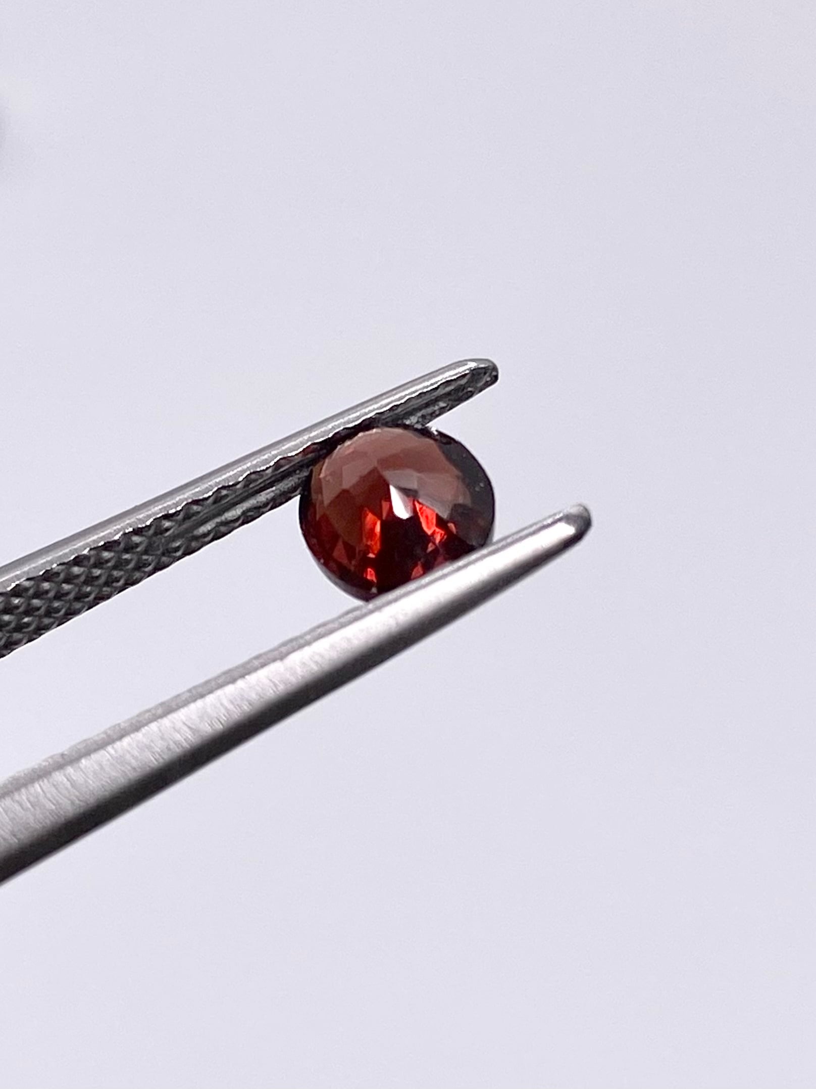 黒みが強く、その中に橙色がかった赤が混じって輝きます。ガーネットに似た外観です。