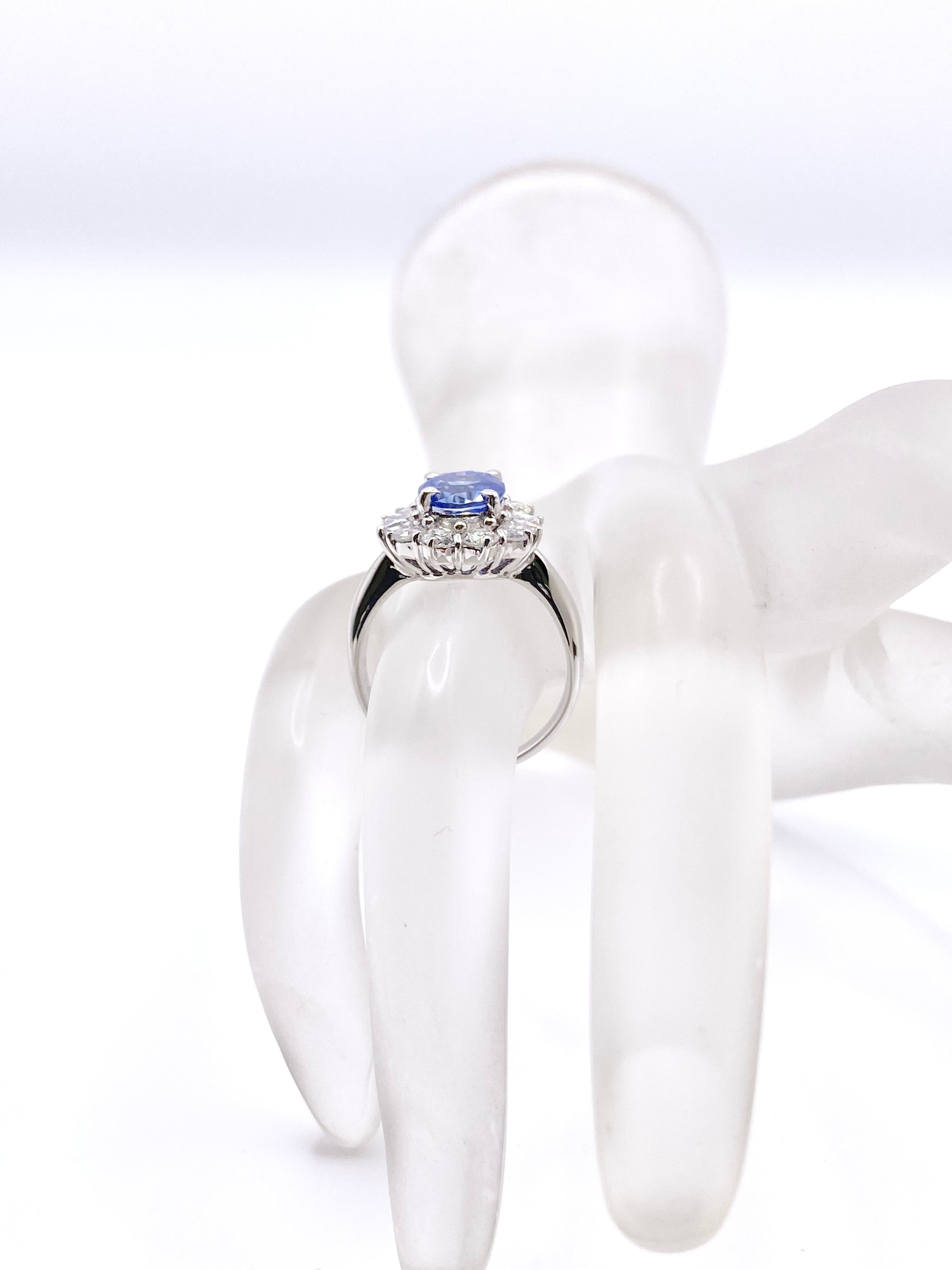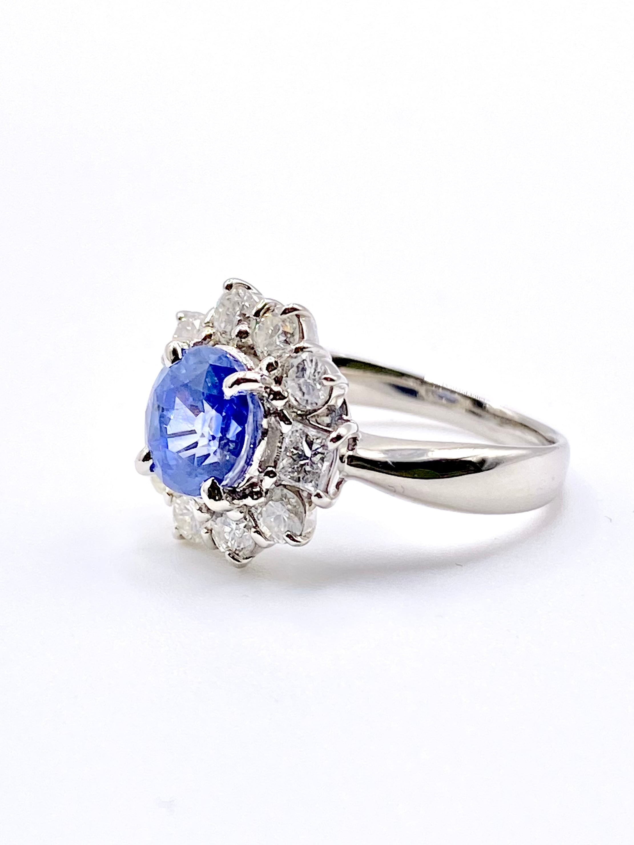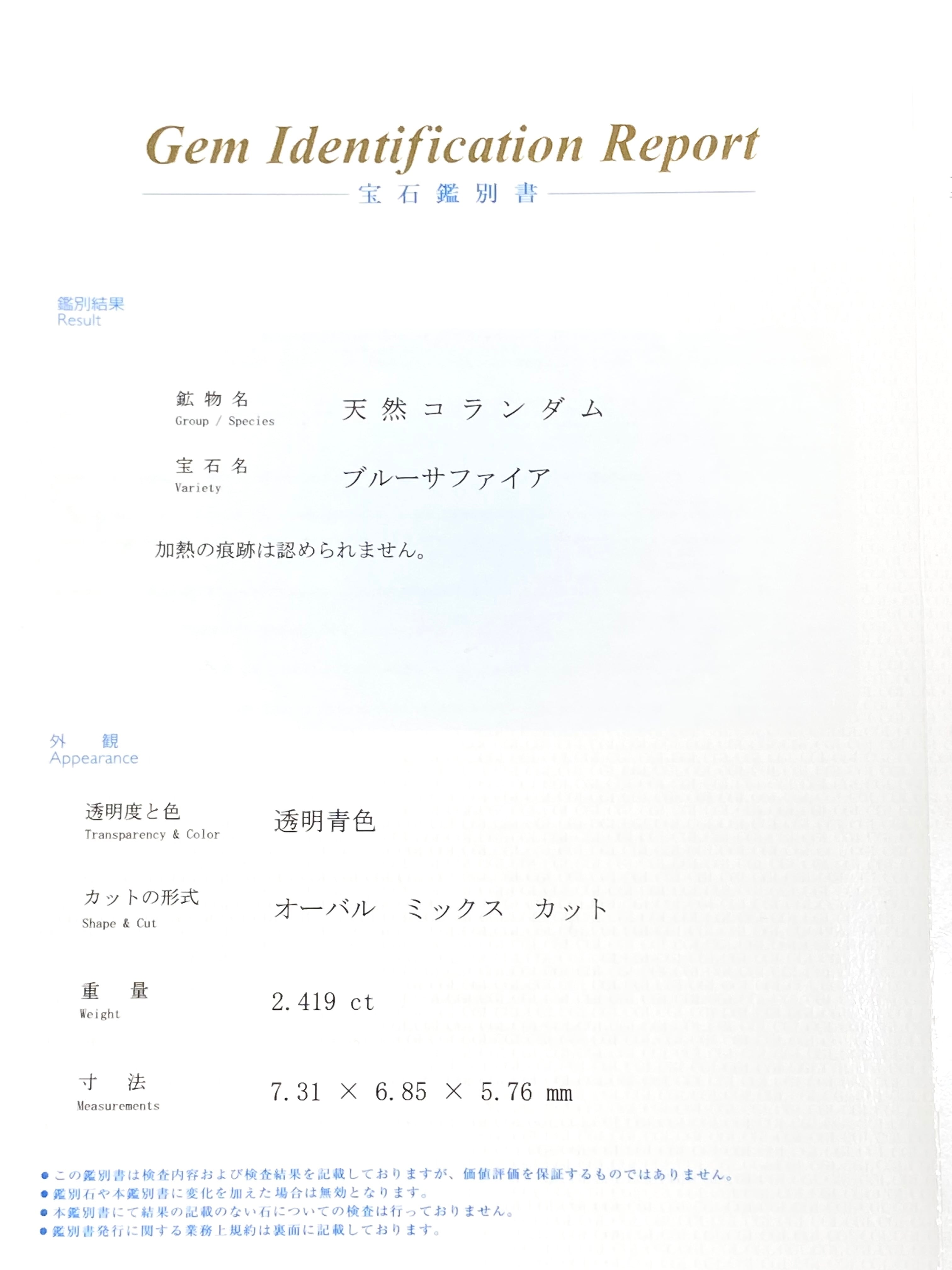 非加熱ブルーサファイアとダイヤモンドのプラチナ900リングです。