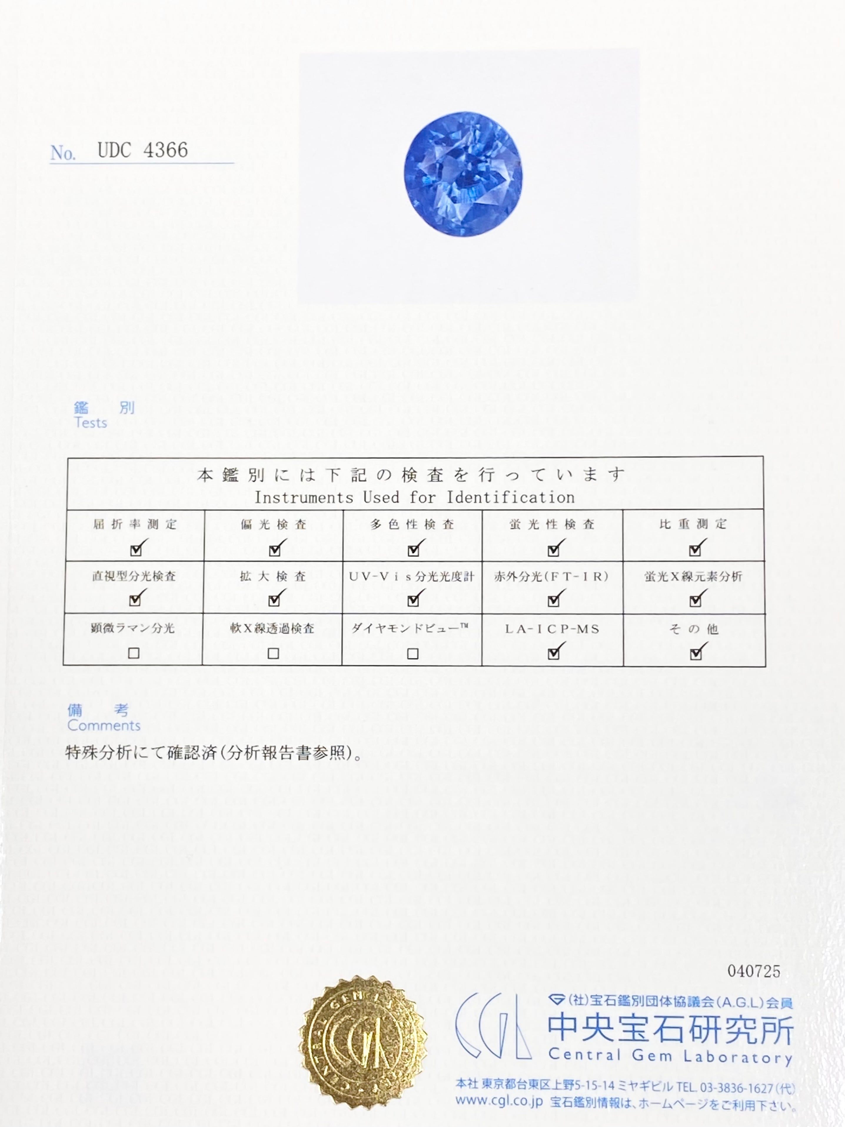 鑑別書 (中央宝石研究所)