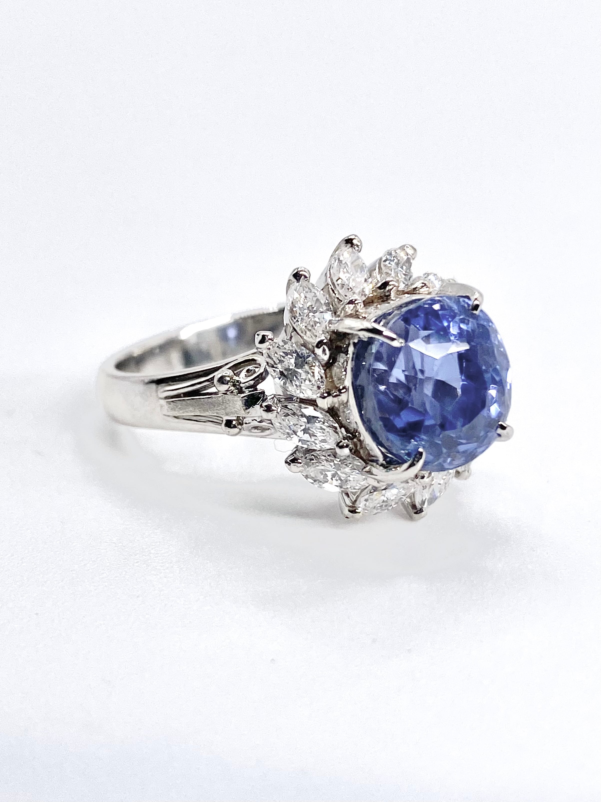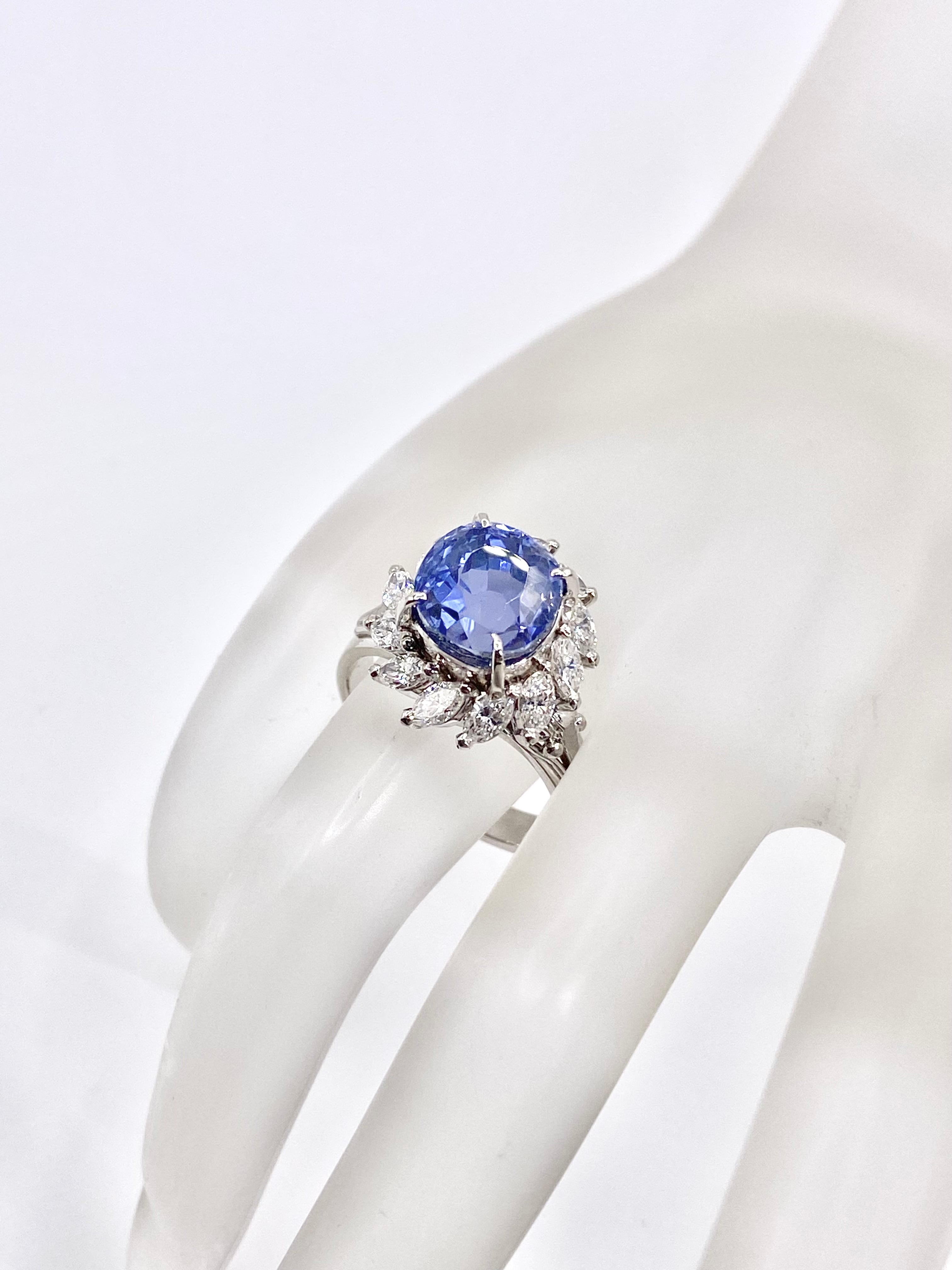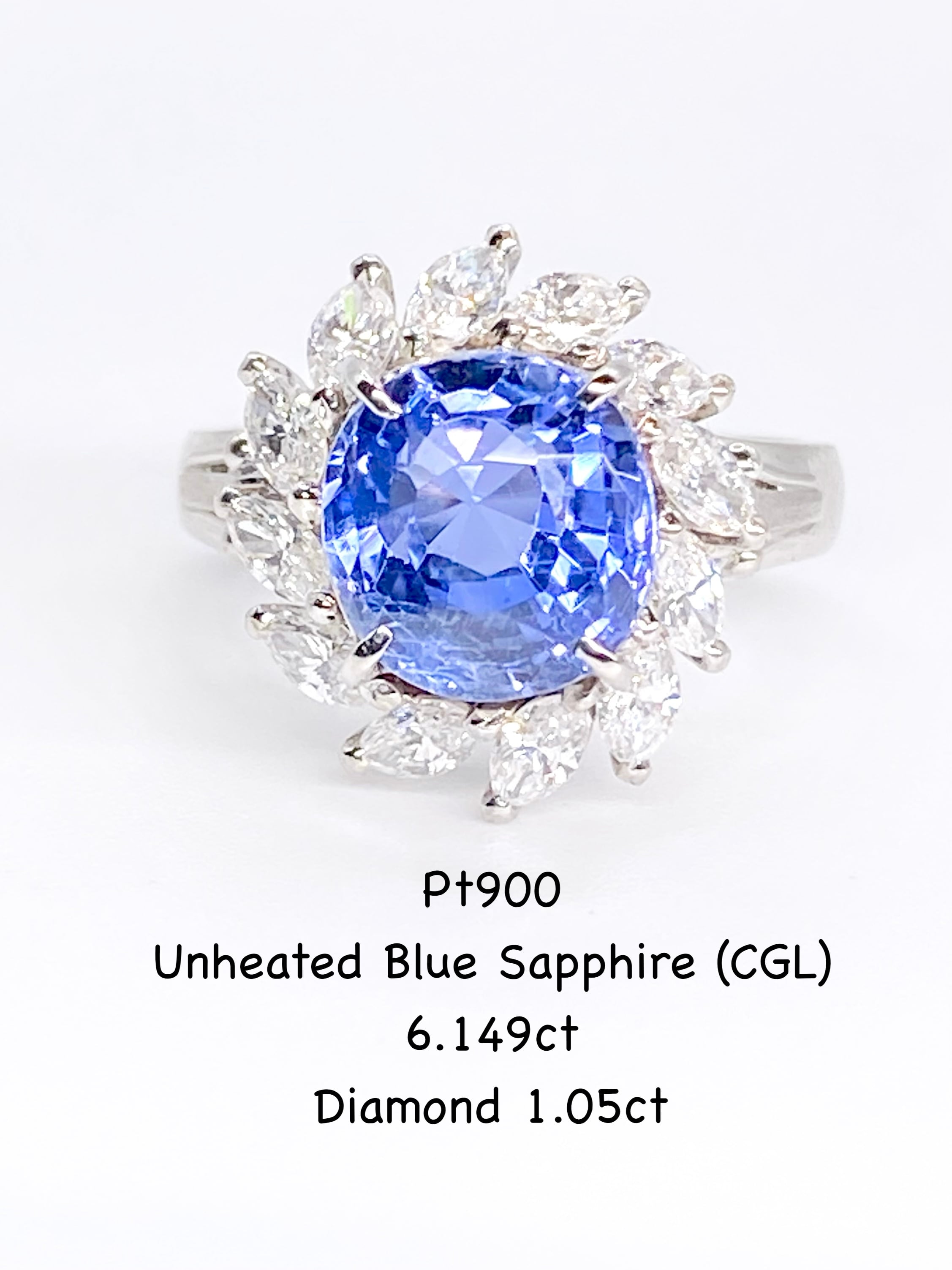 非加熱ブルーサファイアとダイヤモンドのプラチナ900リングです。