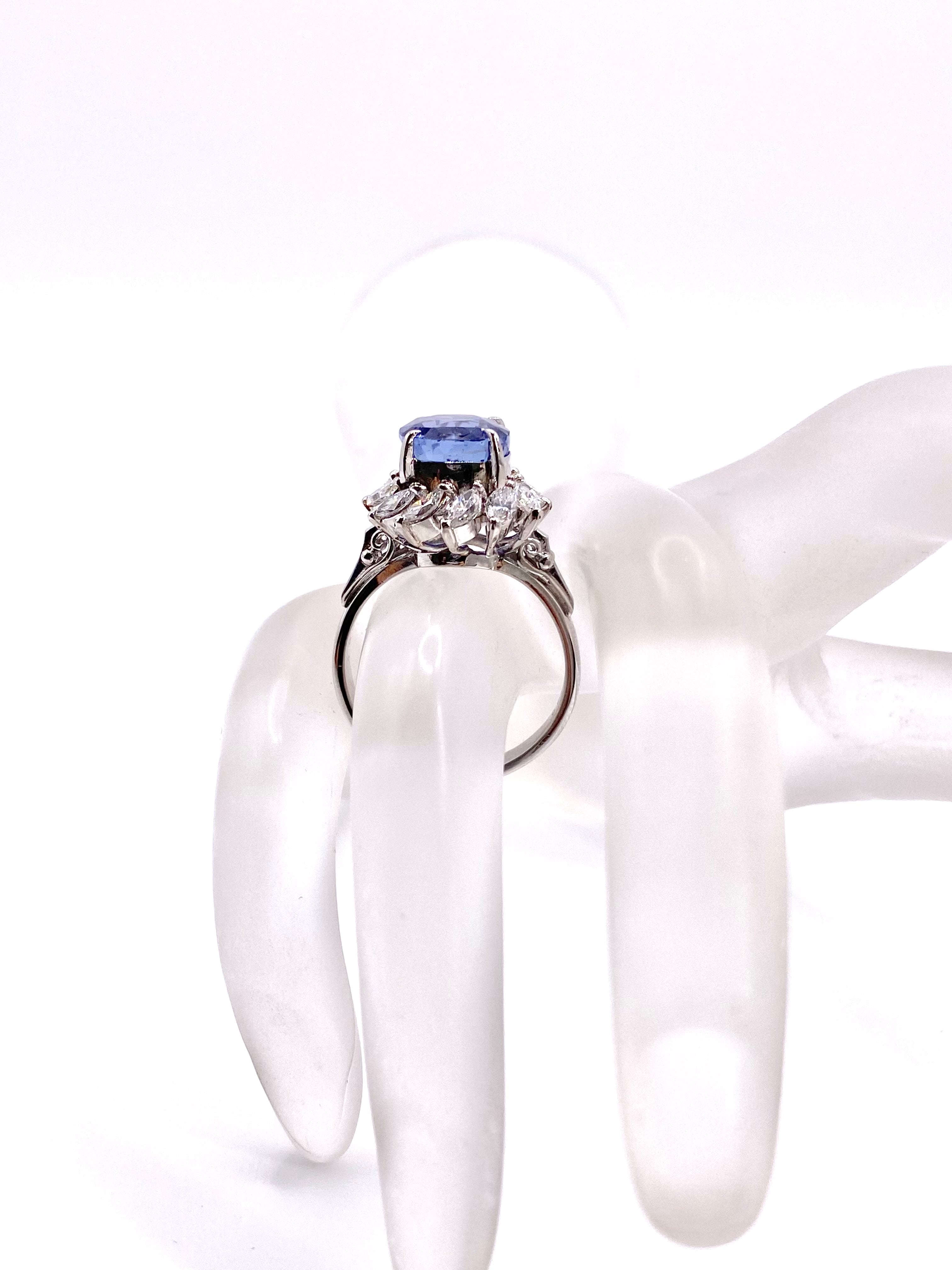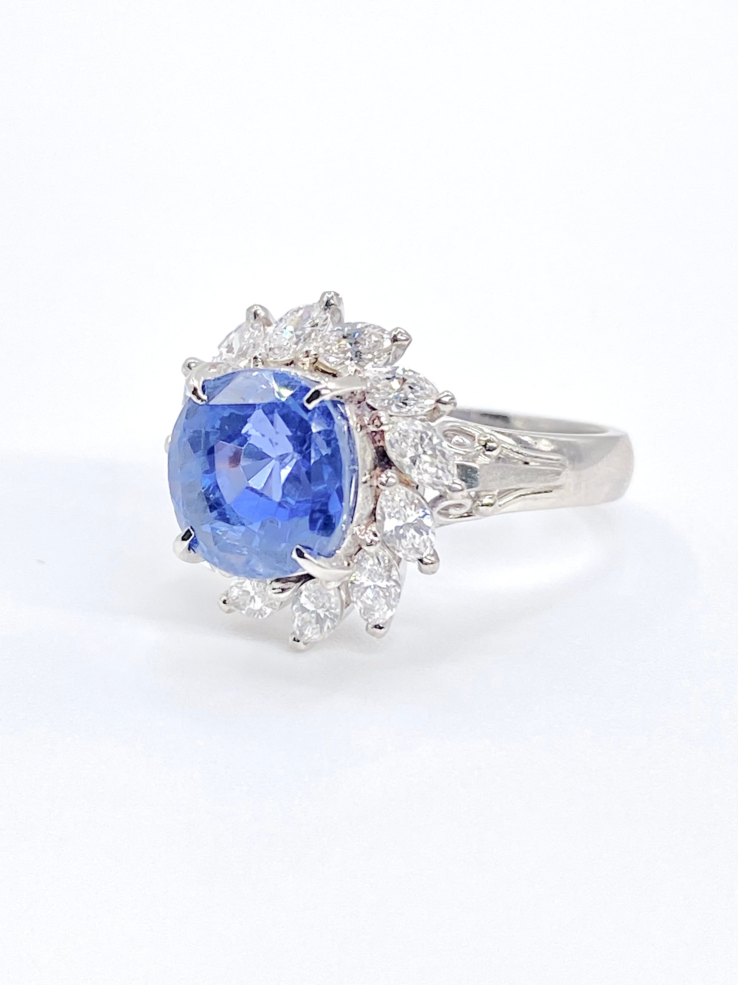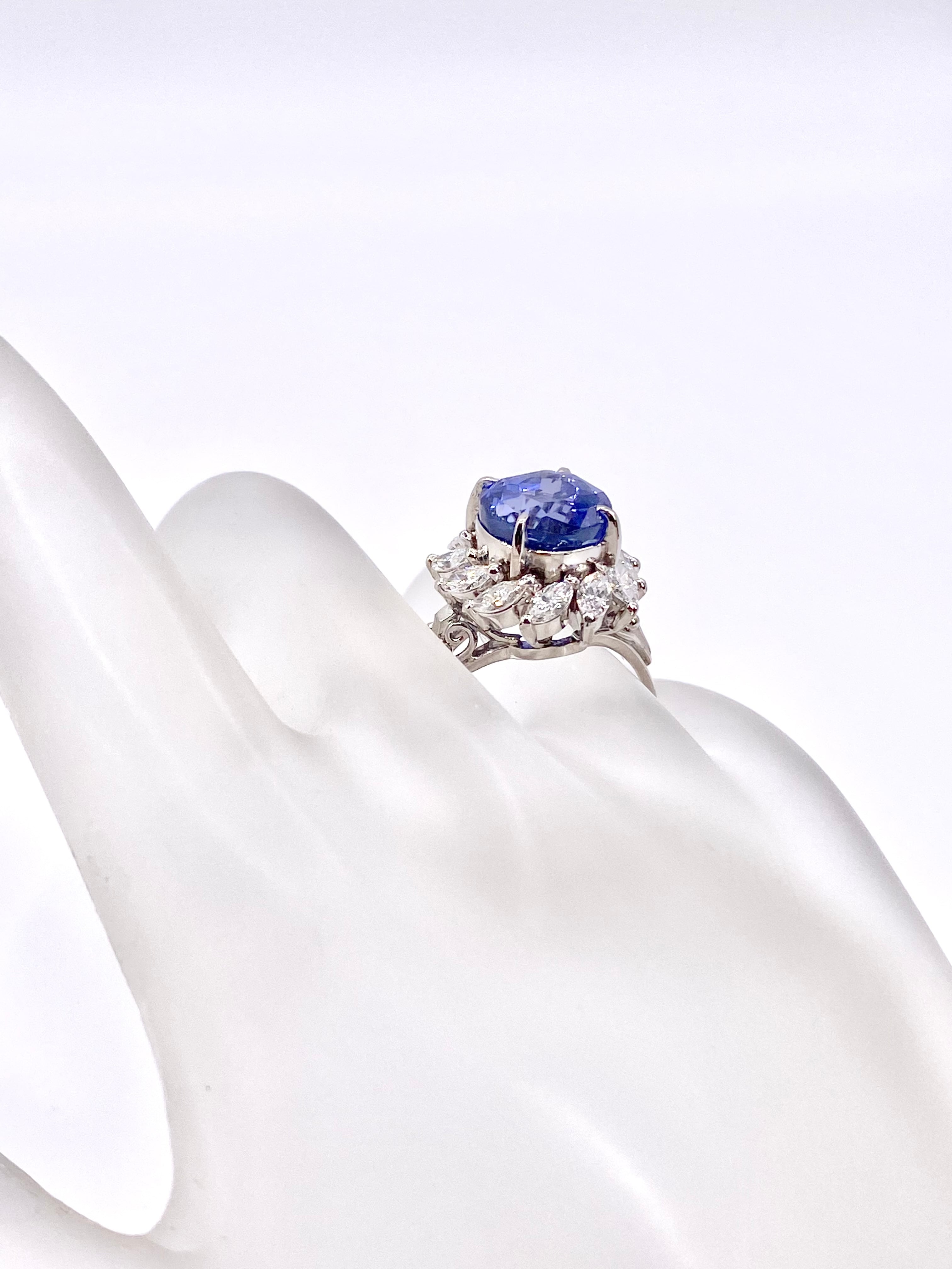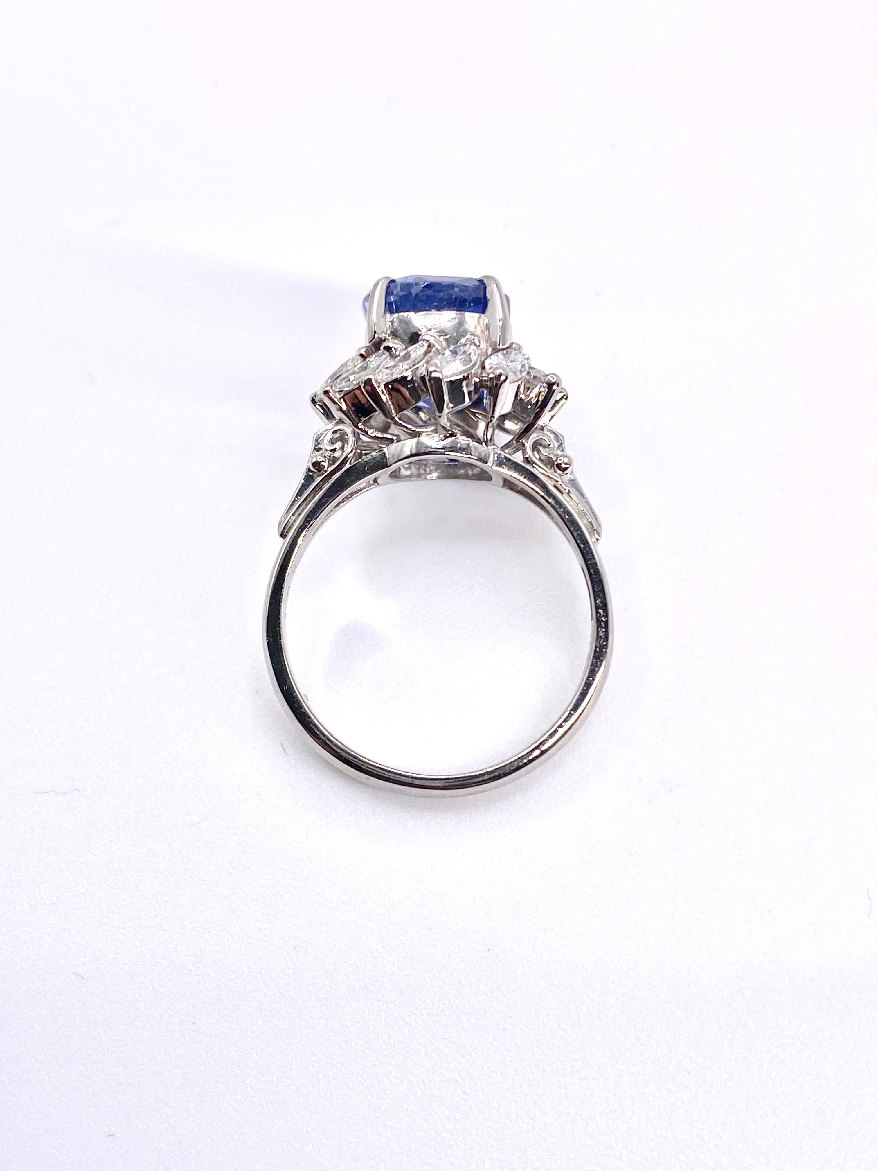 非加熱ブルーサファイアとダイヤモンドのプラチナ900リングです。