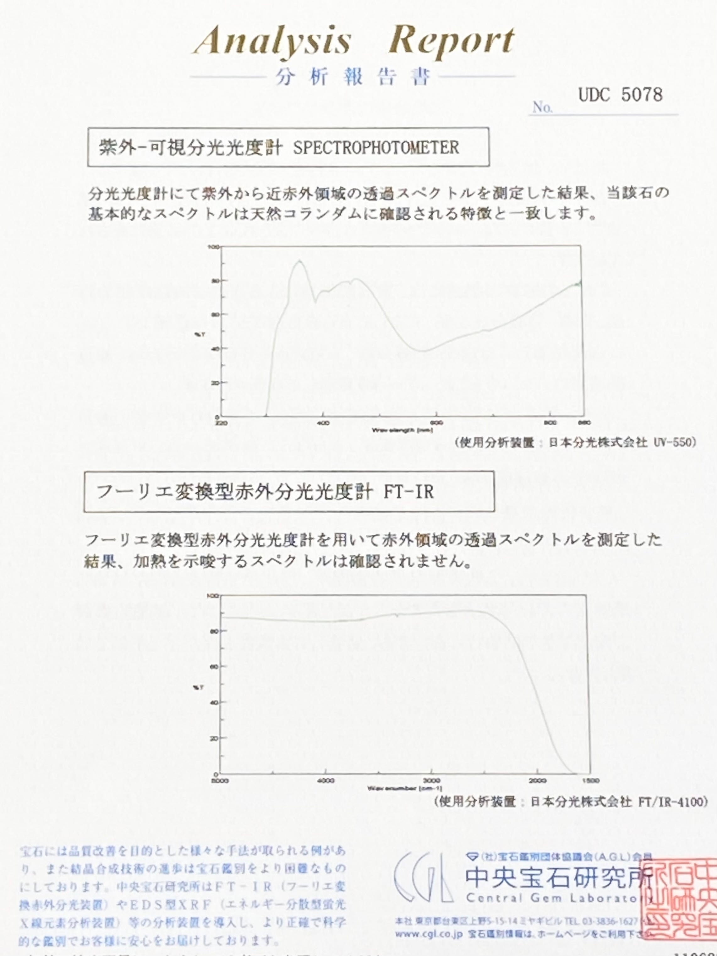 鑑別書 (中央宝石研究所)