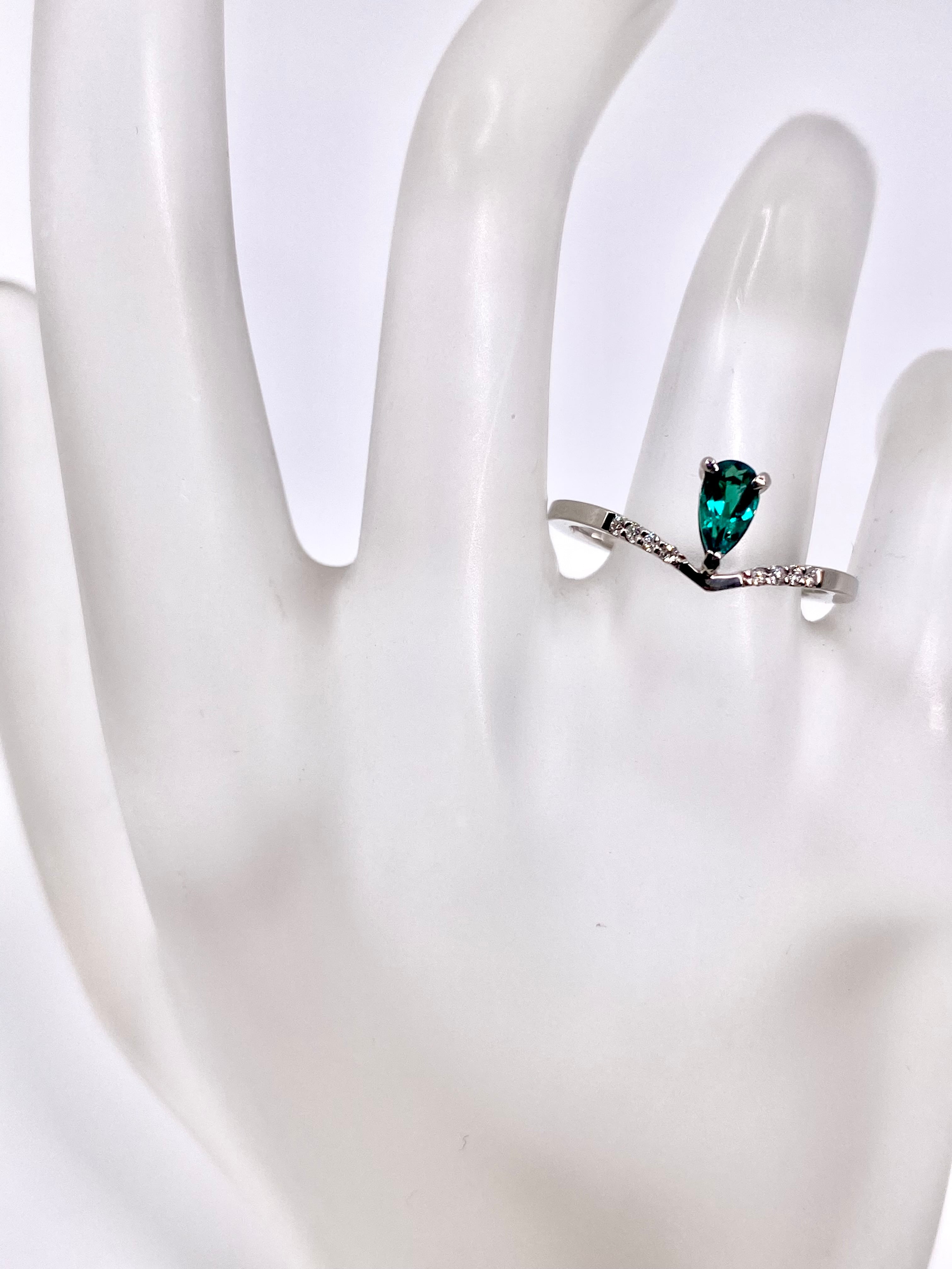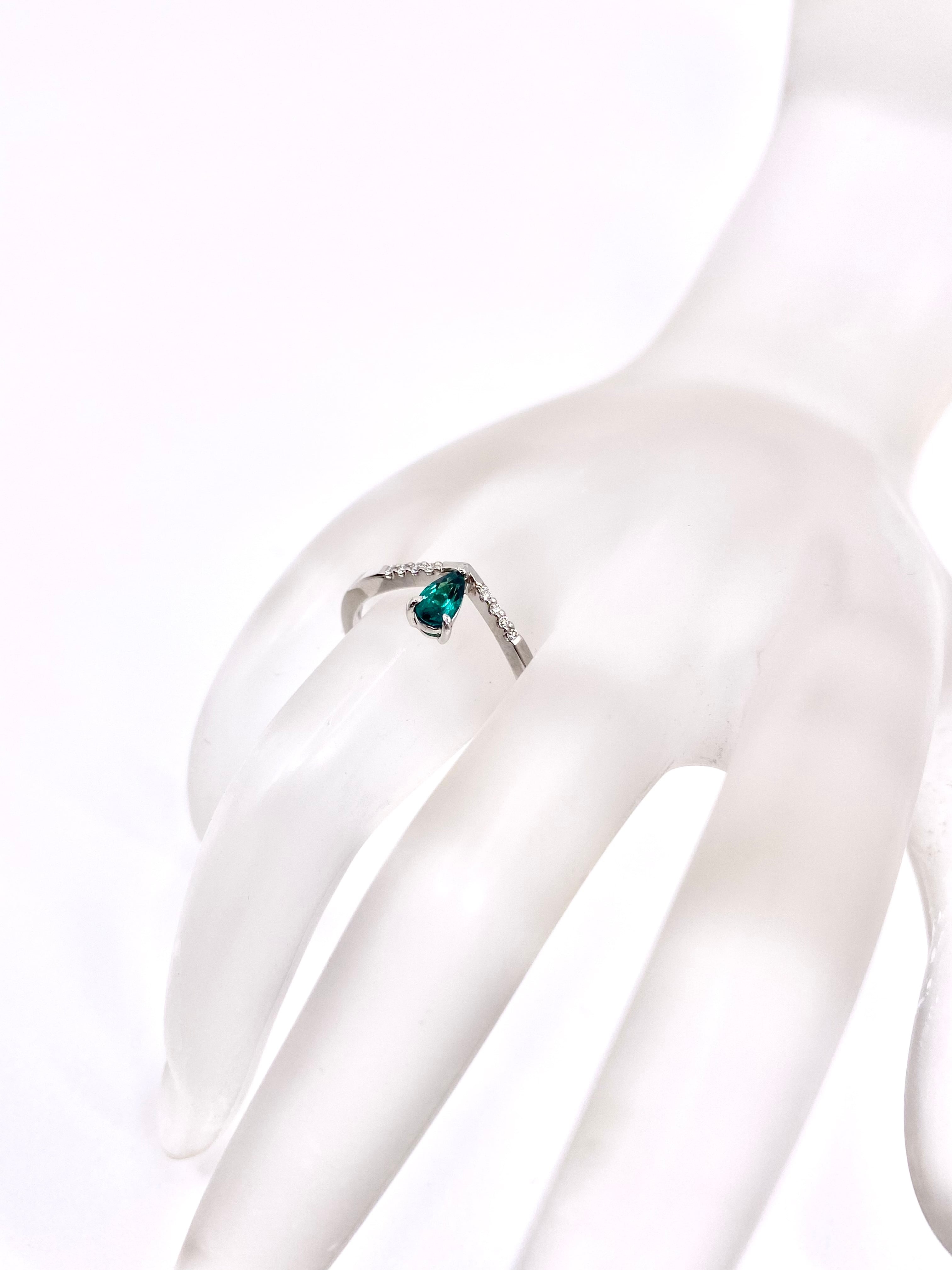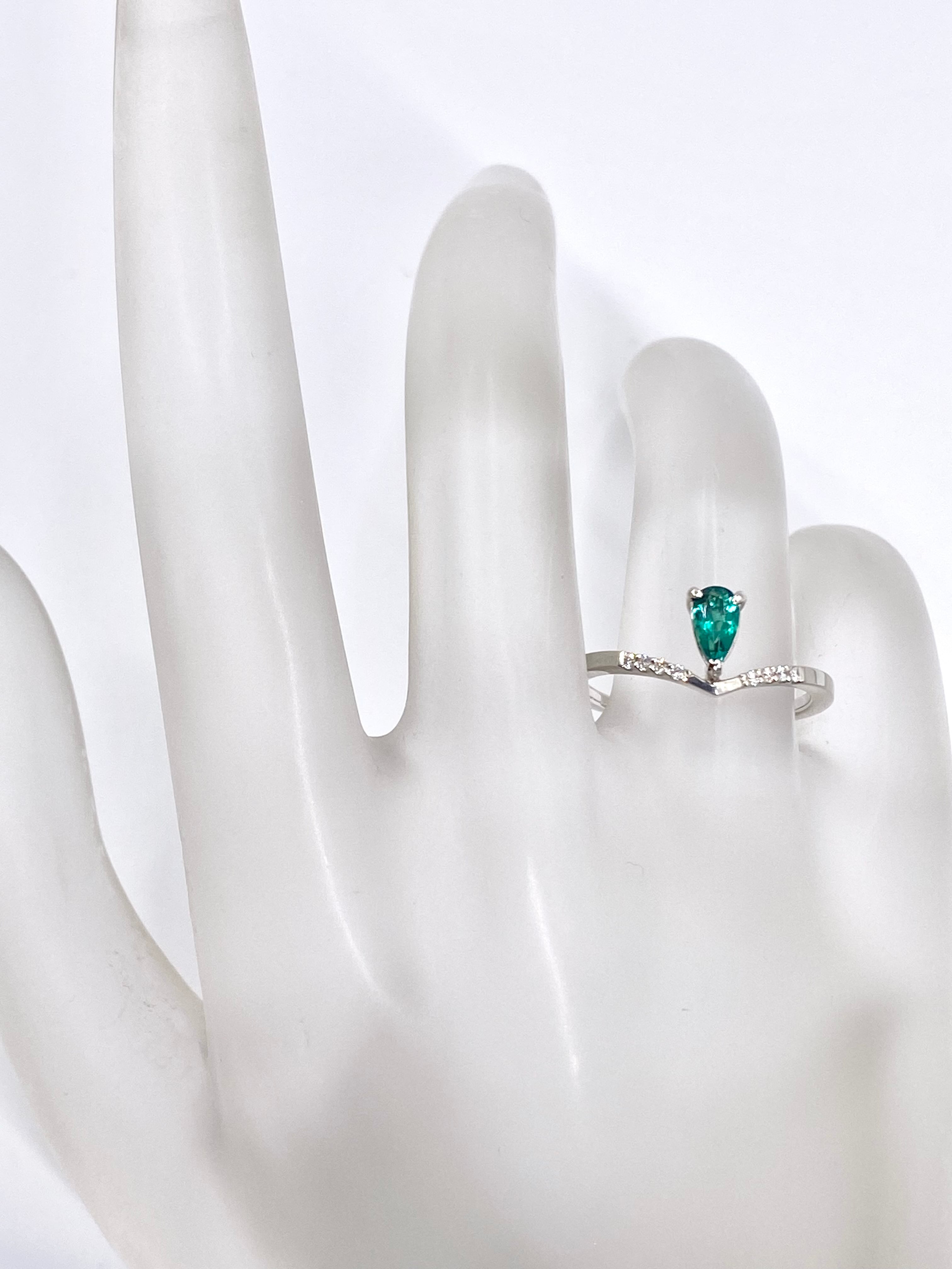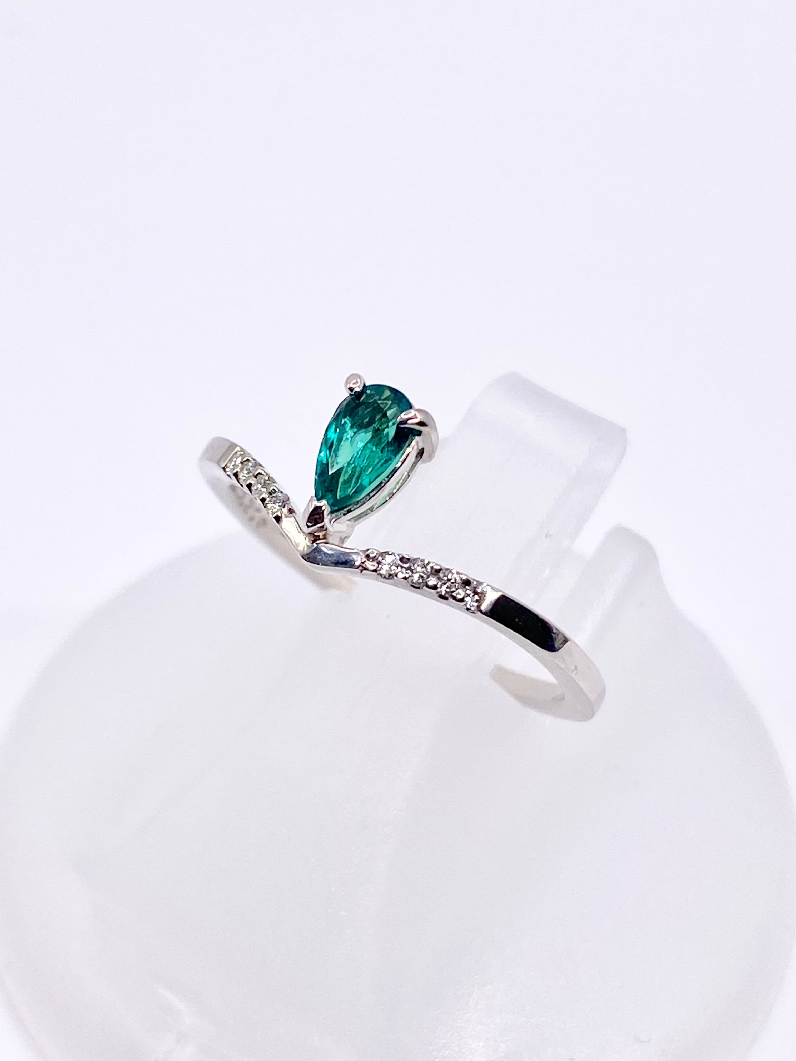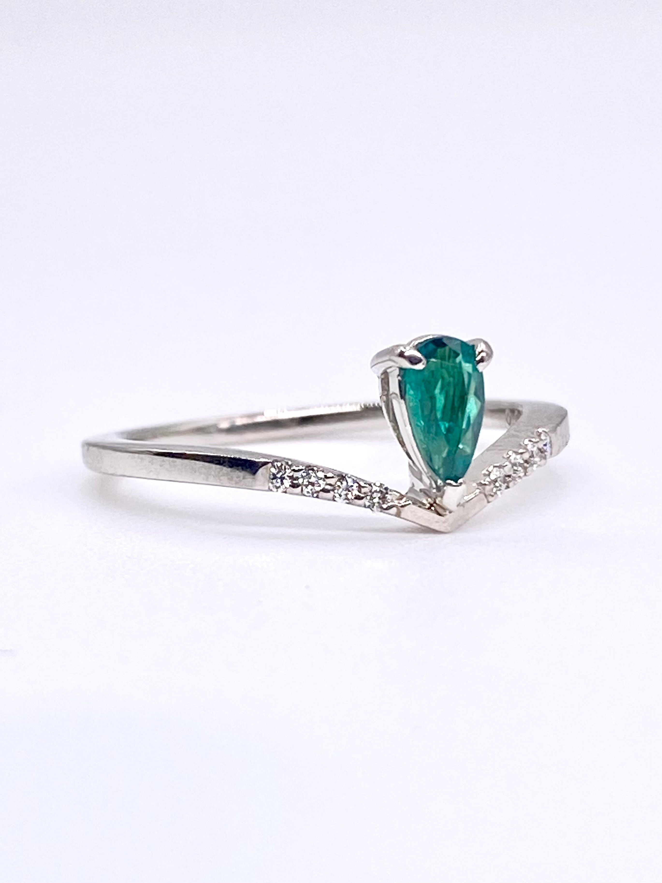 リングとしては、シンプルで華奢なV字のデザインで、中央部にアウイナイトがセットされています。