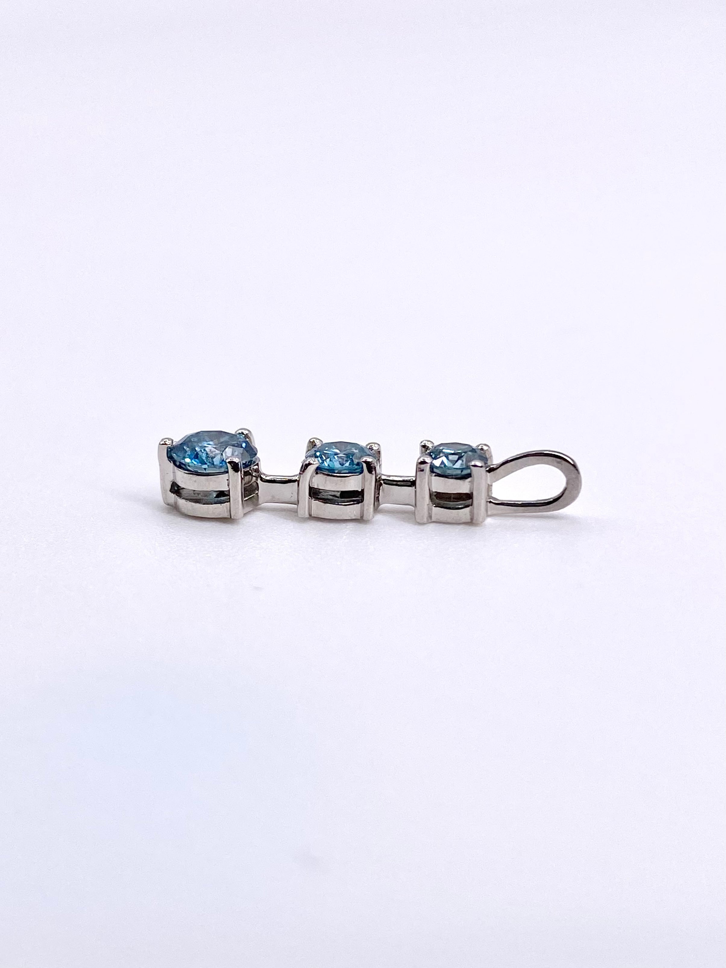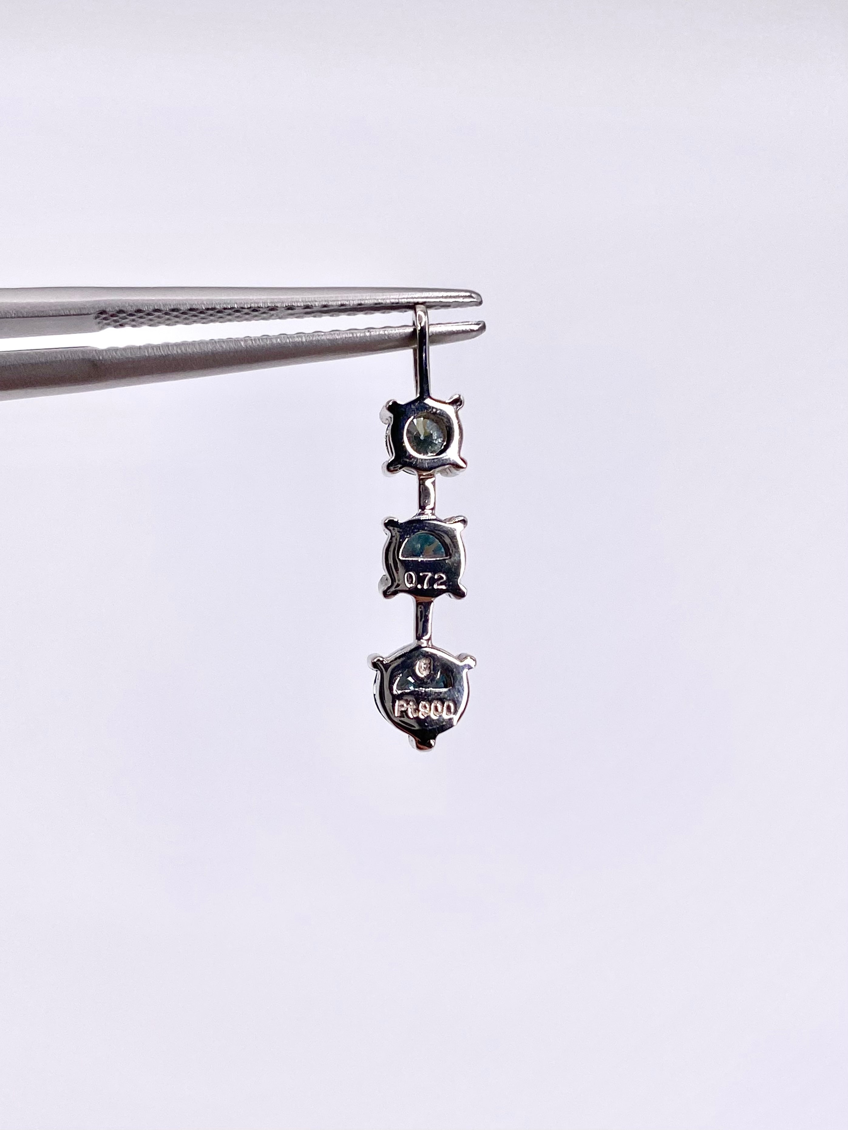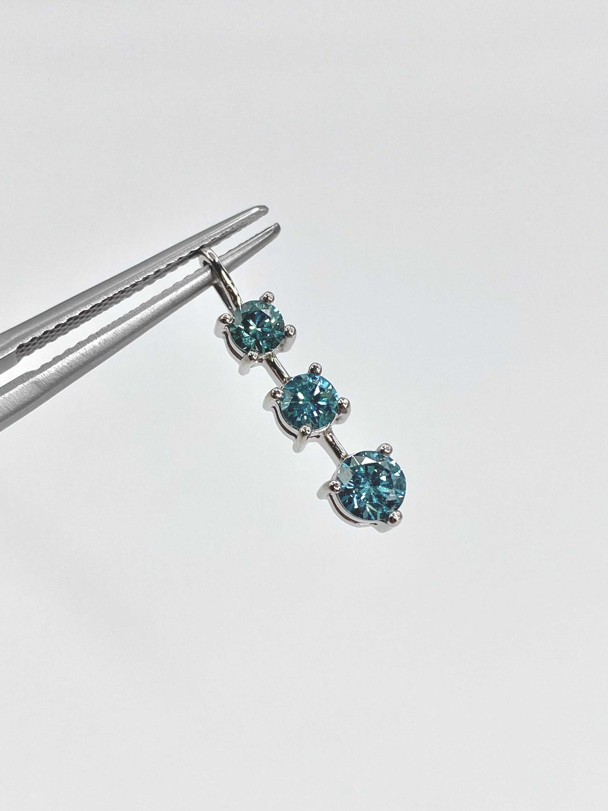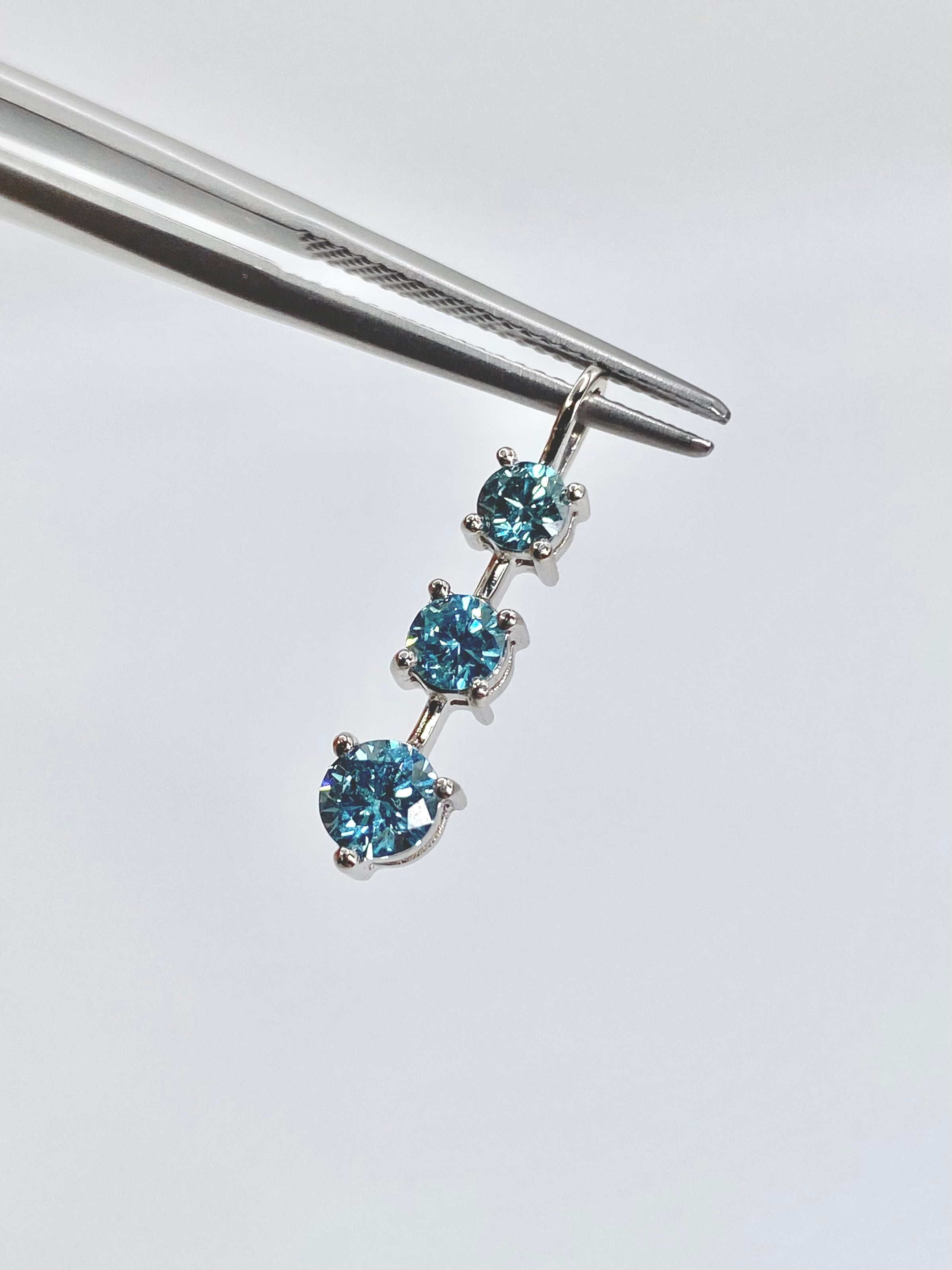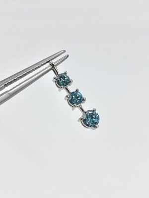 アクアマリンのように瑞々しい印象の水色のダイヤモンドが、大中小とグラデーションのサイズでセットされたペンダント。シンプルでどなたさまも使いやすく品のある印象を受けます。(※ダイヤモンドの色は画像よりもう少し水色に近い色合いです)