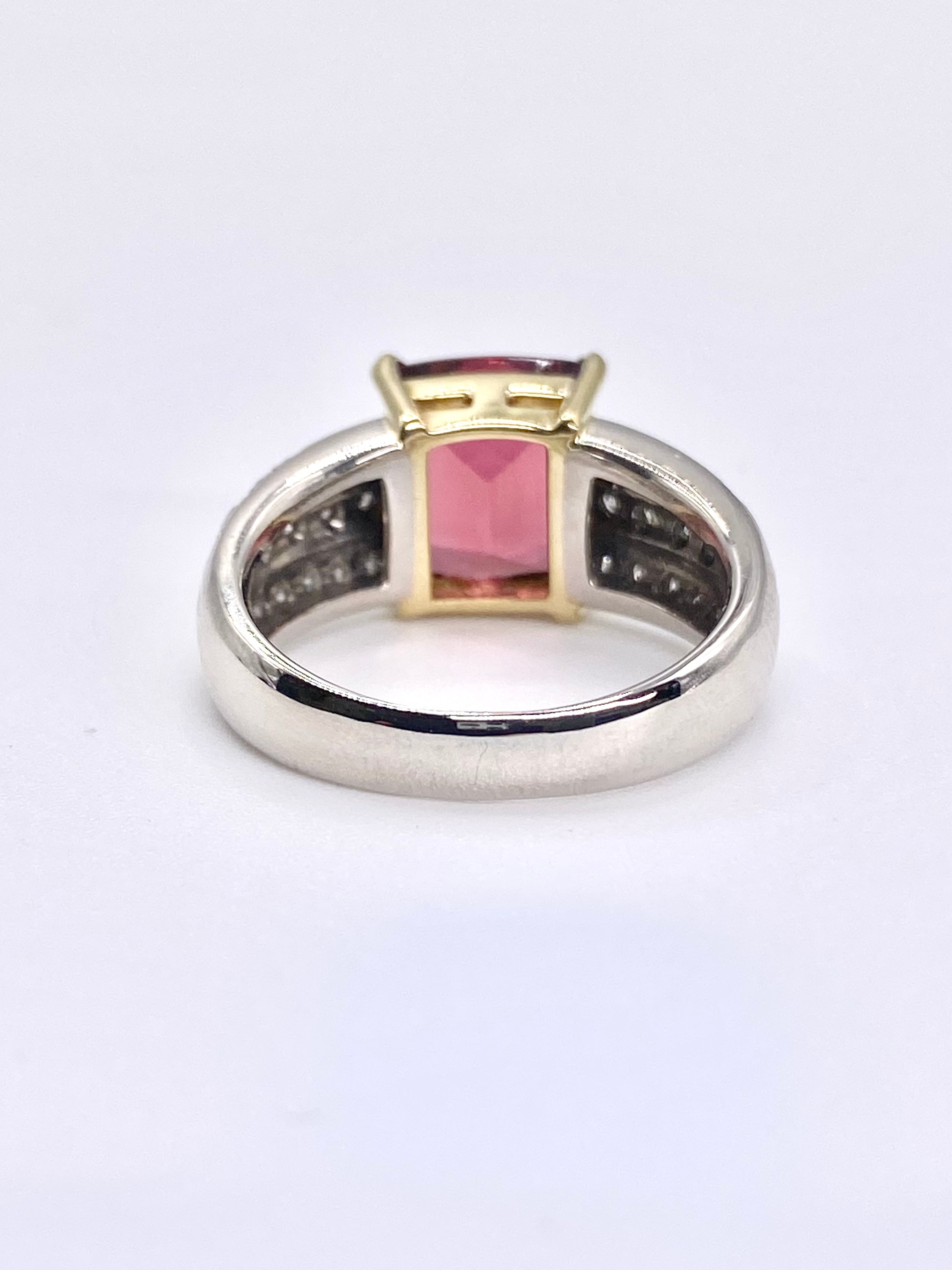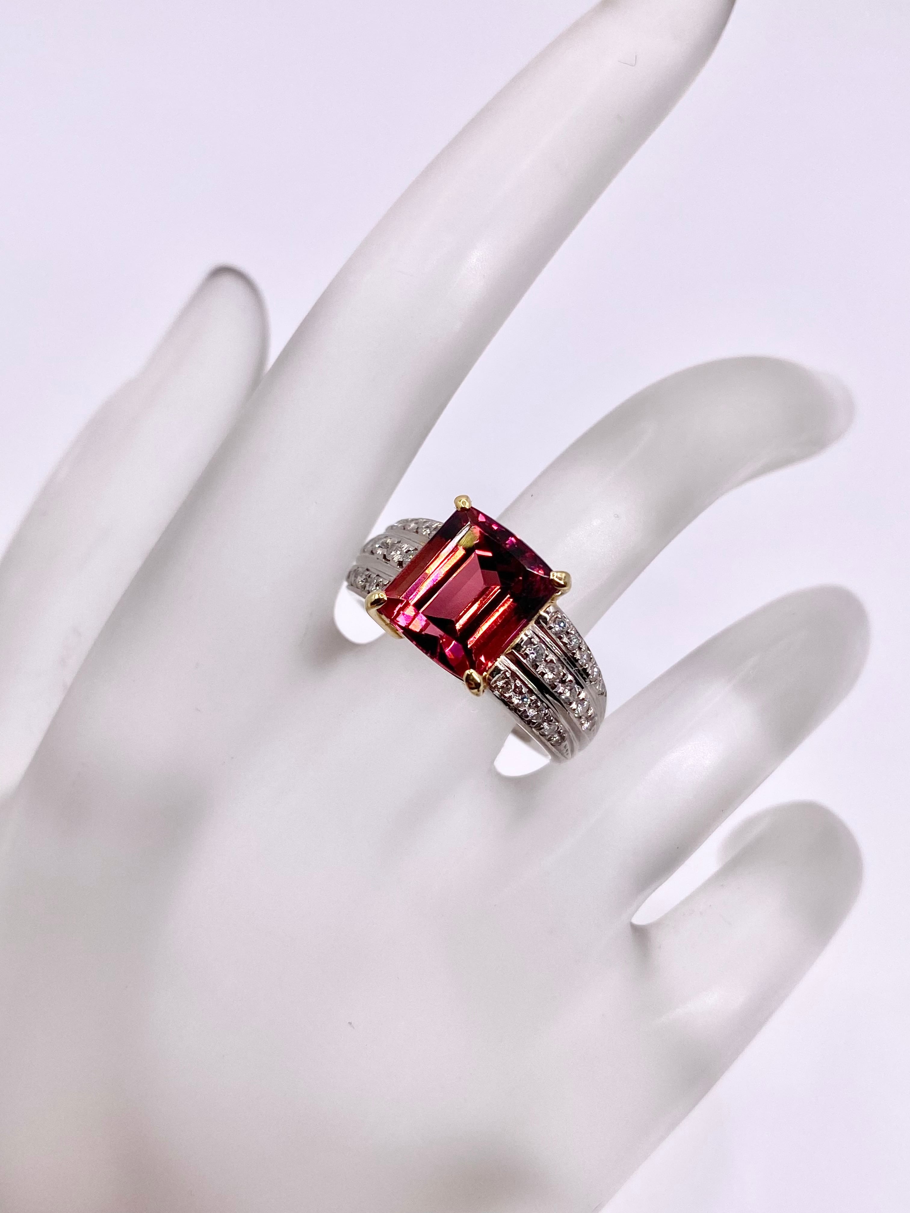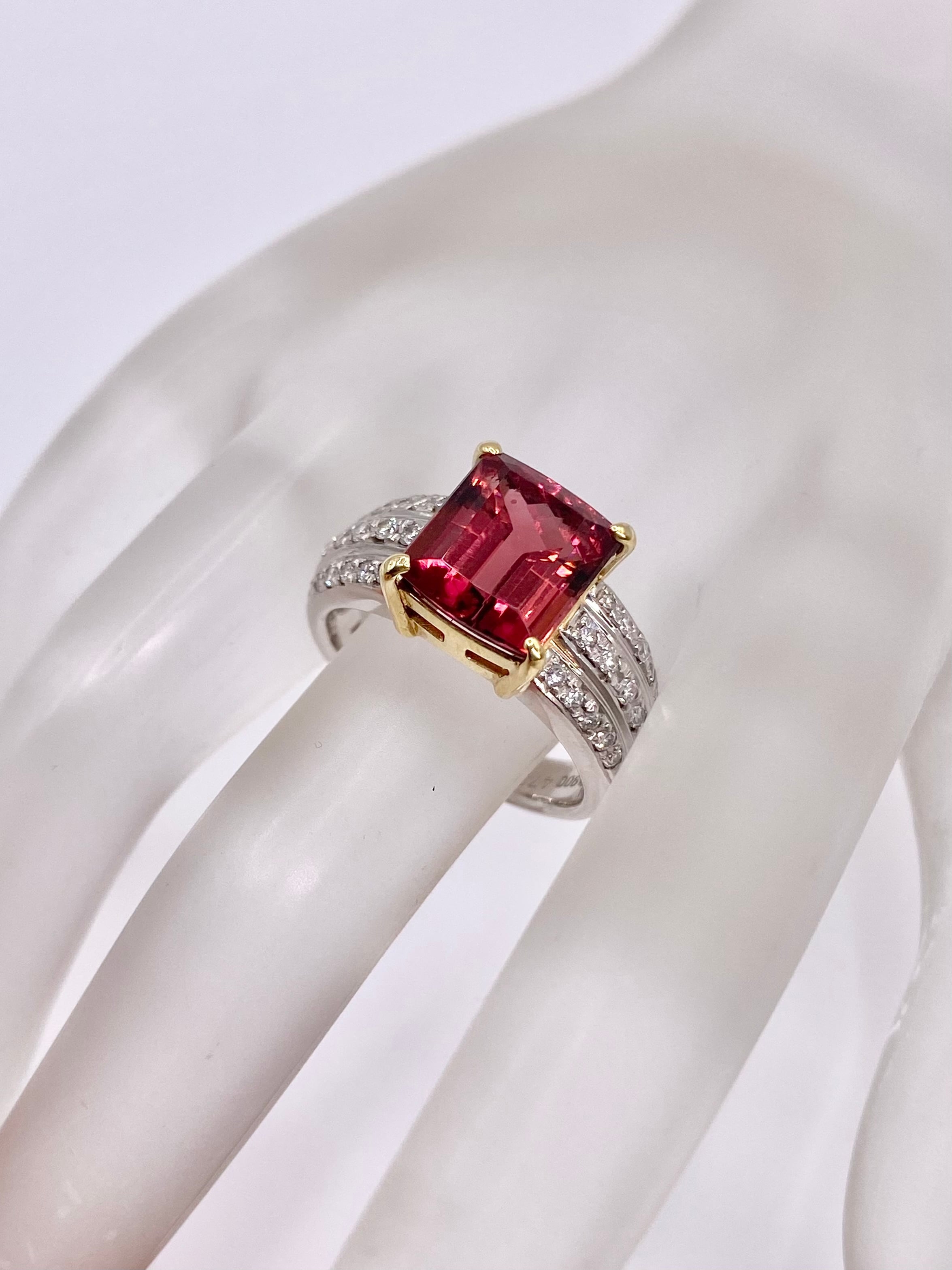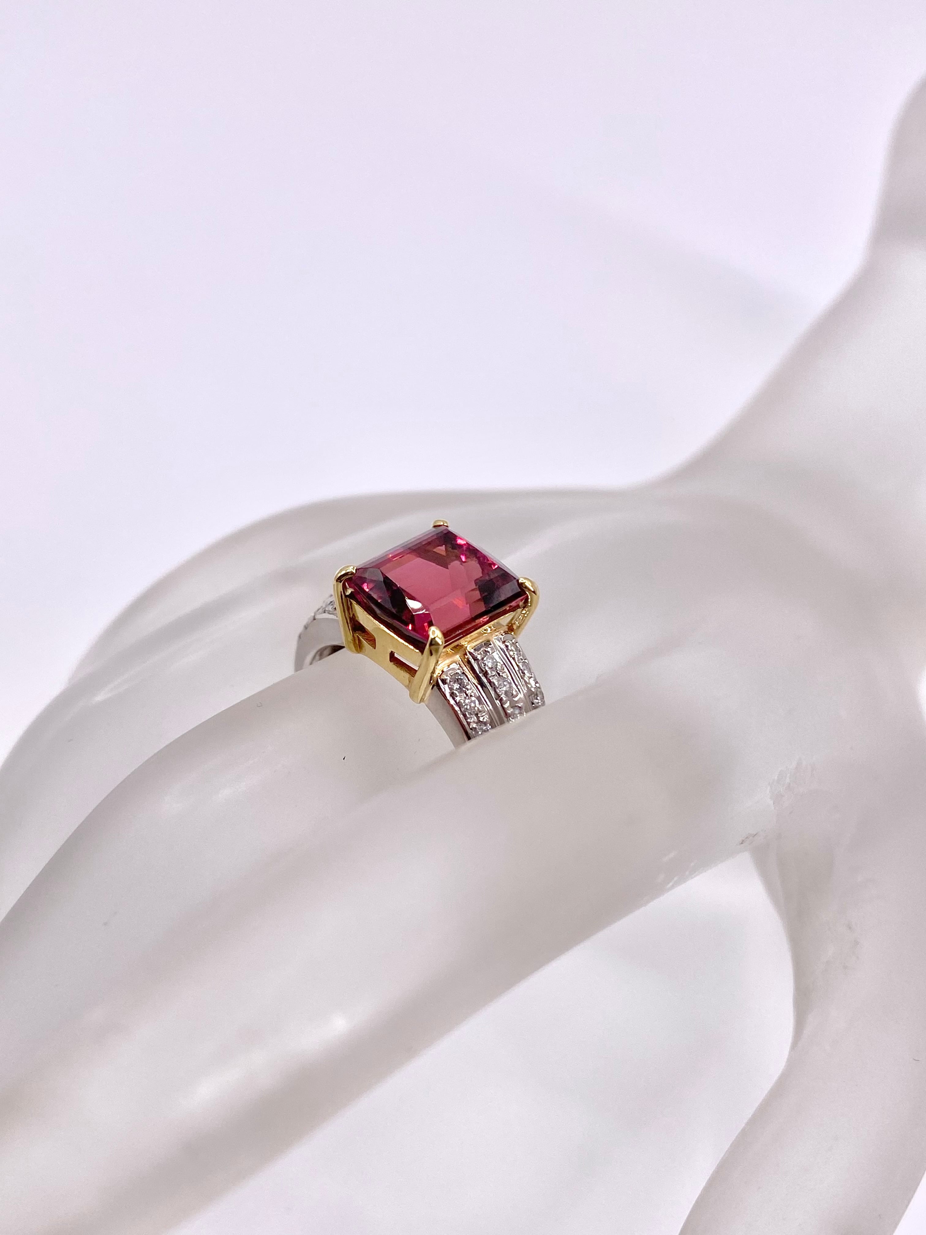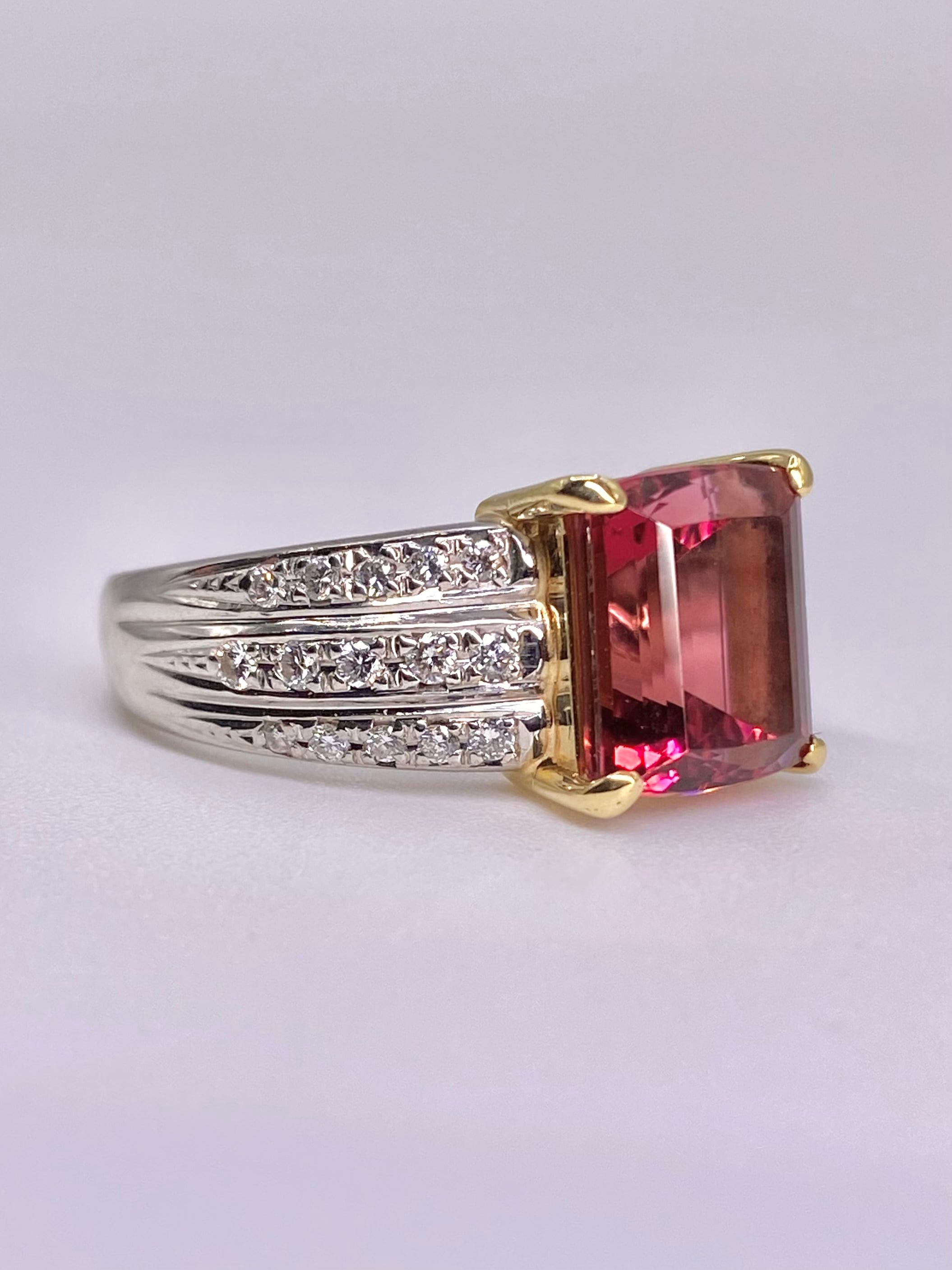 ピンクトルマリンとダイヤモンドのプラチナ900/18金リングのご紹介です。ピンクトルマリンの枠が18金となっております。