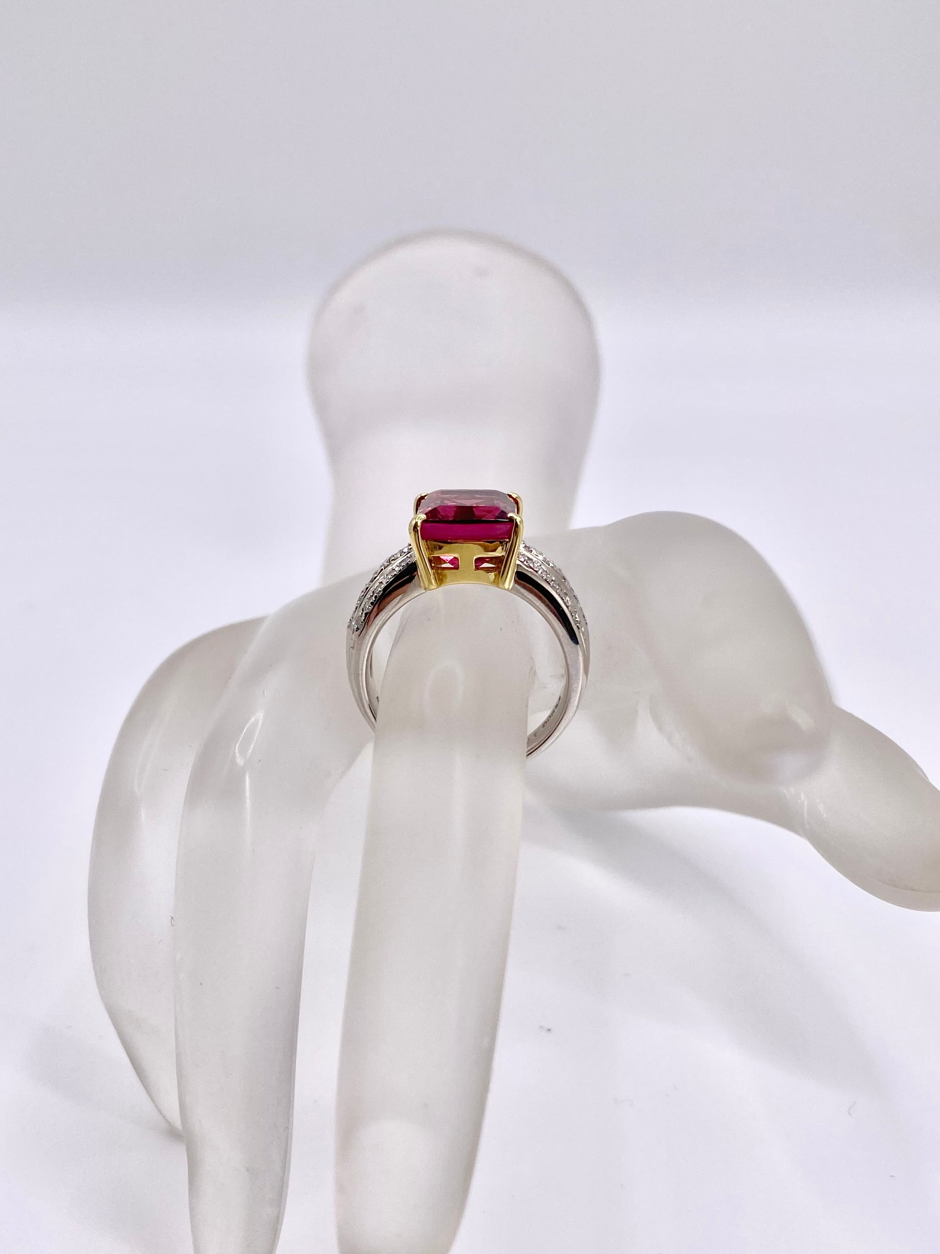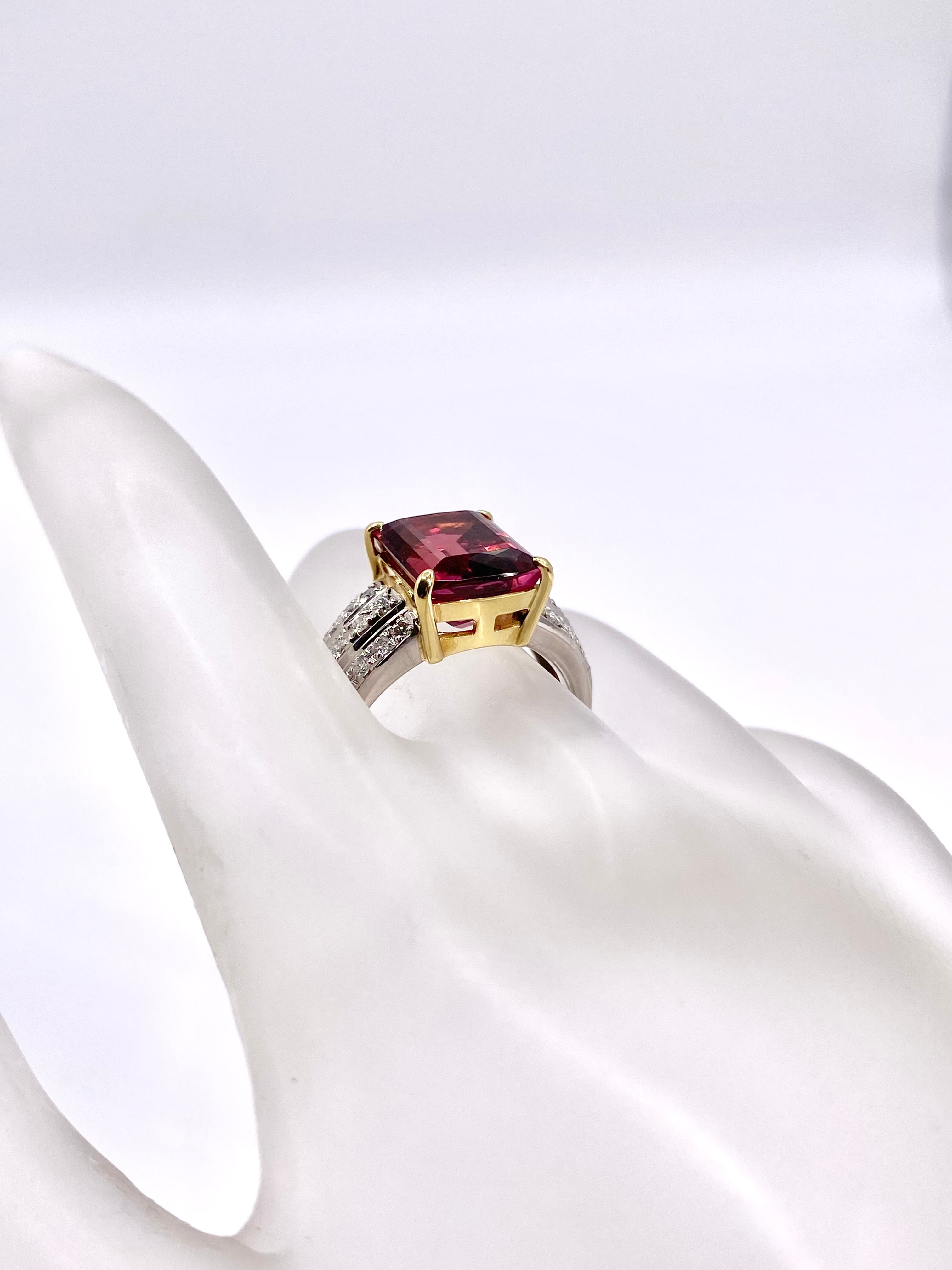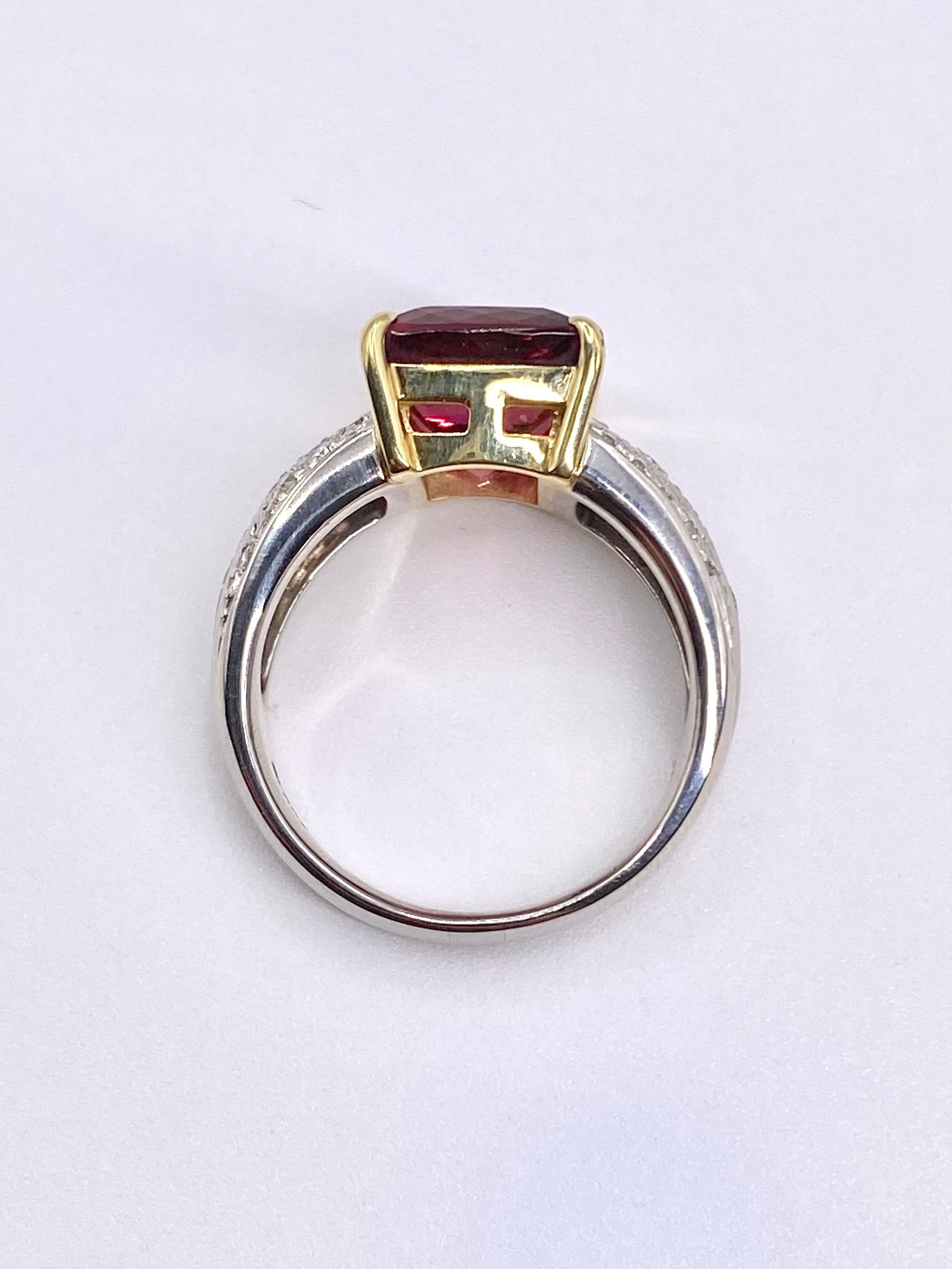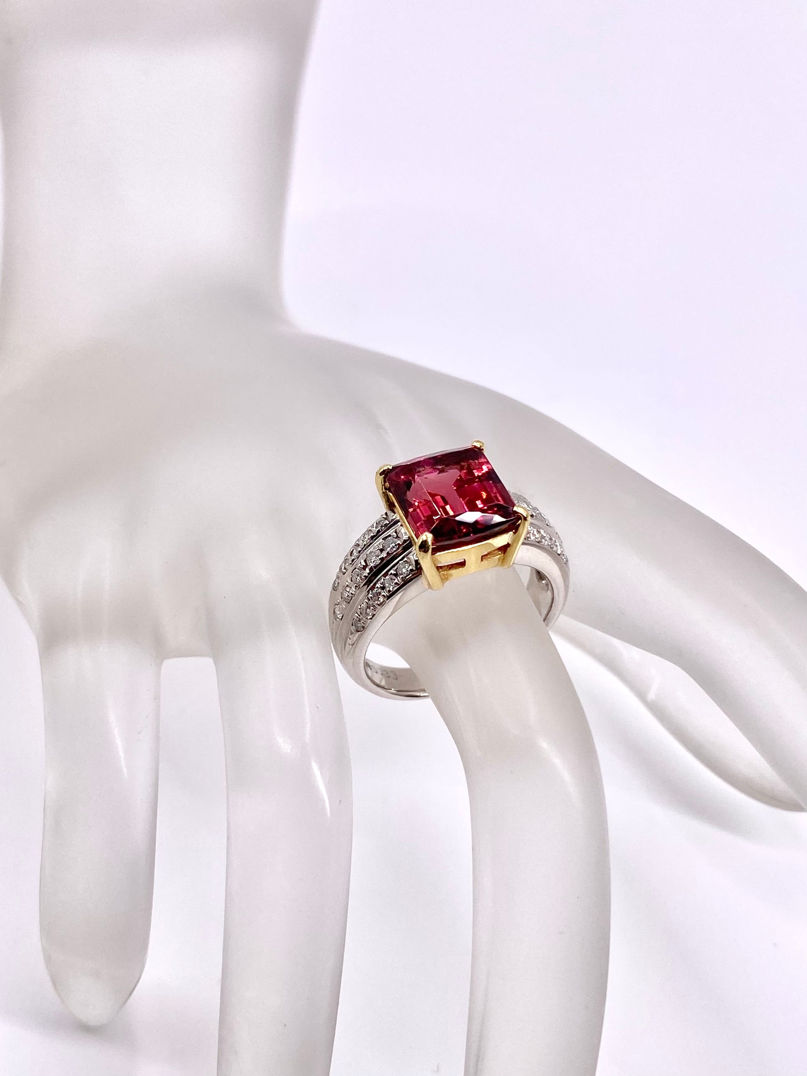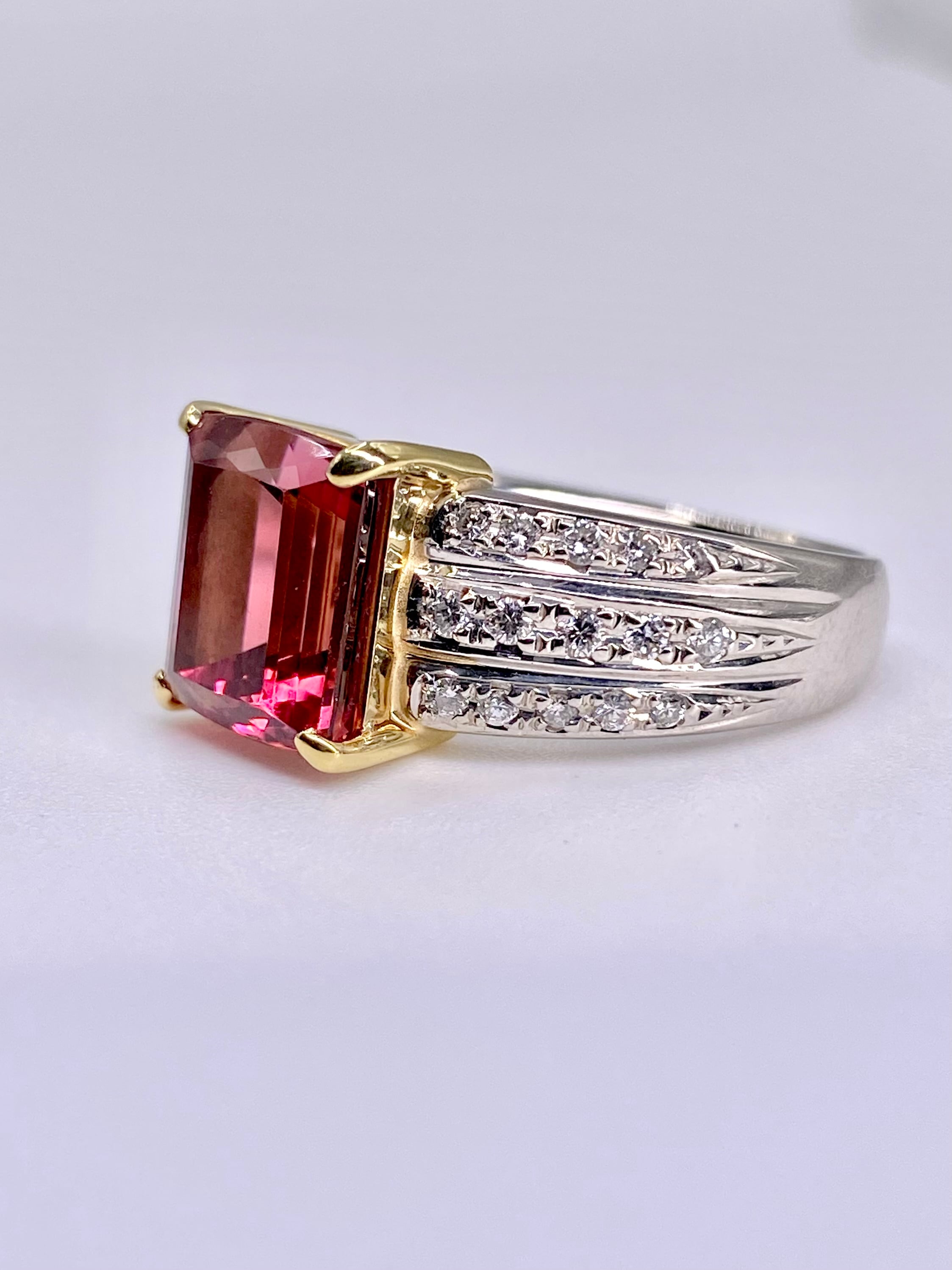 ピンクトルマリンとダイヤモンドのプラチナ900/18金リングのご紹介です。ピンクトルマリンの枠が18金となっております。