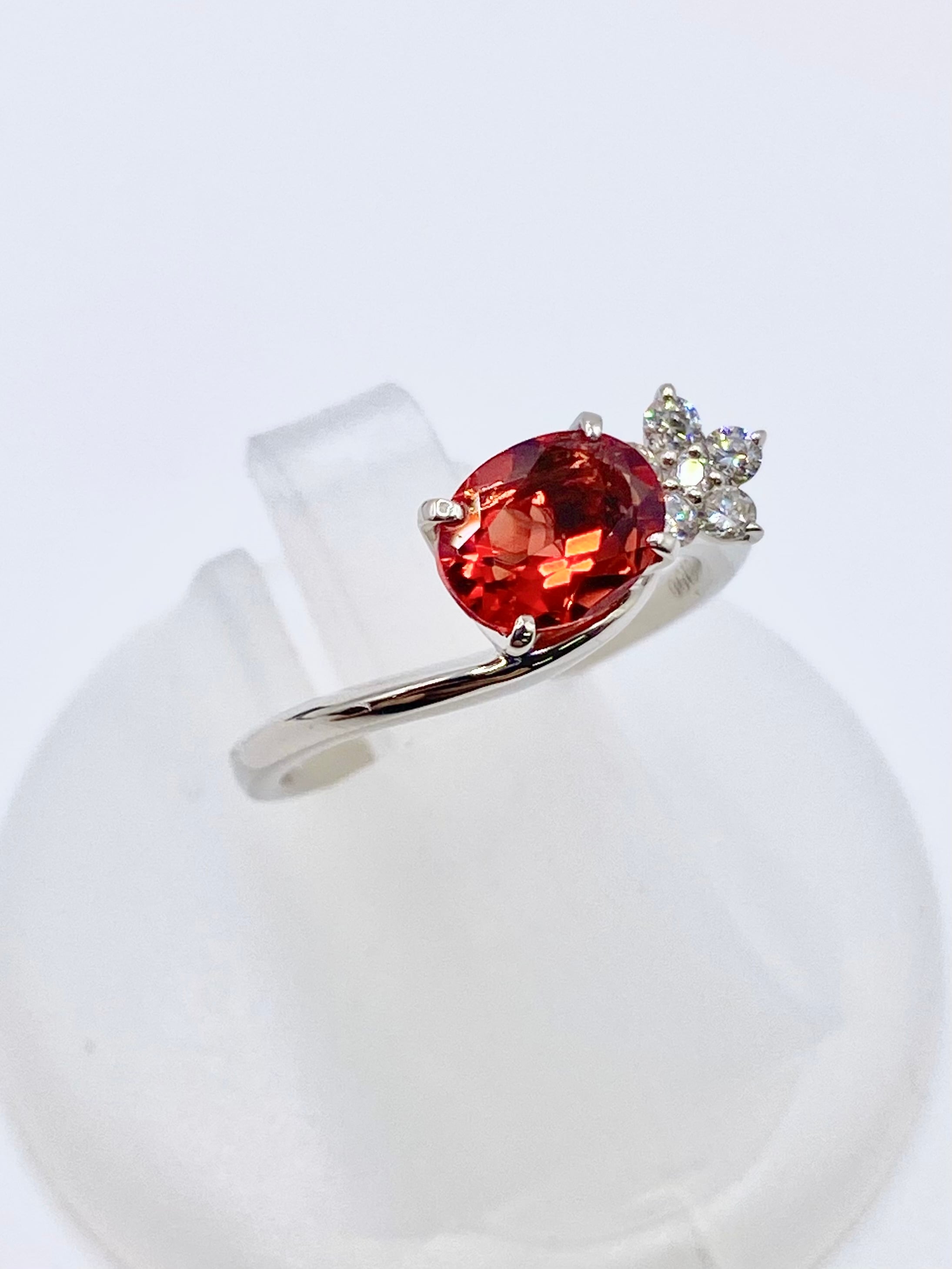 少しオレンジがかった強いレッド・・・ブラッドオレンジを思わせる輝きが全面から放たれており、アンデシンの中でも特に鮮やかに感じられるものと思います。