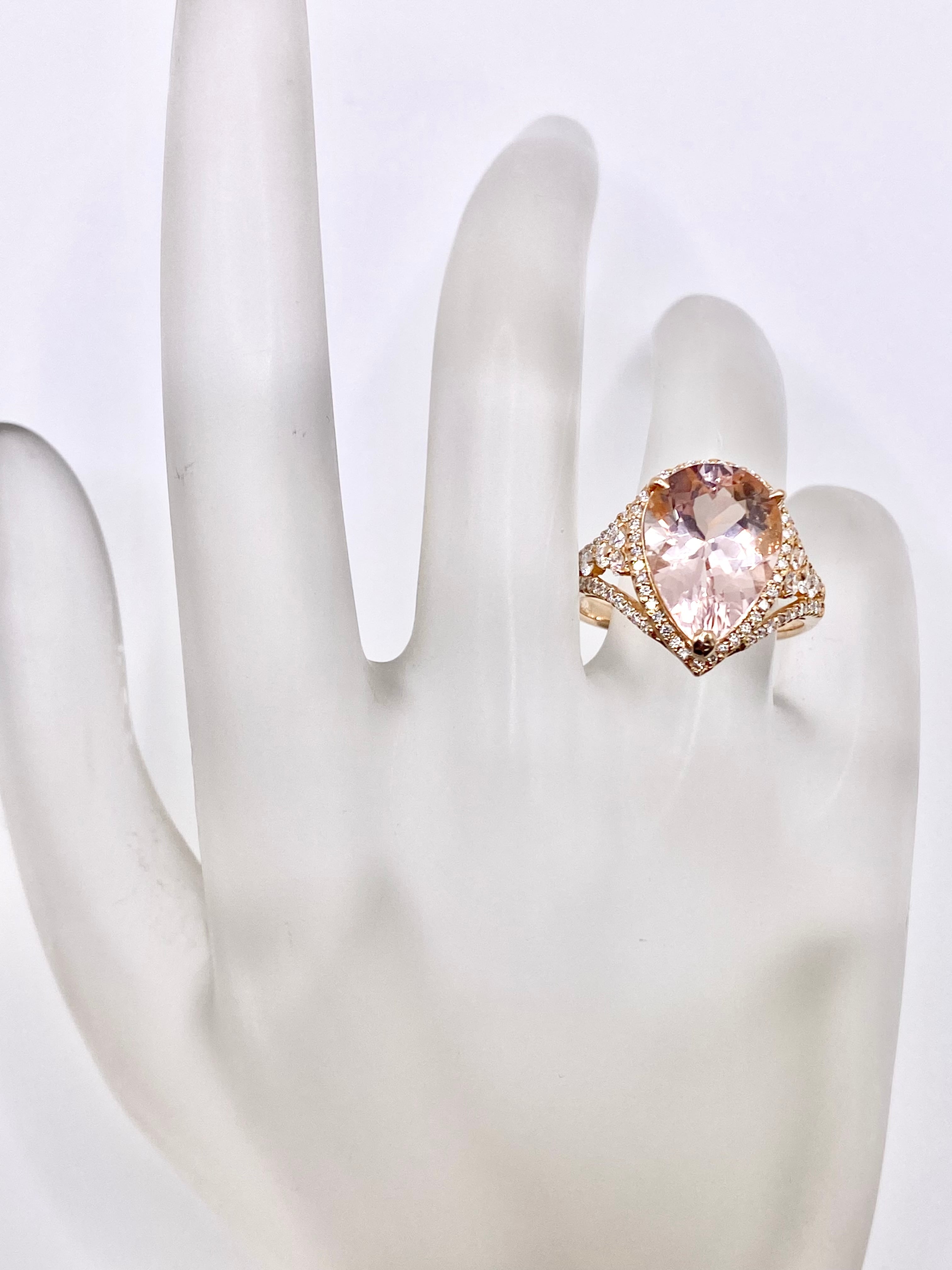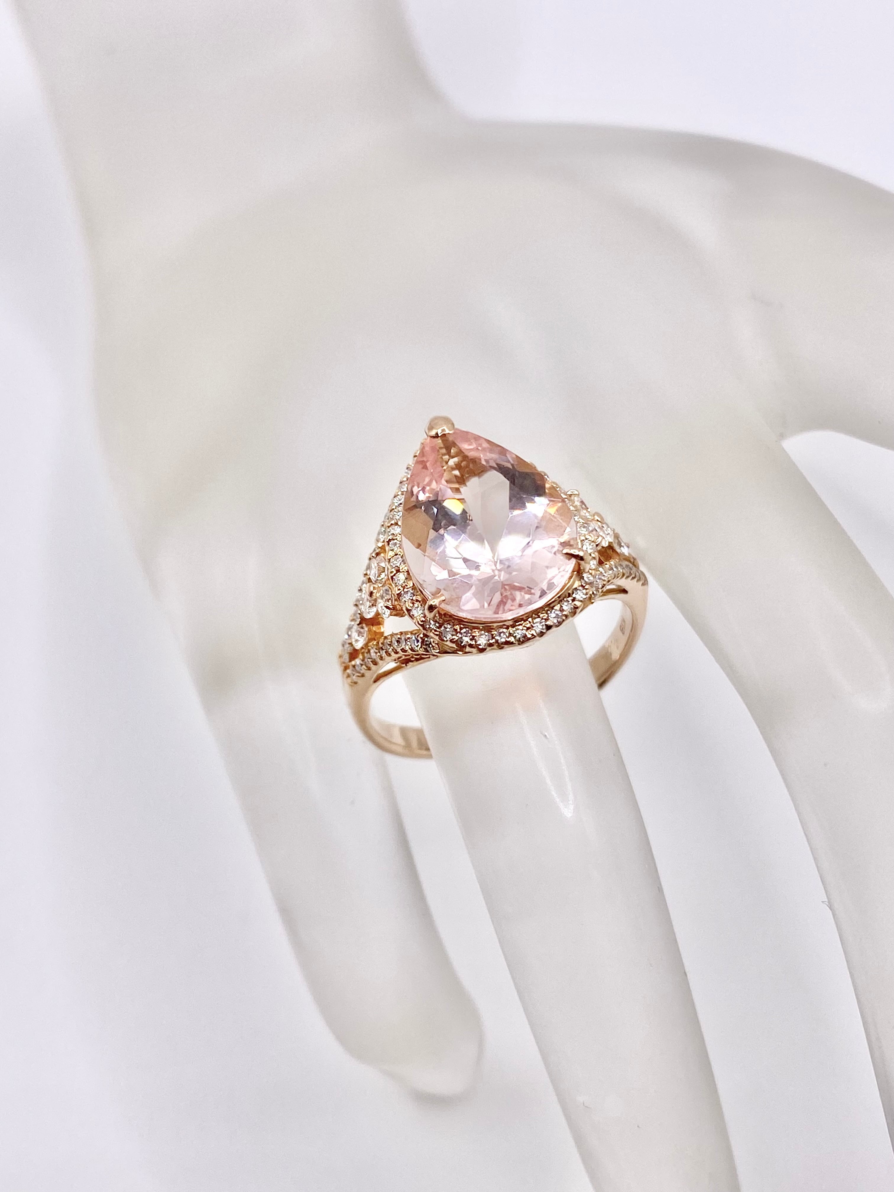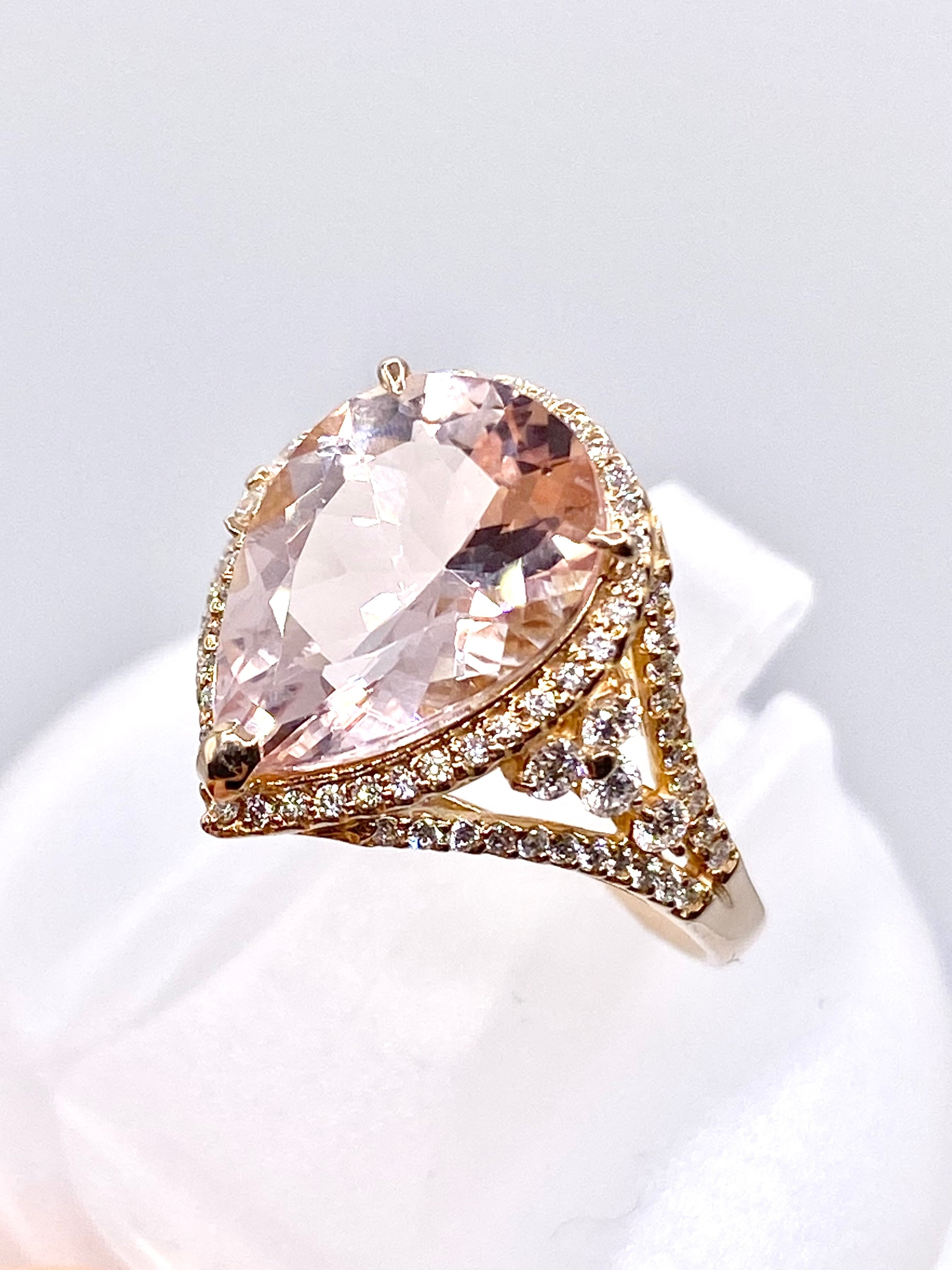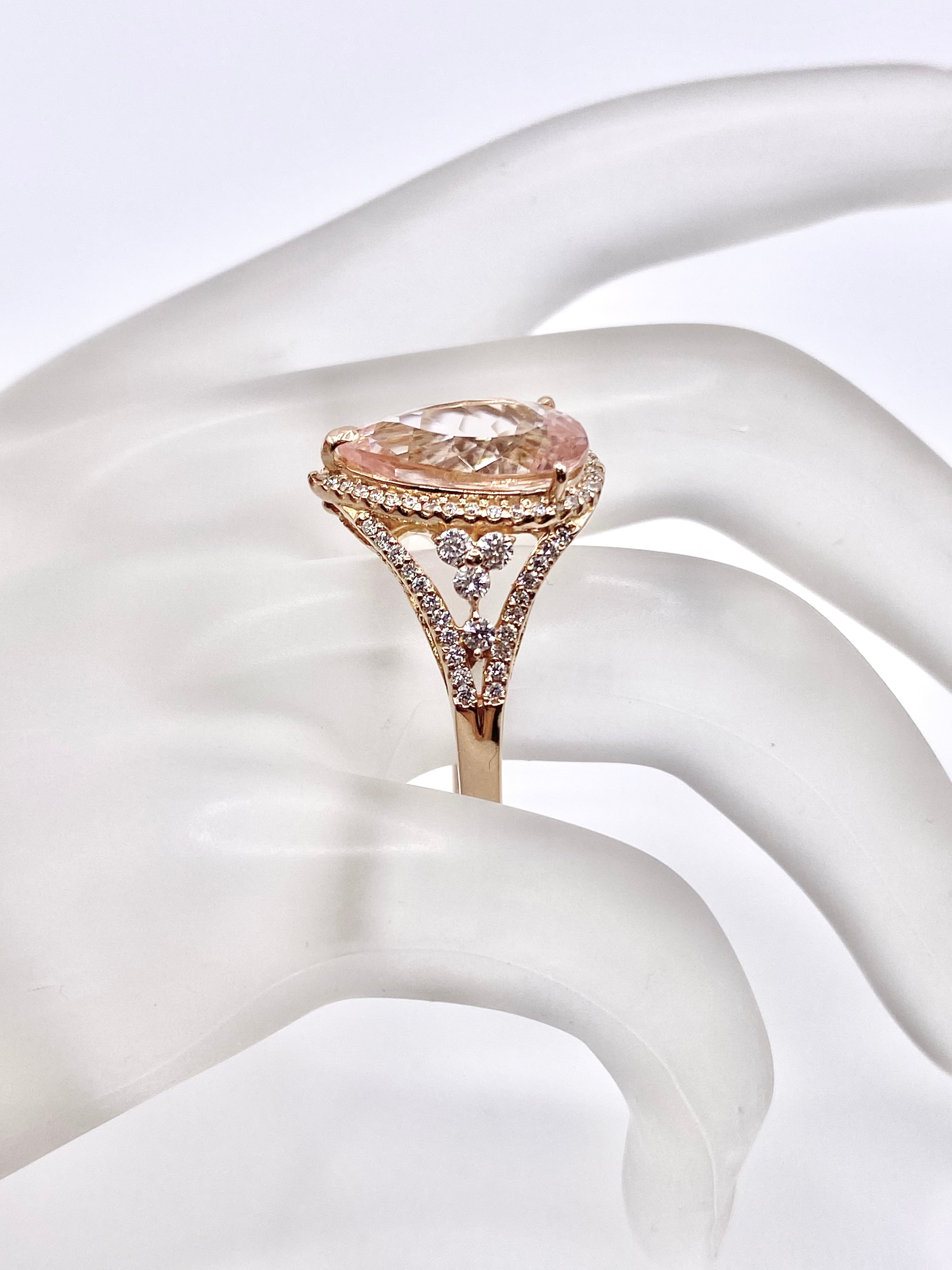 こちらのモルガナイトの色は、桜のような淡いピンク。ペアシェイプの両端部はやや濃いめですが、全体的にはほんのりとした色合いと言えるでしょう。
