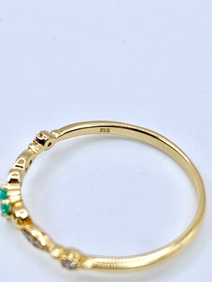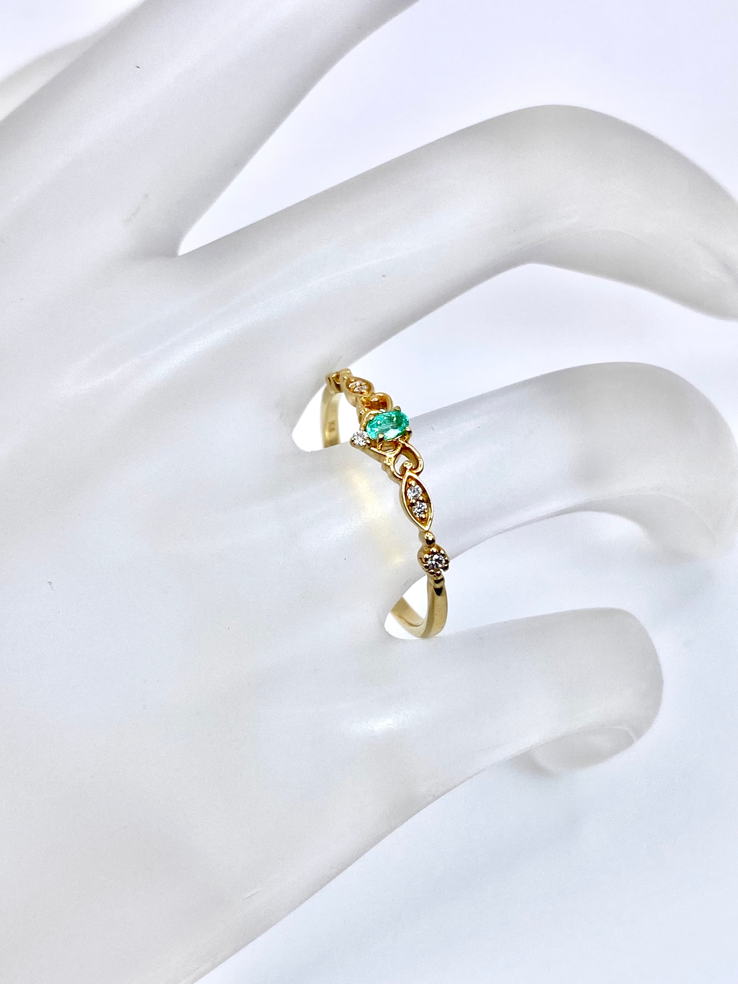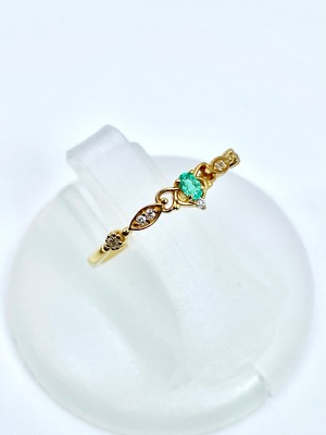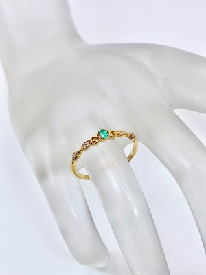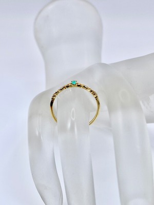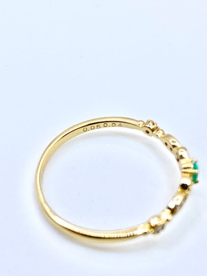 小さめながらもひとめでパライバトルマリンと分かる一石でしょう。イエローゴールドのリングとの組み合わせが意外と少ない上、リング自体が細身な事もあり、サイズの数値上の印象よりもずっと目を惹くことと思います。