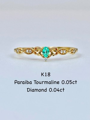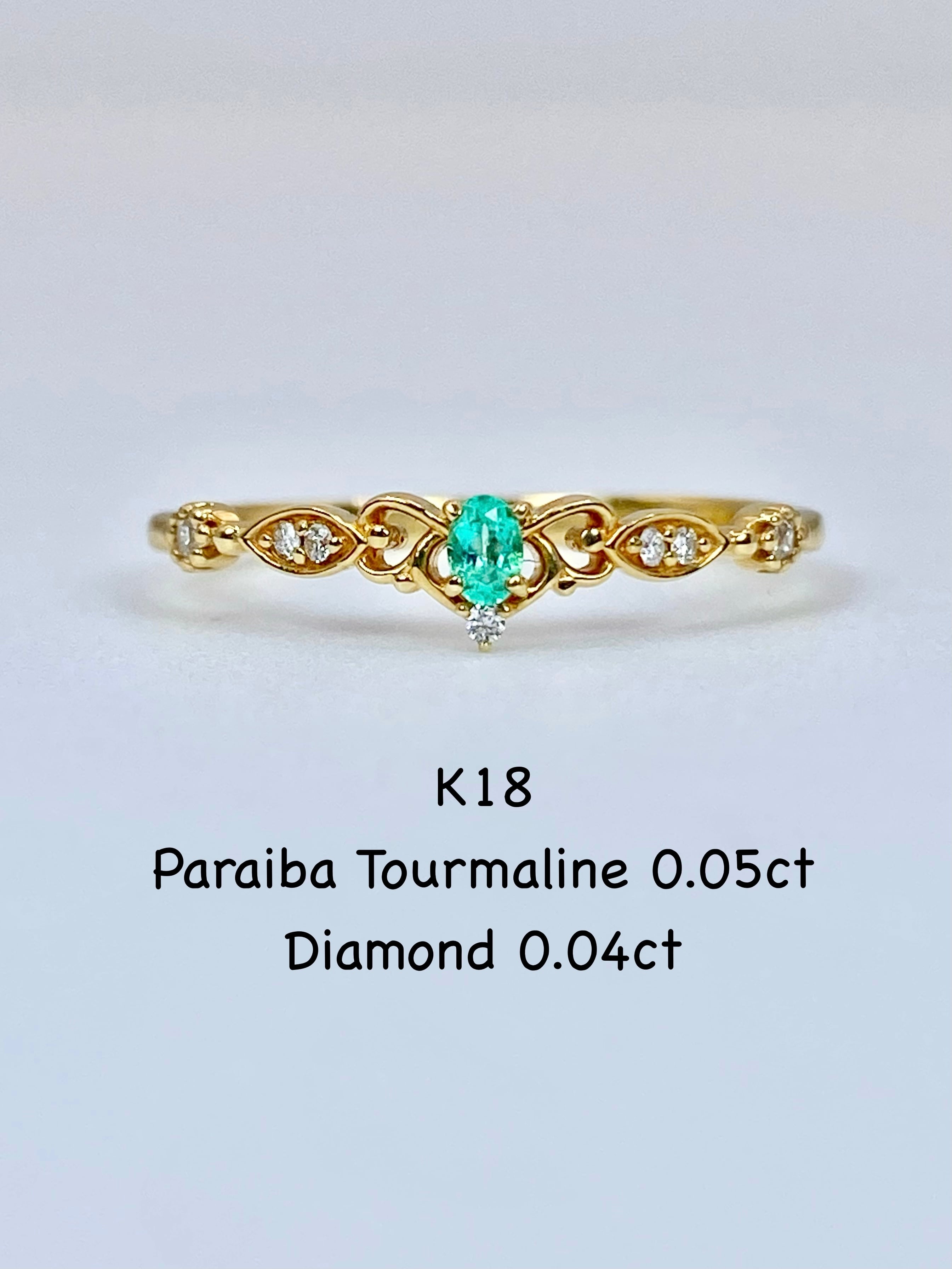 パライバトルマリンとダイヤモンドの18金リングのご紹介です。