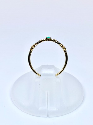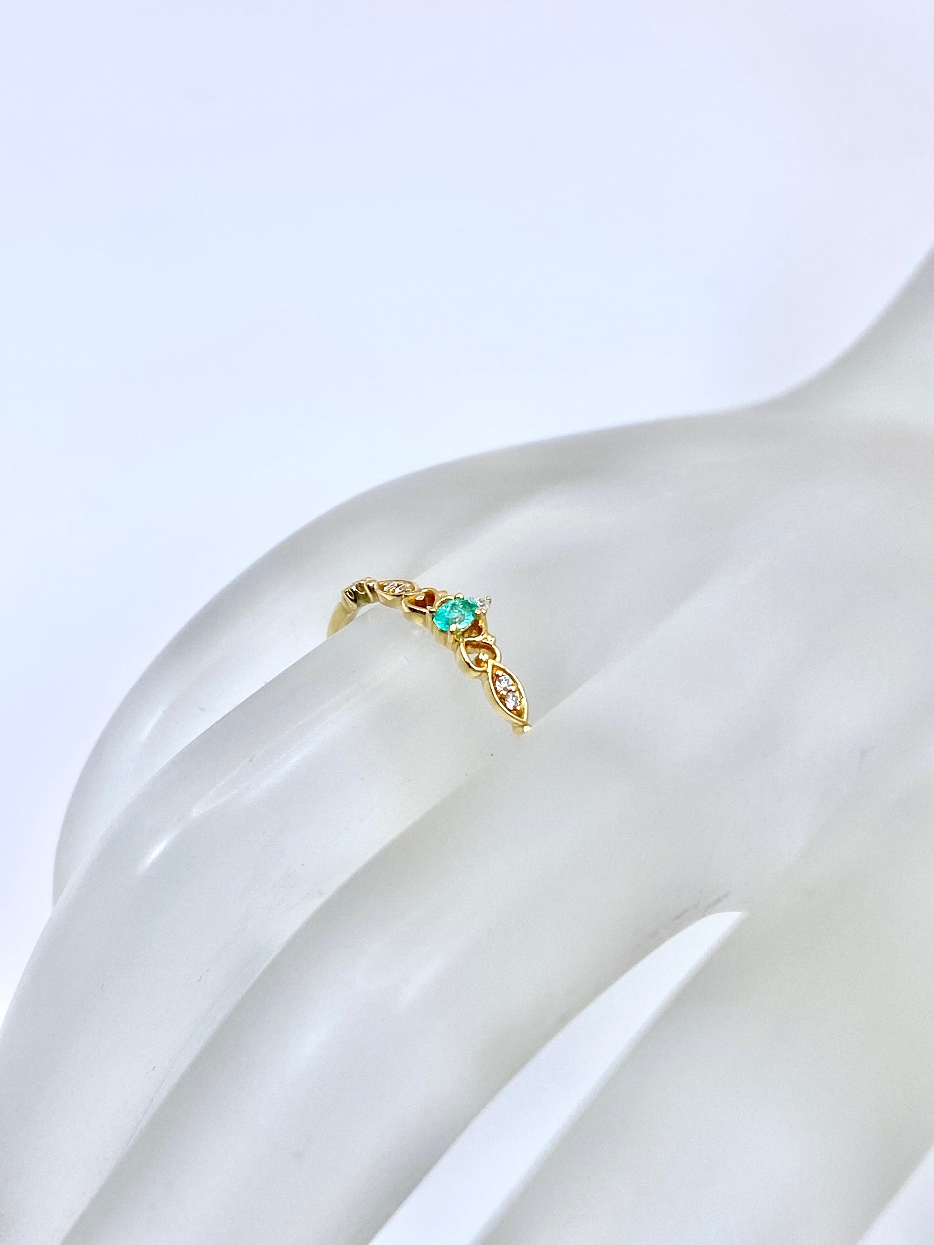 パライバトルマリンは0.05ctと小ぶり。ですが、浅瀬のようなとてもすっきりとした青緑色と、自ら発光しているかのような明るく深い輝きが特徴的なピース。