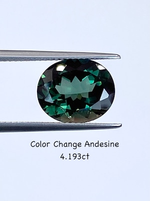 ライトをルースギリギリに近づけてカラーチェンジを観察しますと、カラーチェンジした箇所と透明度が高くキラキラと輝く深緑の部分が共存しあい、両方の色彩・輝きの違いのよさを同時に楽しめます。