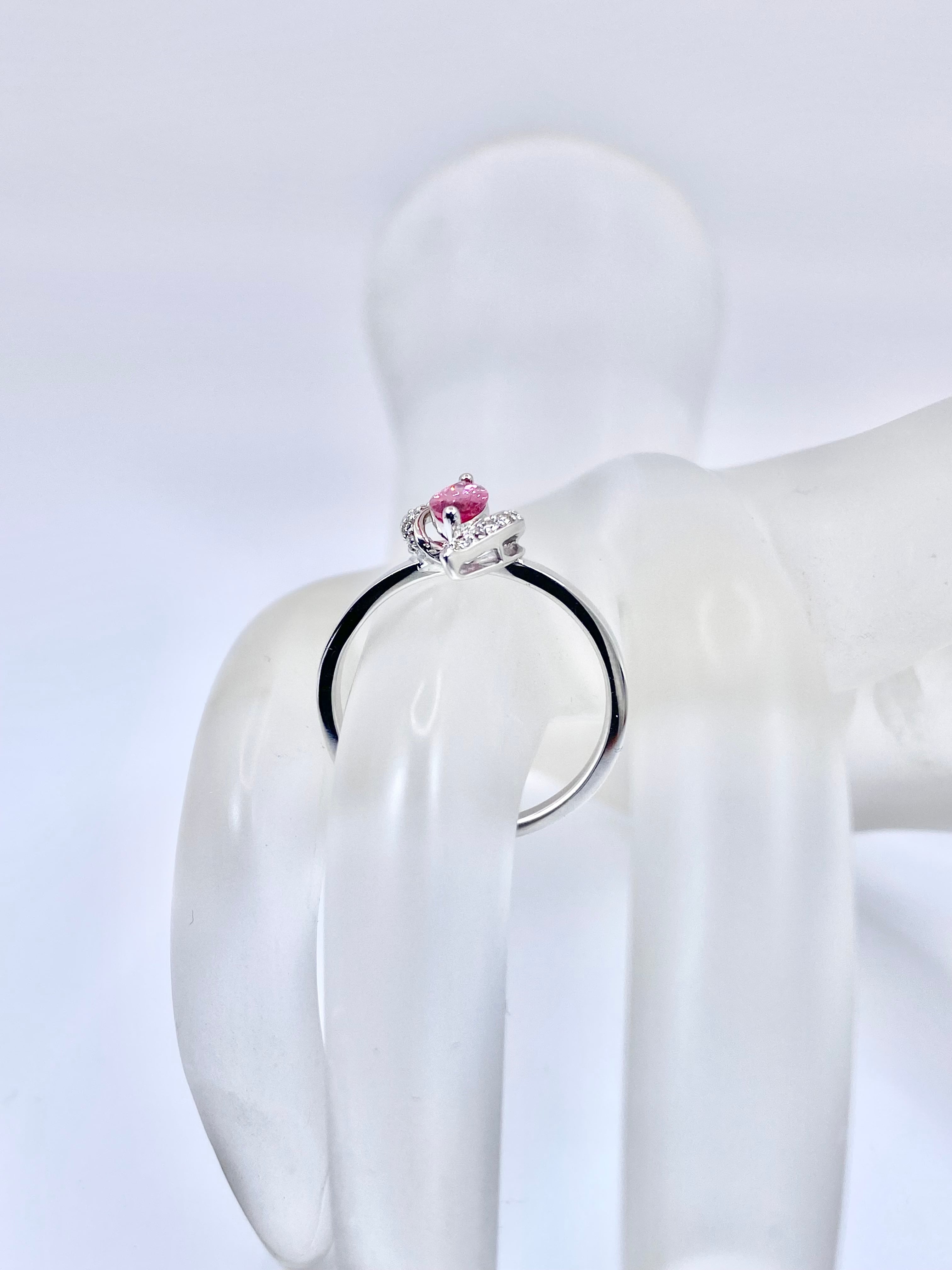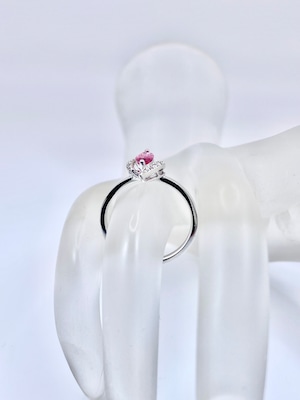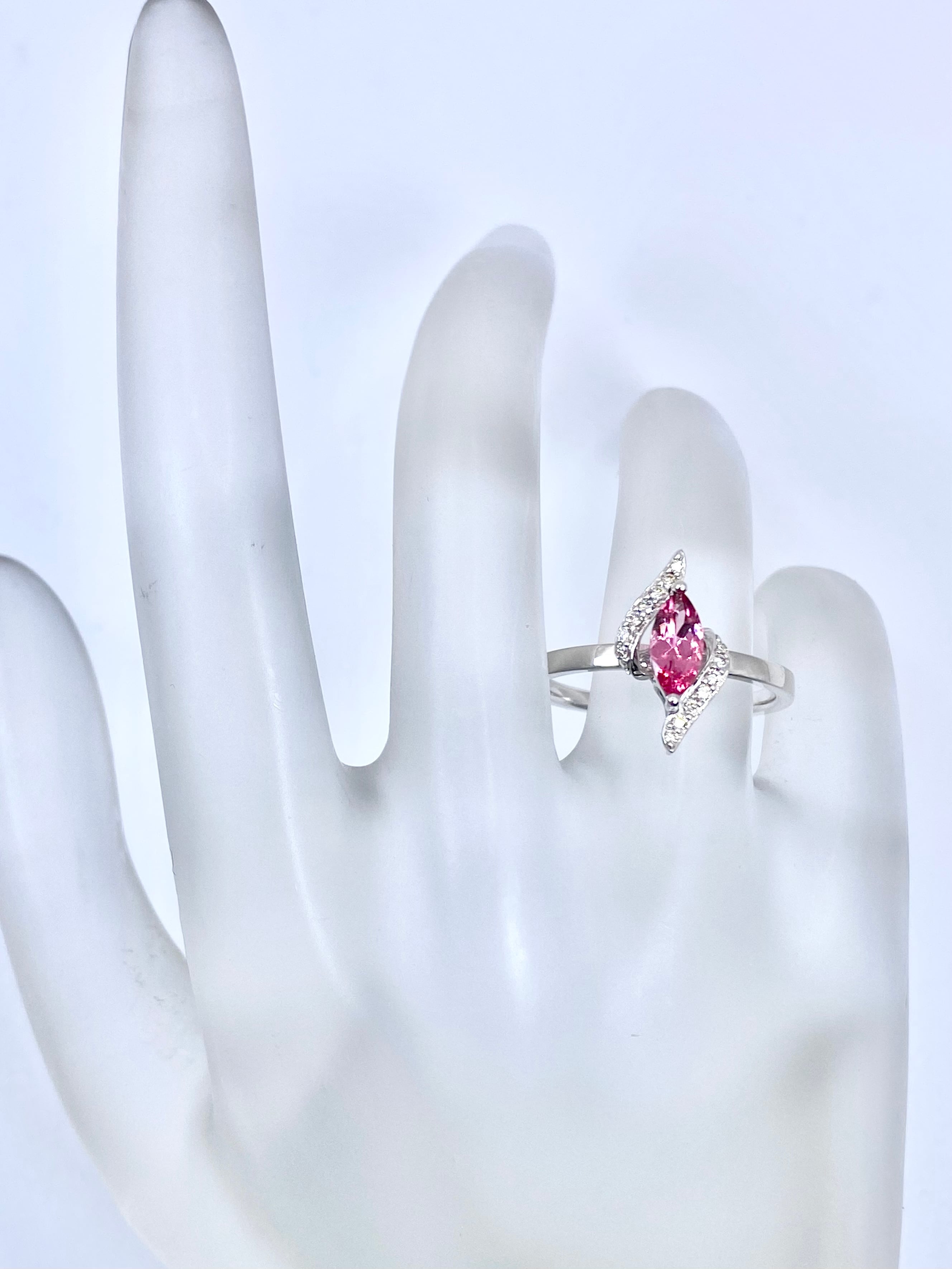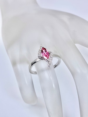 こちらのスピネルの色は、マーキースカットらしく両端の色が濃いめ。両端がピンクレッド、中央がピンクという配色になっています。