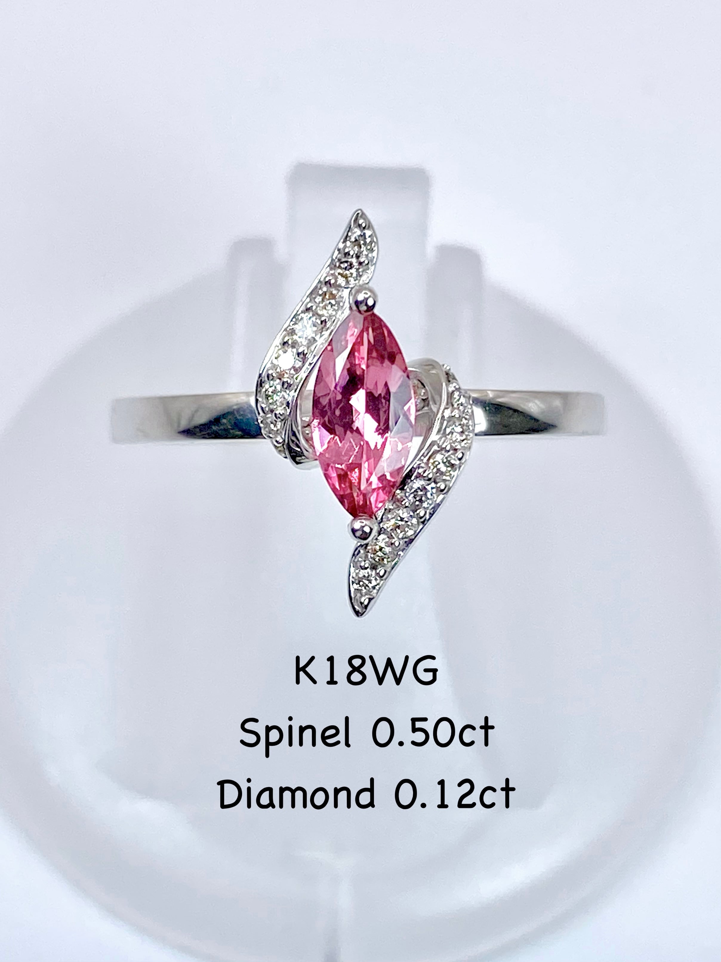 スピネル 0.50ct / ダイヤモンド 計0.12ct K18WG リング 15.5号【リフレッシュメント(新品仕上げ・補修・洗浄等済)】【3日以内返品可(※カード/キャリア決済の場合)】
