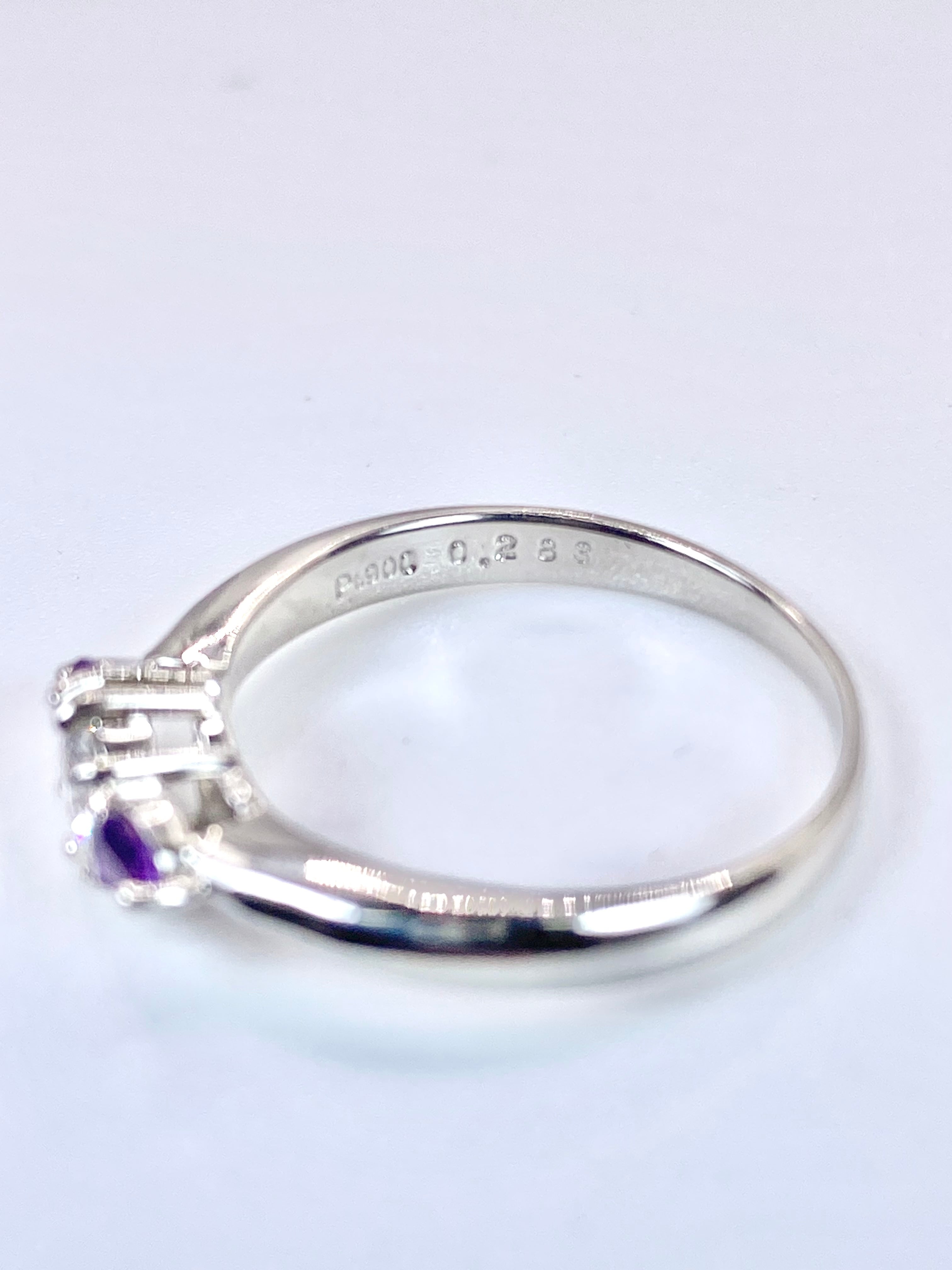 ダイヤモンドとアメシストのプラチナ900リングです。