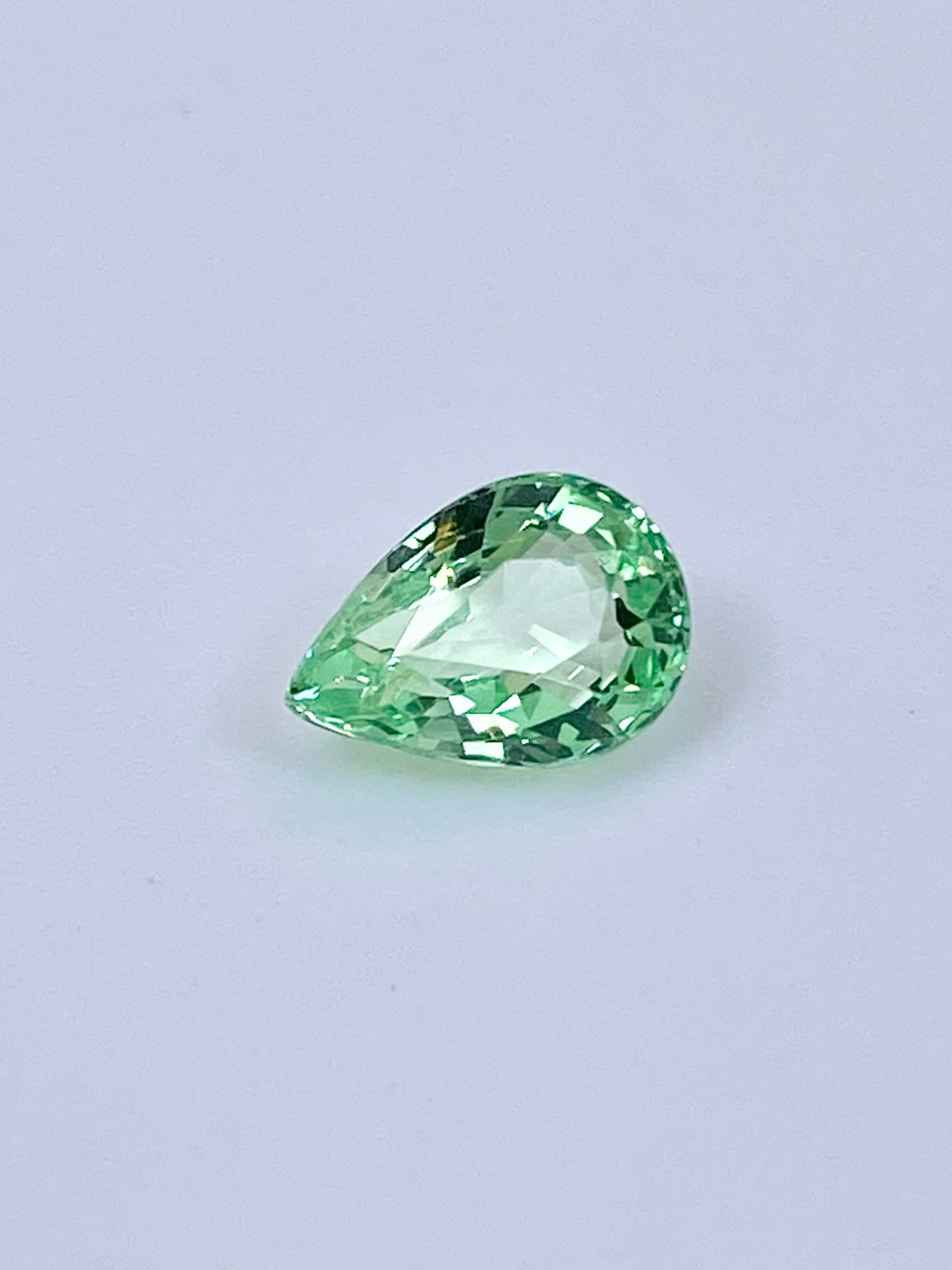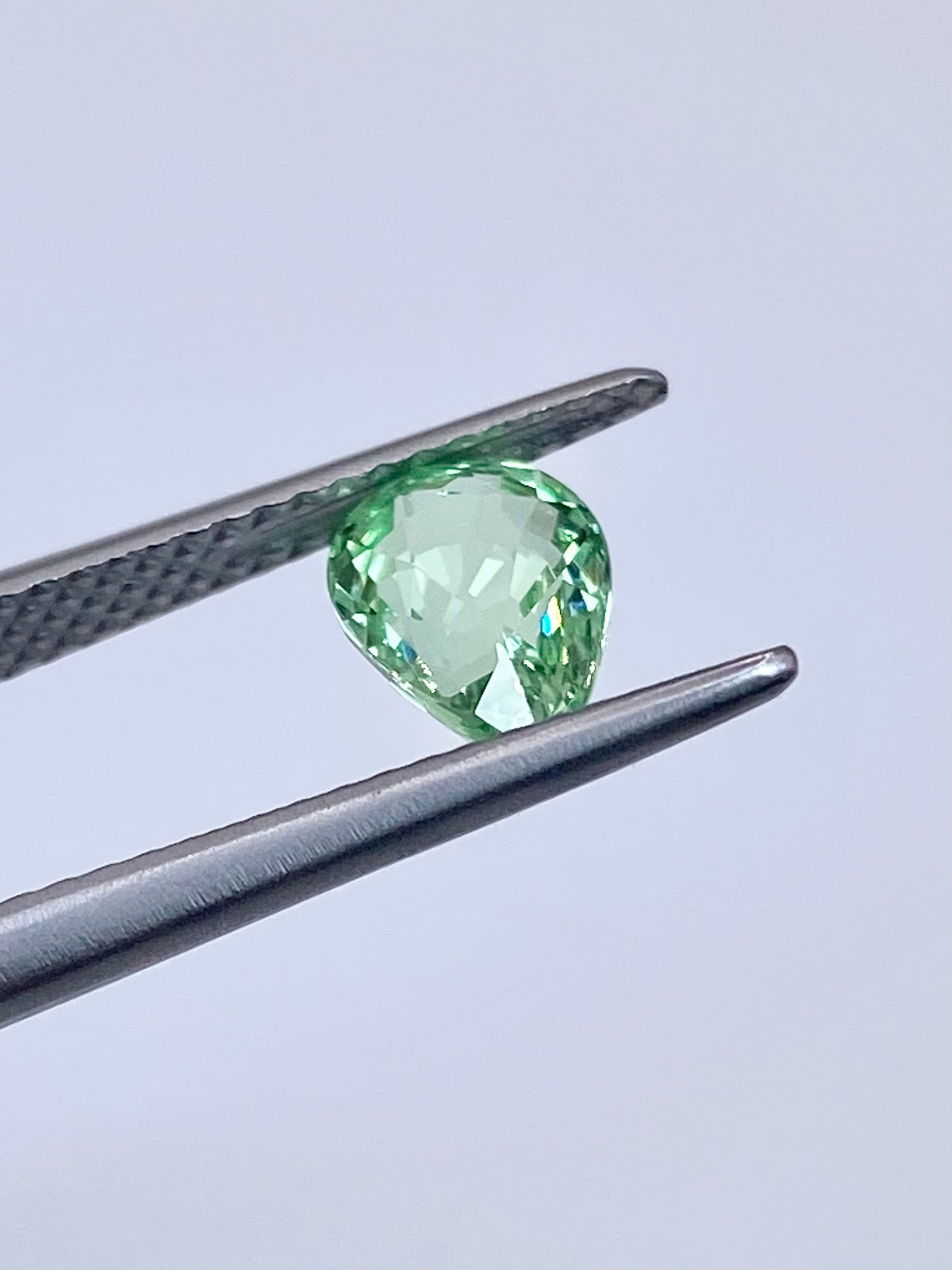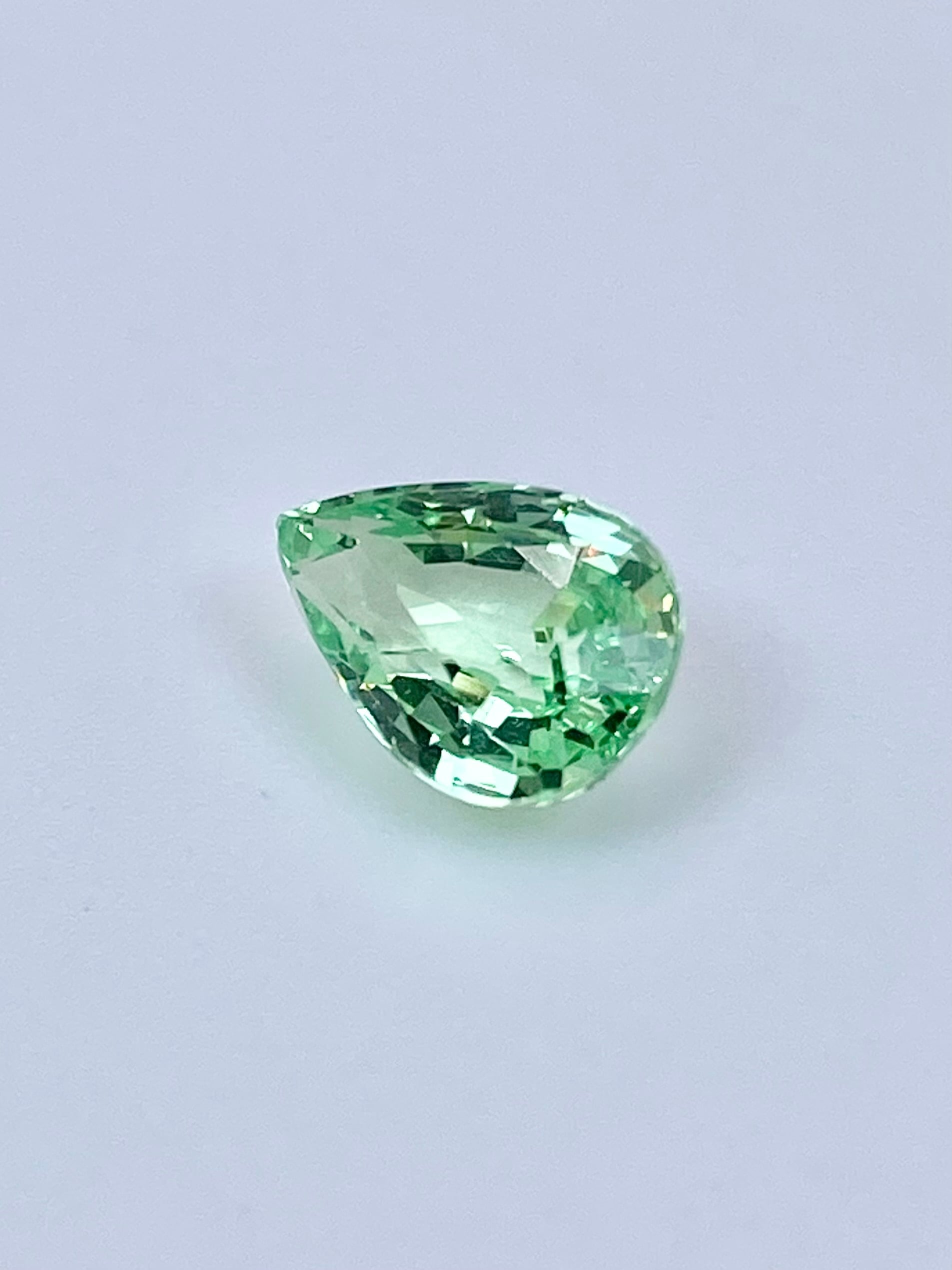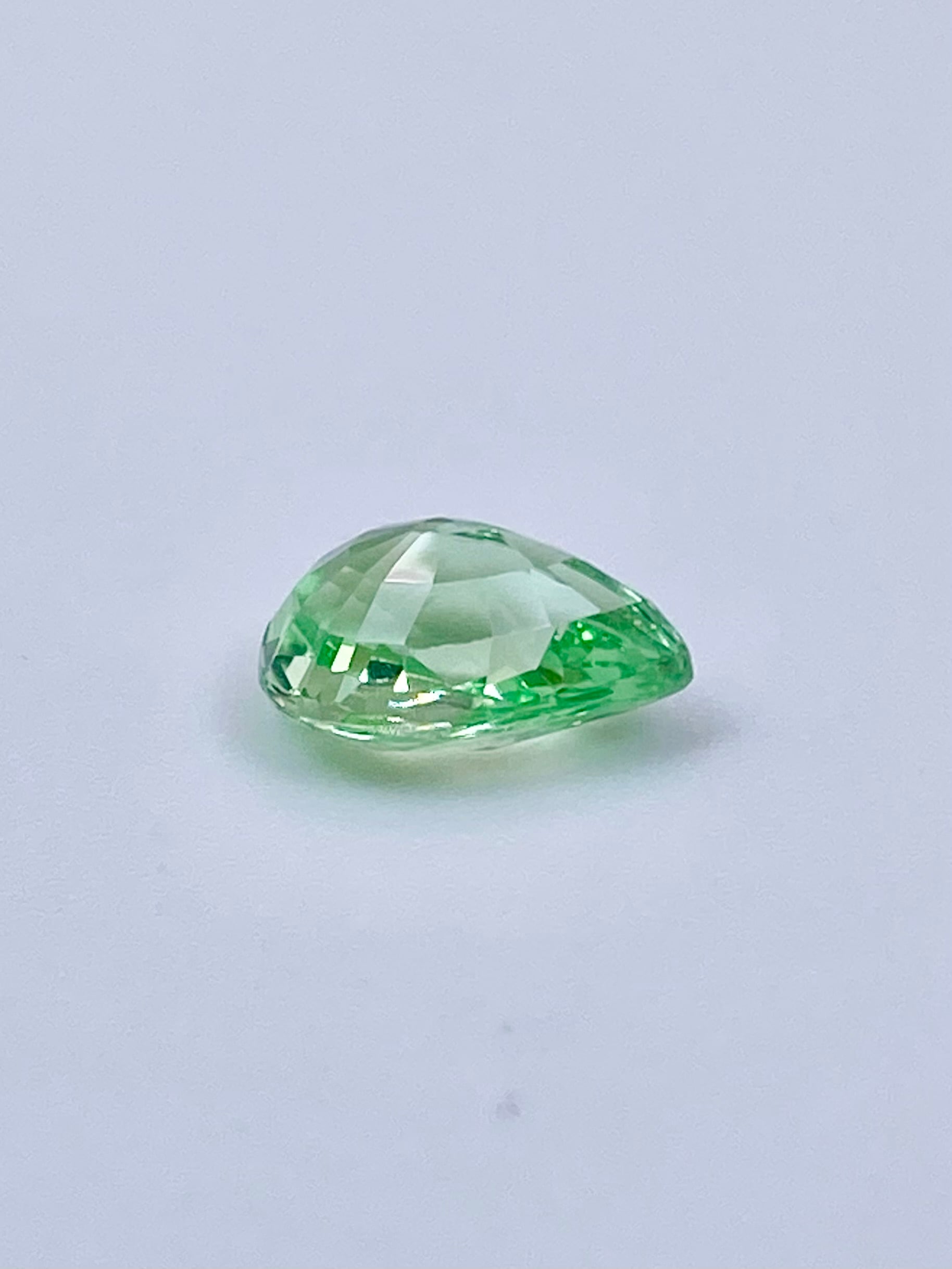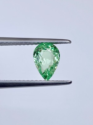 全体として:ペアシェイプということもあり少し中央に色の抜けがありますが、全体としてはミントガーネットの中でも特に爽やかな色と明るい輝きを楽しめる一石かと思います。