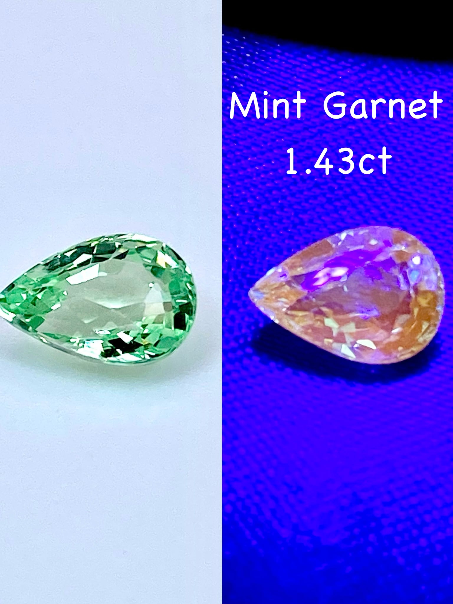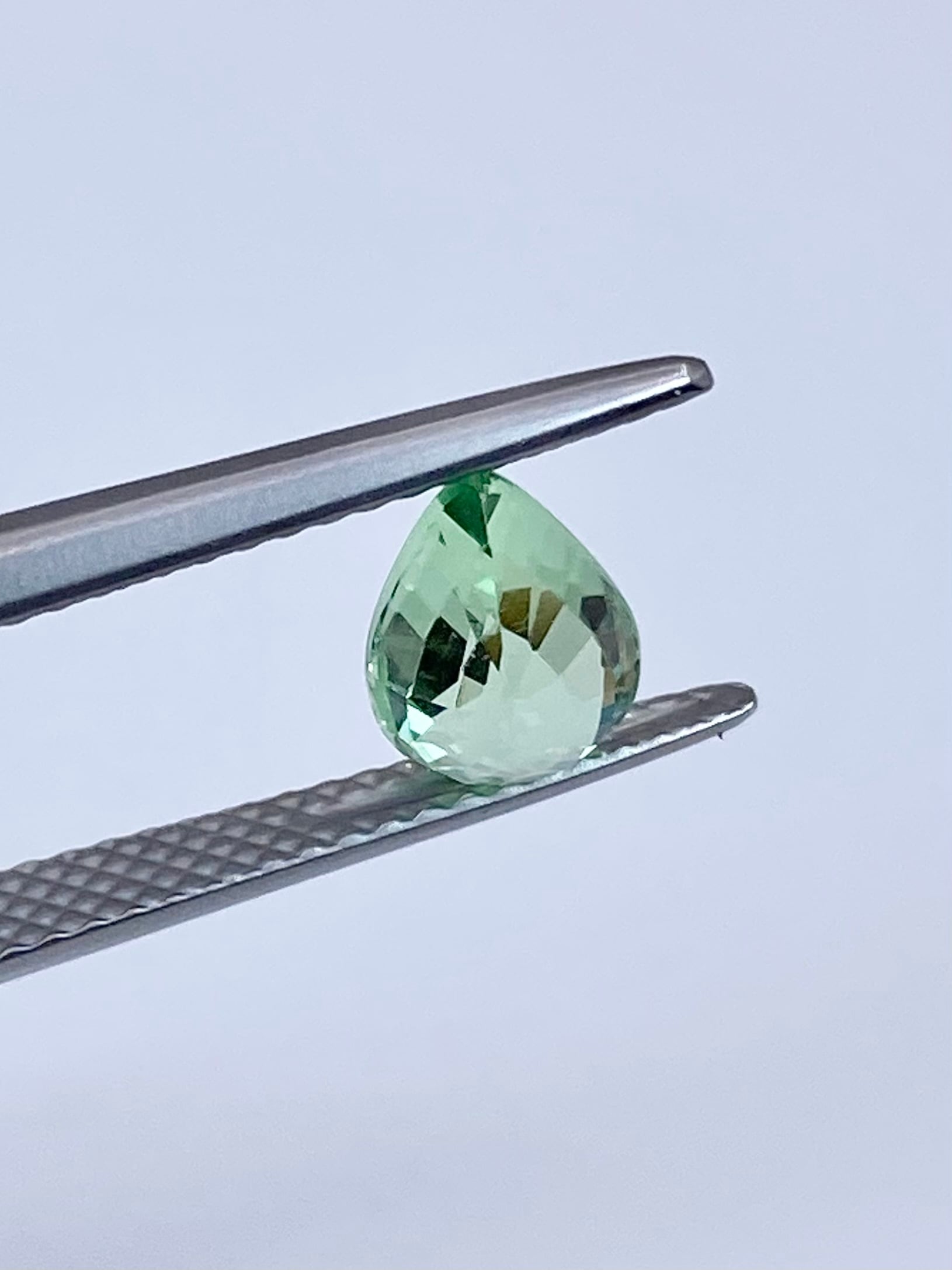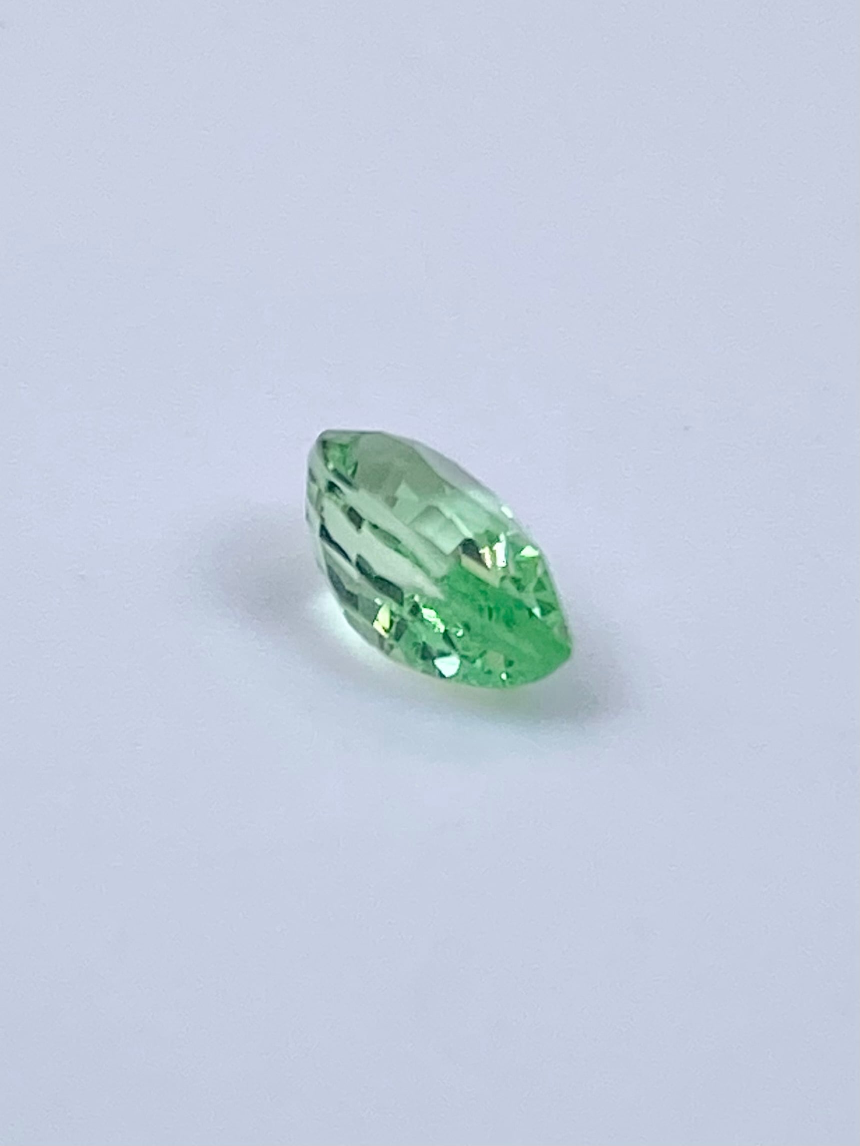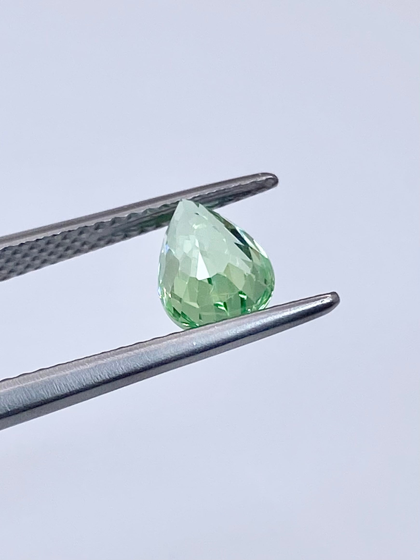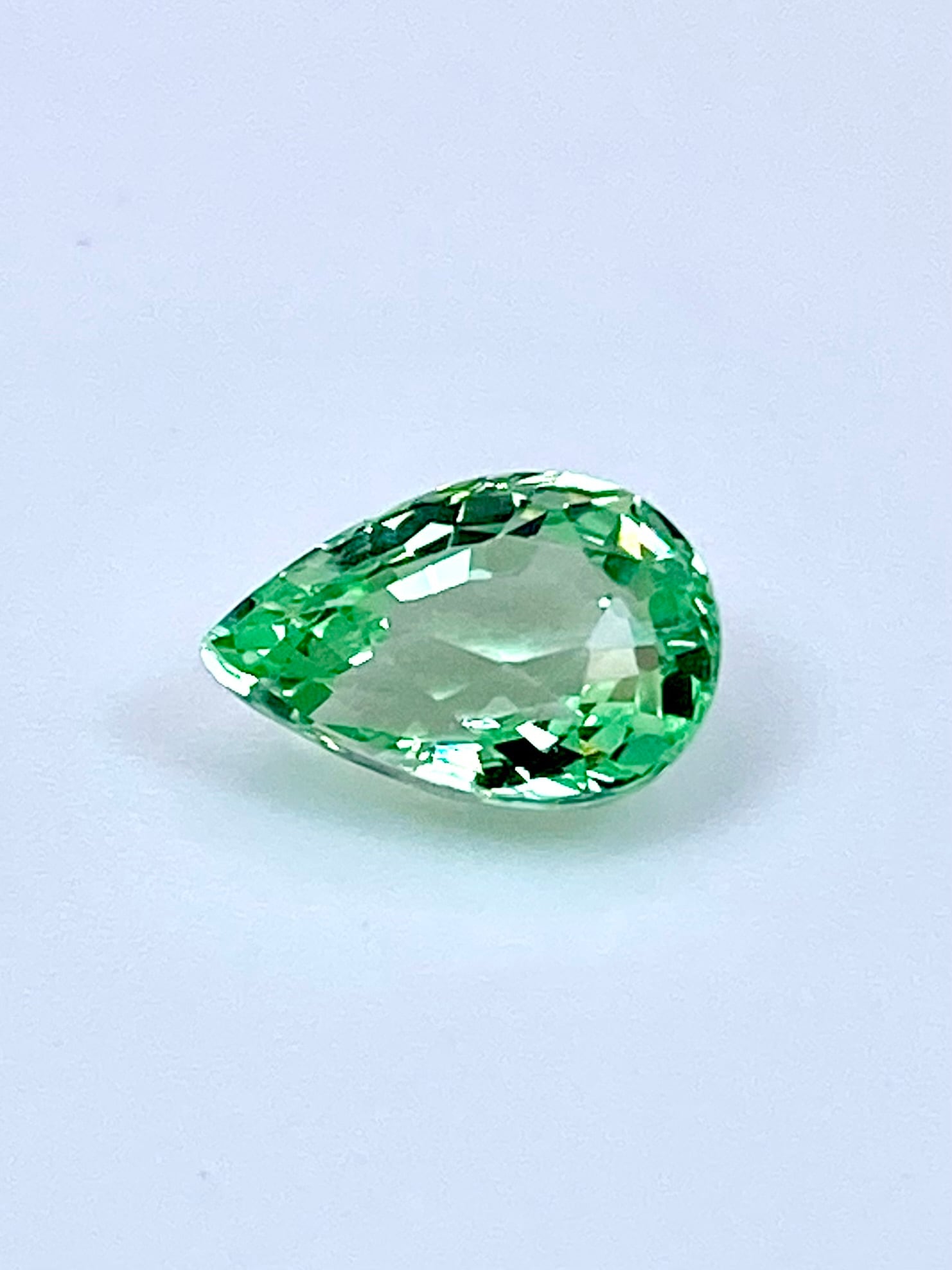 全体として:ペアシェイプということもあり少し中央に色の抜けがありますが、全体としてはミントガーネットの中でも特に爽やかな色と明るい輝きを楽しめる一石かと思います。