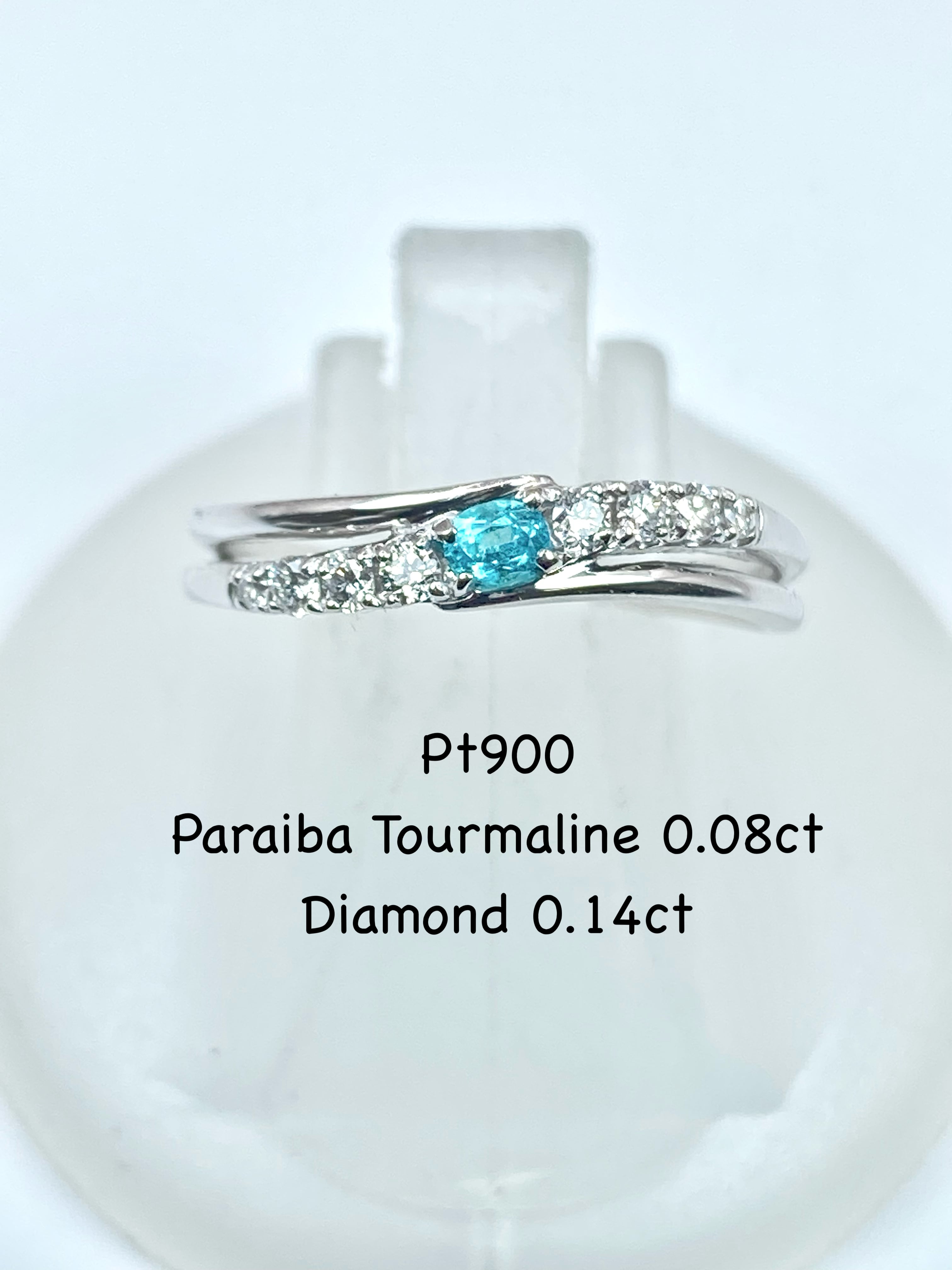 パライバトルマリンとダイヤモンドのプラチナ900リングのご紹介です。