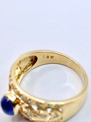 ブルーサファイアとダイヤモンドの18金リングのご紹介です。(刻印は18Kとなっておりますが、X線検査にてK18相当と確認済みです)