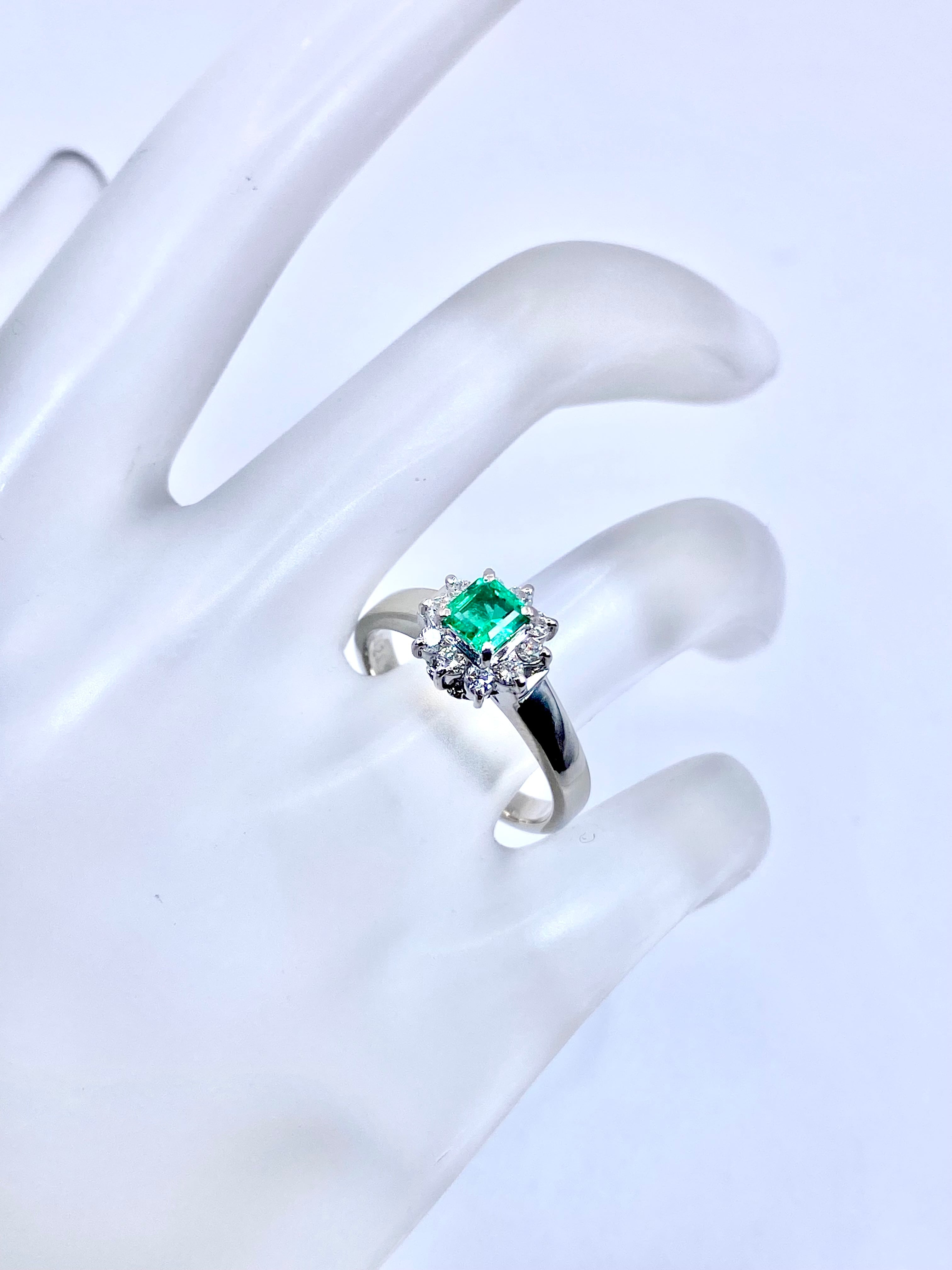 エメラルドとダイヤモンドが留められた、プラチナ900リングのご紹介です。