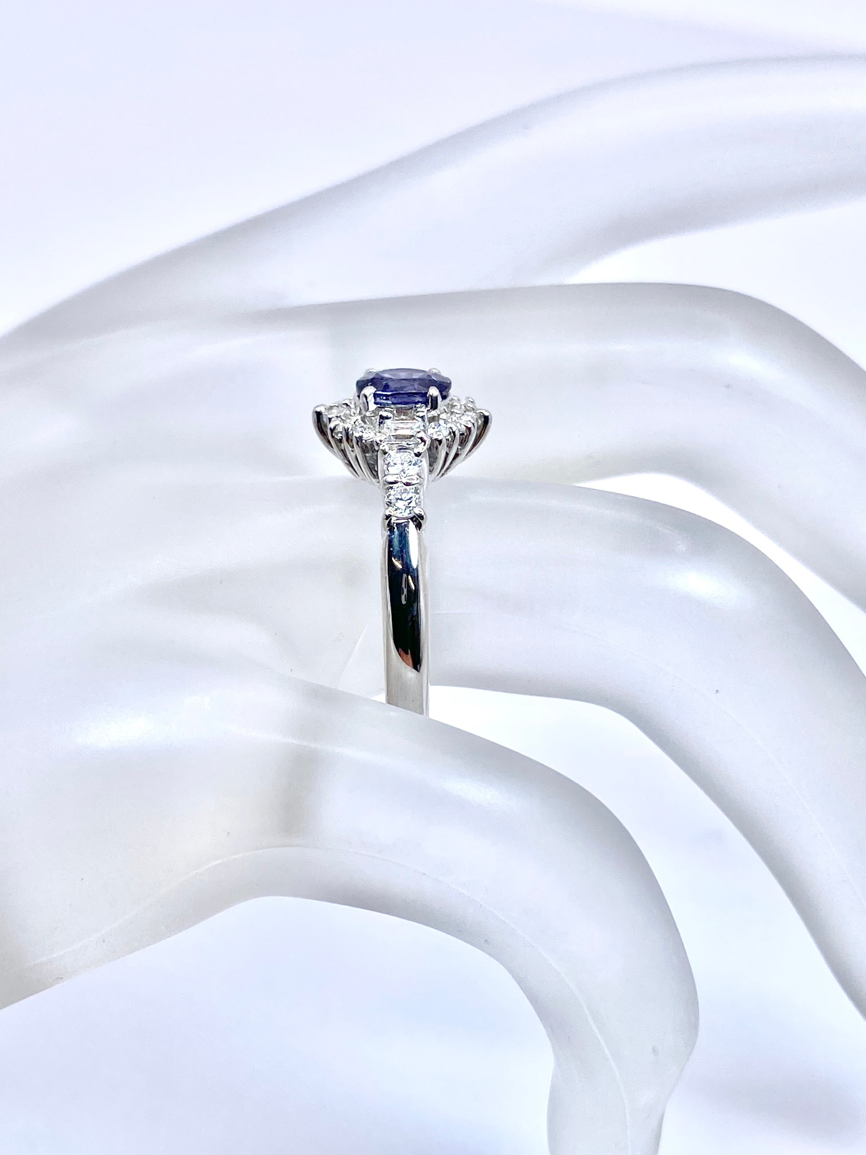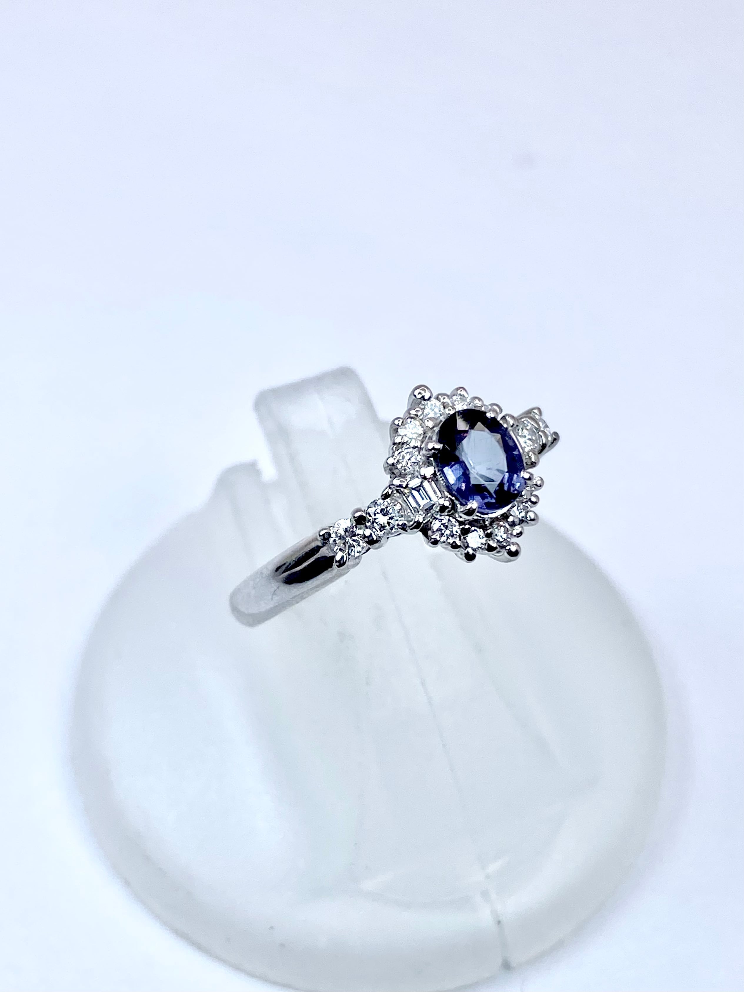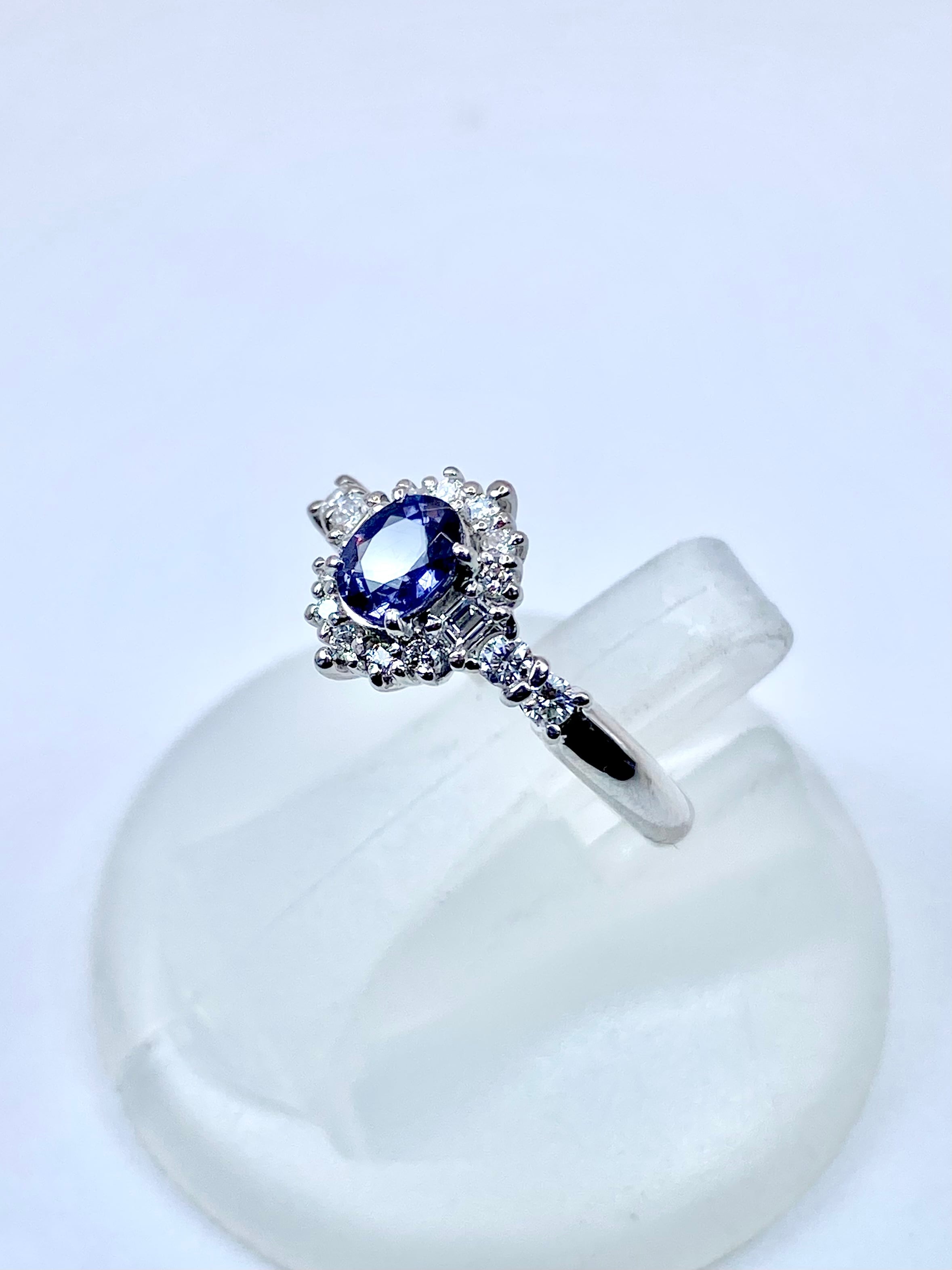 なお、ルーペで見てみると紫ではなく青みの方を強く感じます。くすんだ色のブルーサファイアのようでまた印象が変わって見えますので、よろしければお試しください。