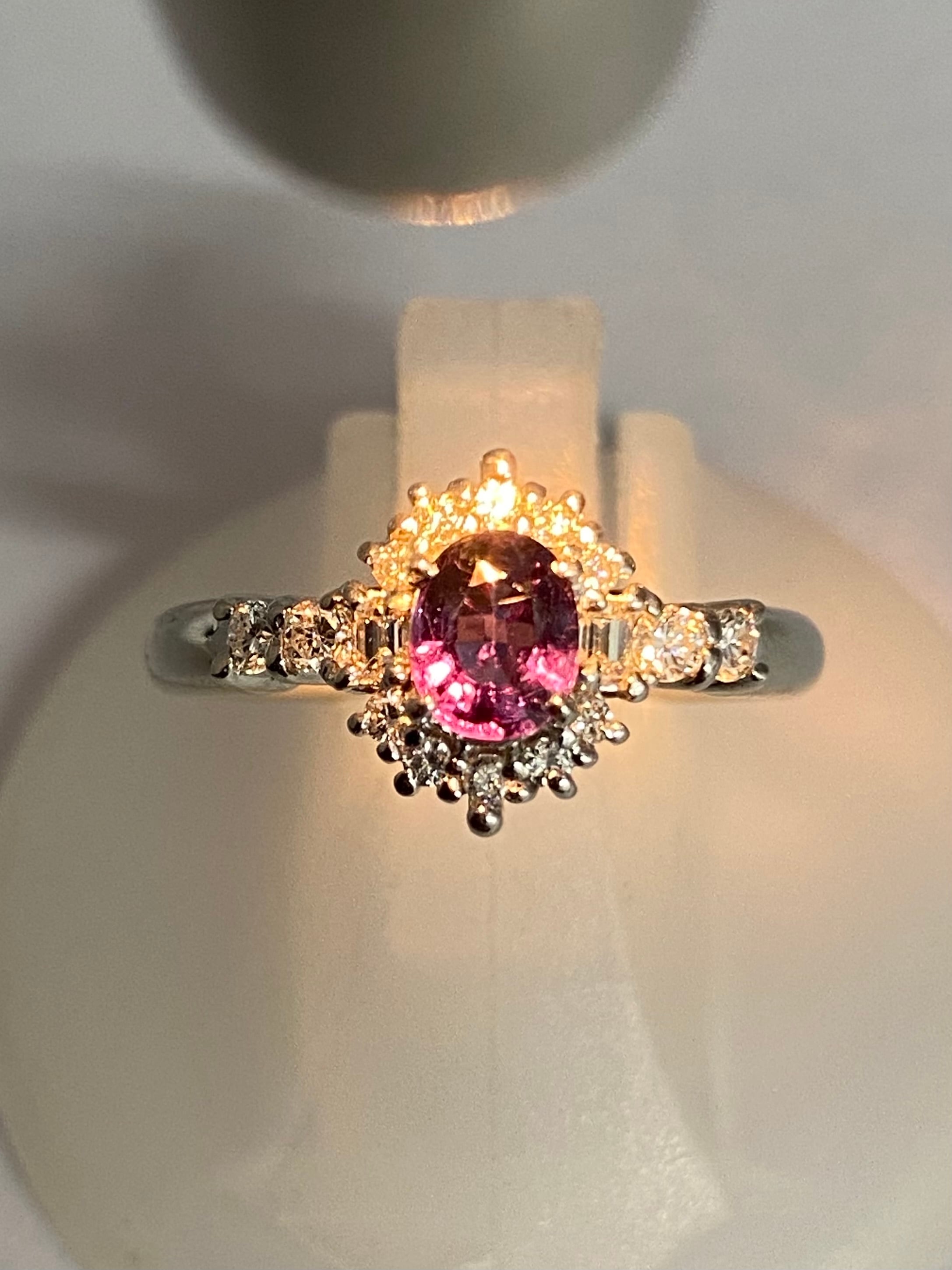 カラーチェンジガーネットとダイヤモンドのプラチナ900リングのご紹介です。