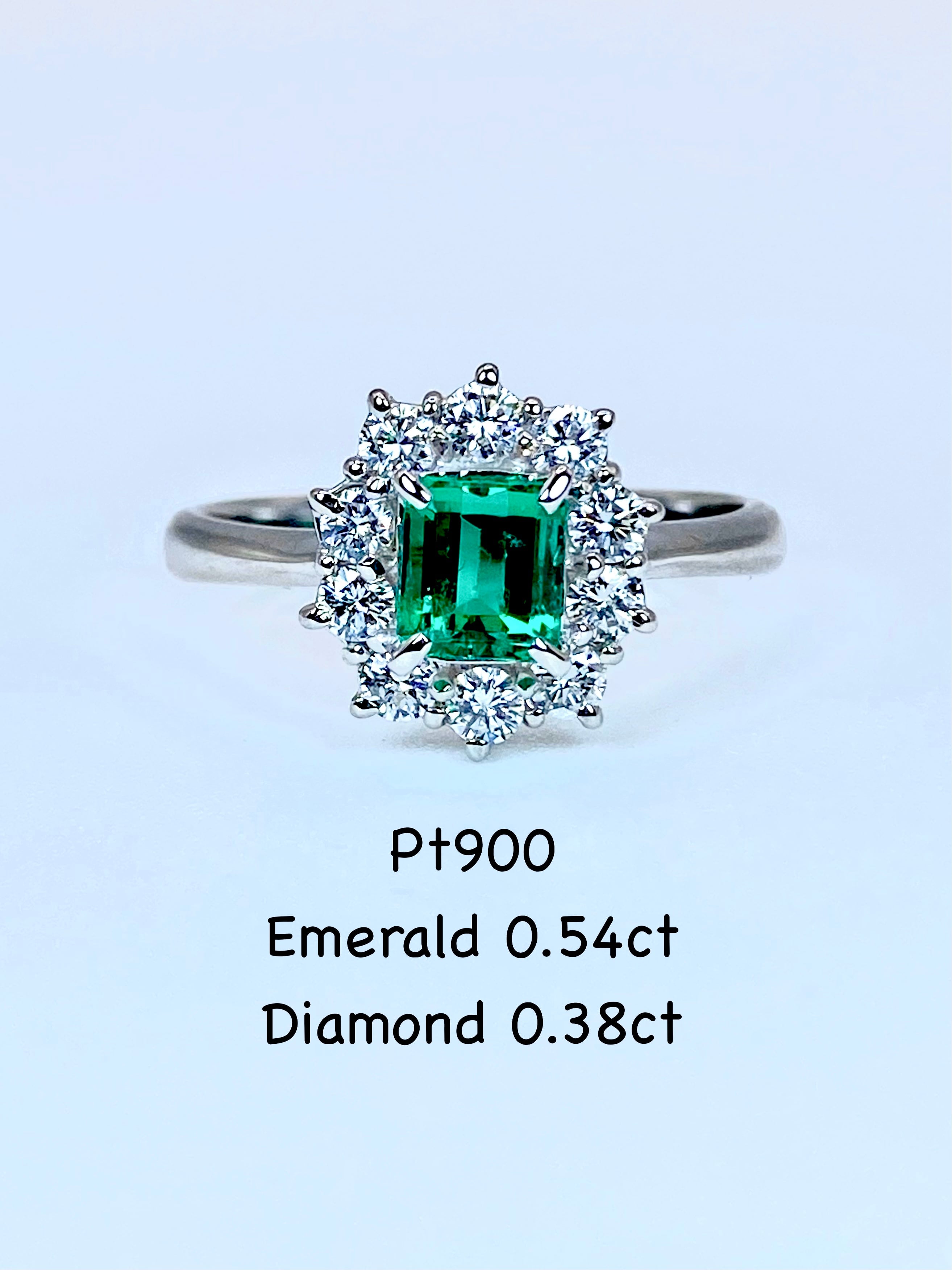 エメラルド 0.54ct / ダイヤモンド 計0.38ct Pt900リング 12号【リフレッシュメント(新品仕上げ・補修・洗浄等済)】【3日以内返品可(※カード/キャリア決済の場合)】