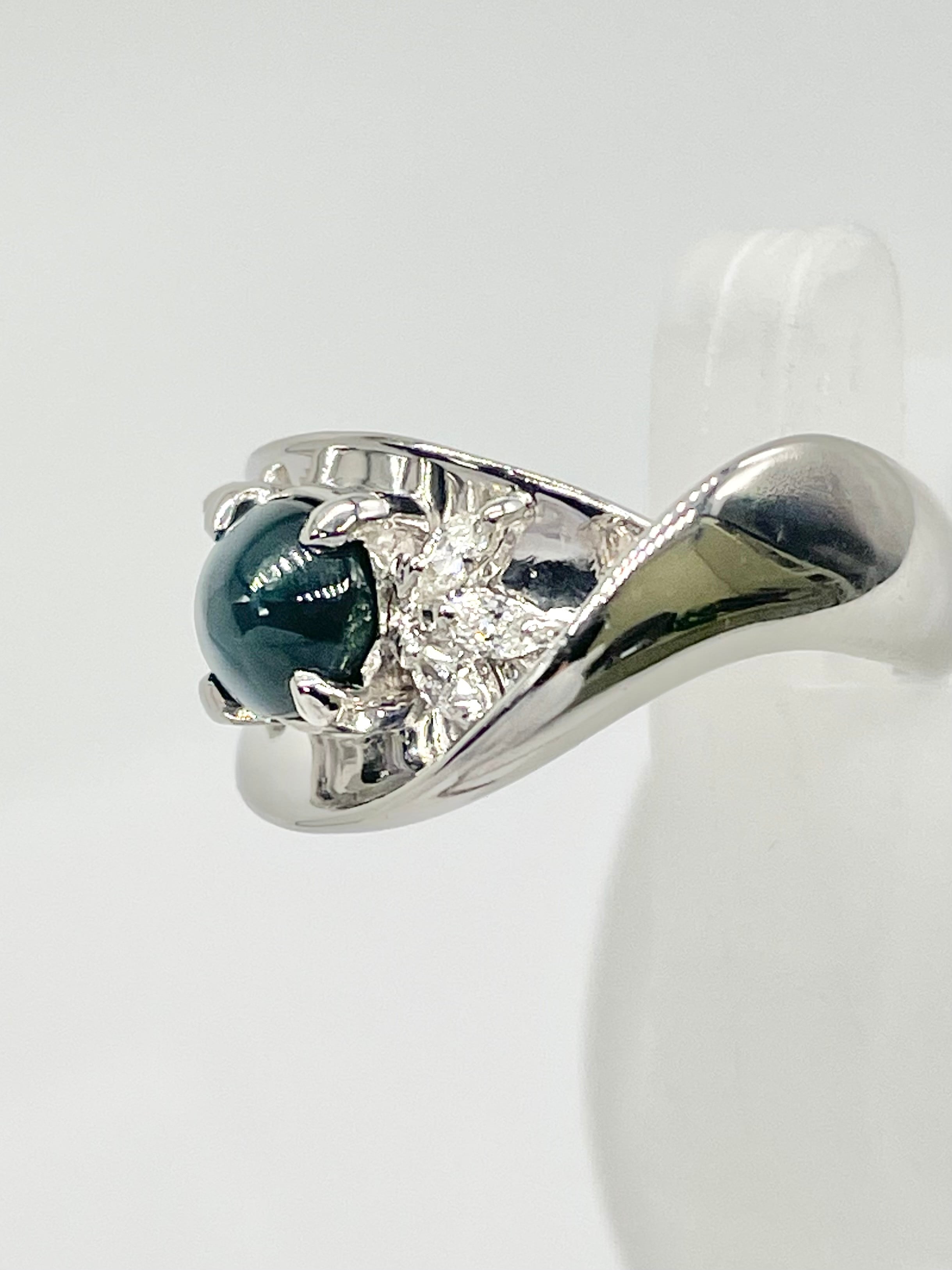アレキサンドライトキャッツアイとダイヤモンドのプラチナ900リングです。