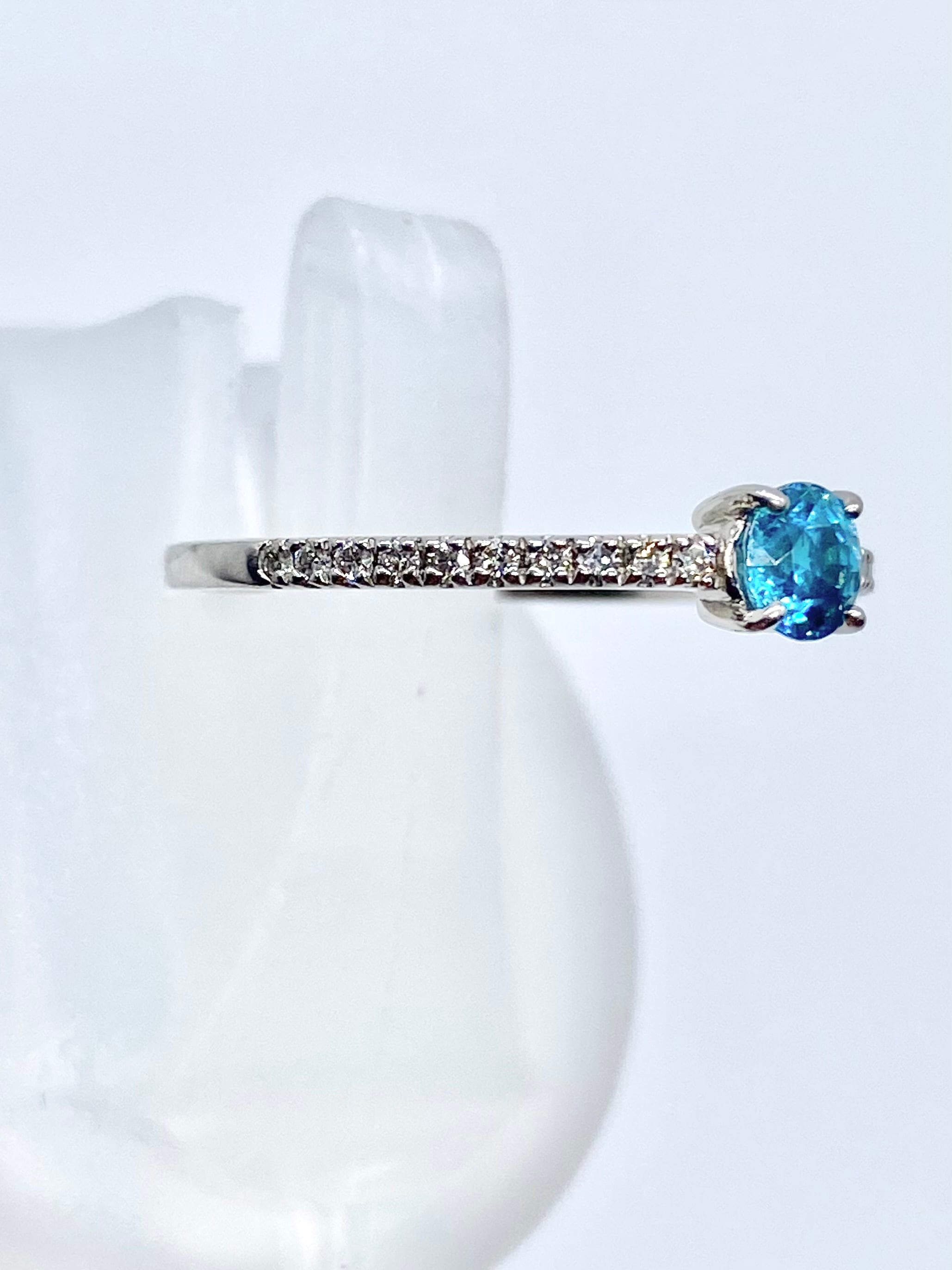 ブルージルコンとダイヤモンドのプラチナ900リングです。