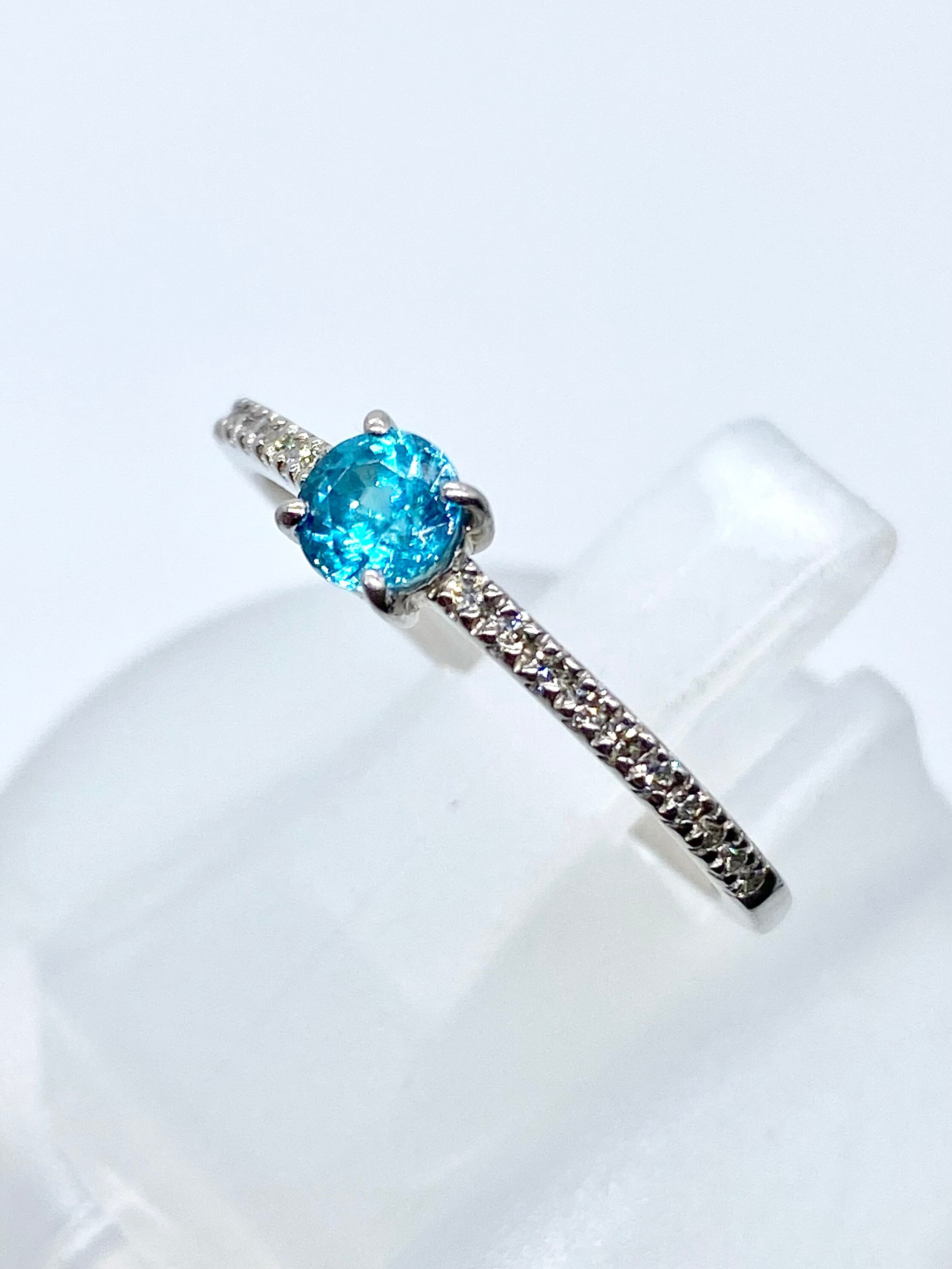 ブルージルコン 0.60ct / ダイヤモンド 計0.16ct Pt900 リング 【リフレッシュメント(新品仕上げ・補修・洗浄等済)】【3日以内返品可(※カード/キャリア決済の場合)】