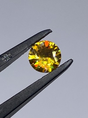 そのため、スフェーンの複屈折という特徴とともに、オレンジやレッド、グリーンといった細かなファイアが奥の方からきらめき、輝きをみせています。