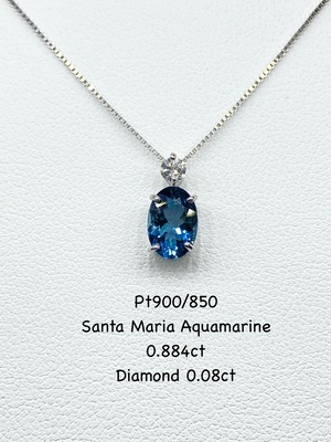 サンタマリア アクアマリン 0.884ct/ダイヤモンド 0.08ct Pt900/850 ネックレス【リフレッシュメント(新品仕上げ・補修・洗浄等済)】【3日以内返品可(※カード/キャリア決済の場合)】【動画リンク Twitter/Xあり】