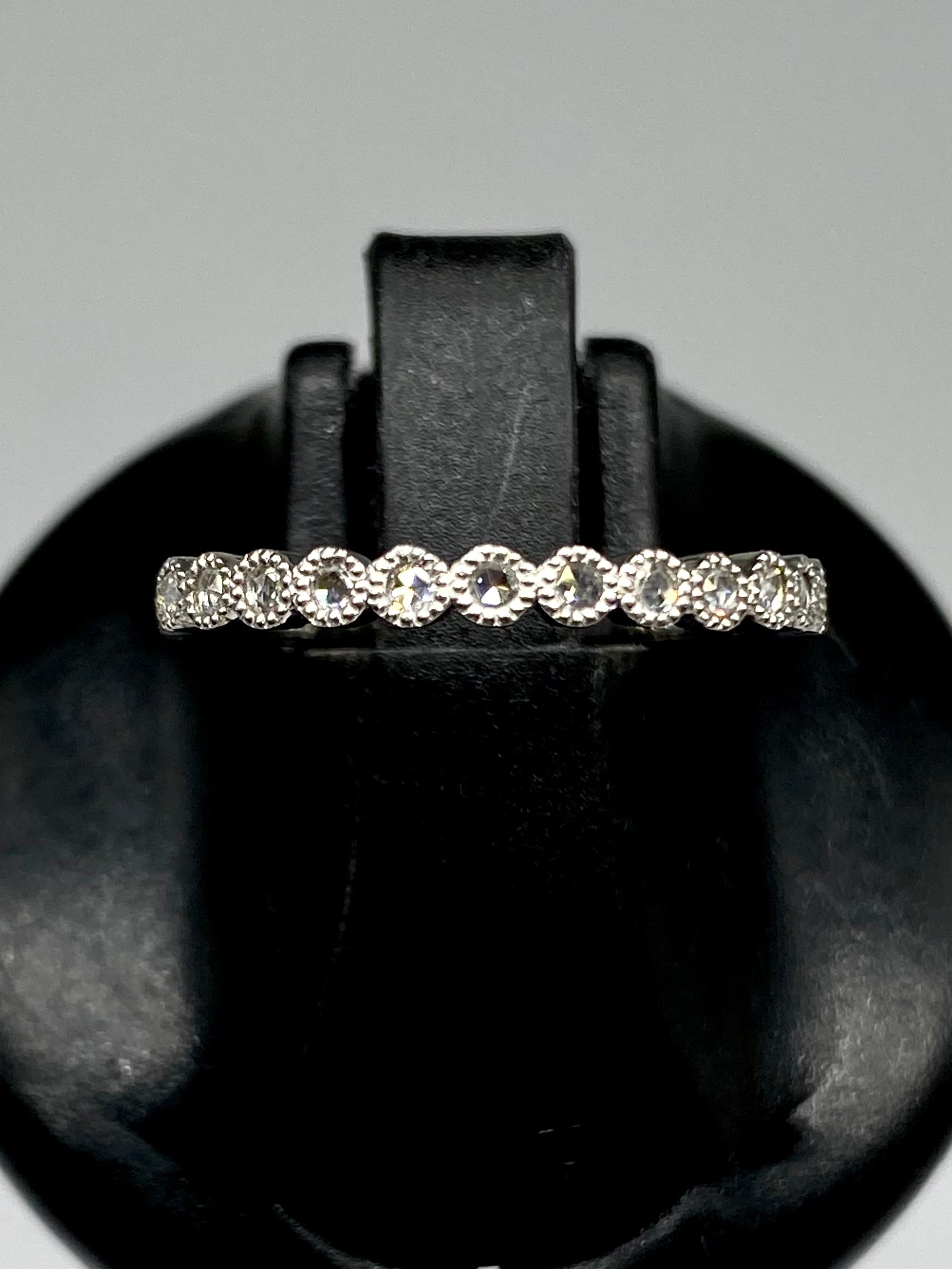 石は覆輪止めの縁がミル打ちのようになっていて、そのおかげかちいさな花が並んでいるようにも見えて可愛らしい印象を受けます。