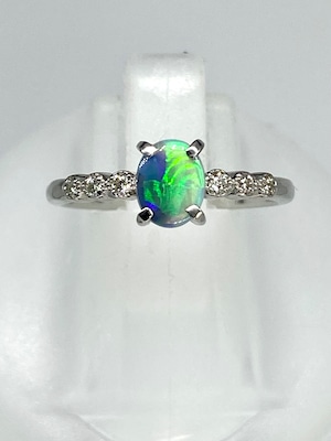 リングは細身で、オパールの両側に3ピースずつダイヤモンドが並んでいるというシンプル目のデザインです。縦置きな事もあり、特徴豊かなオパールがよく目立ってくれます。